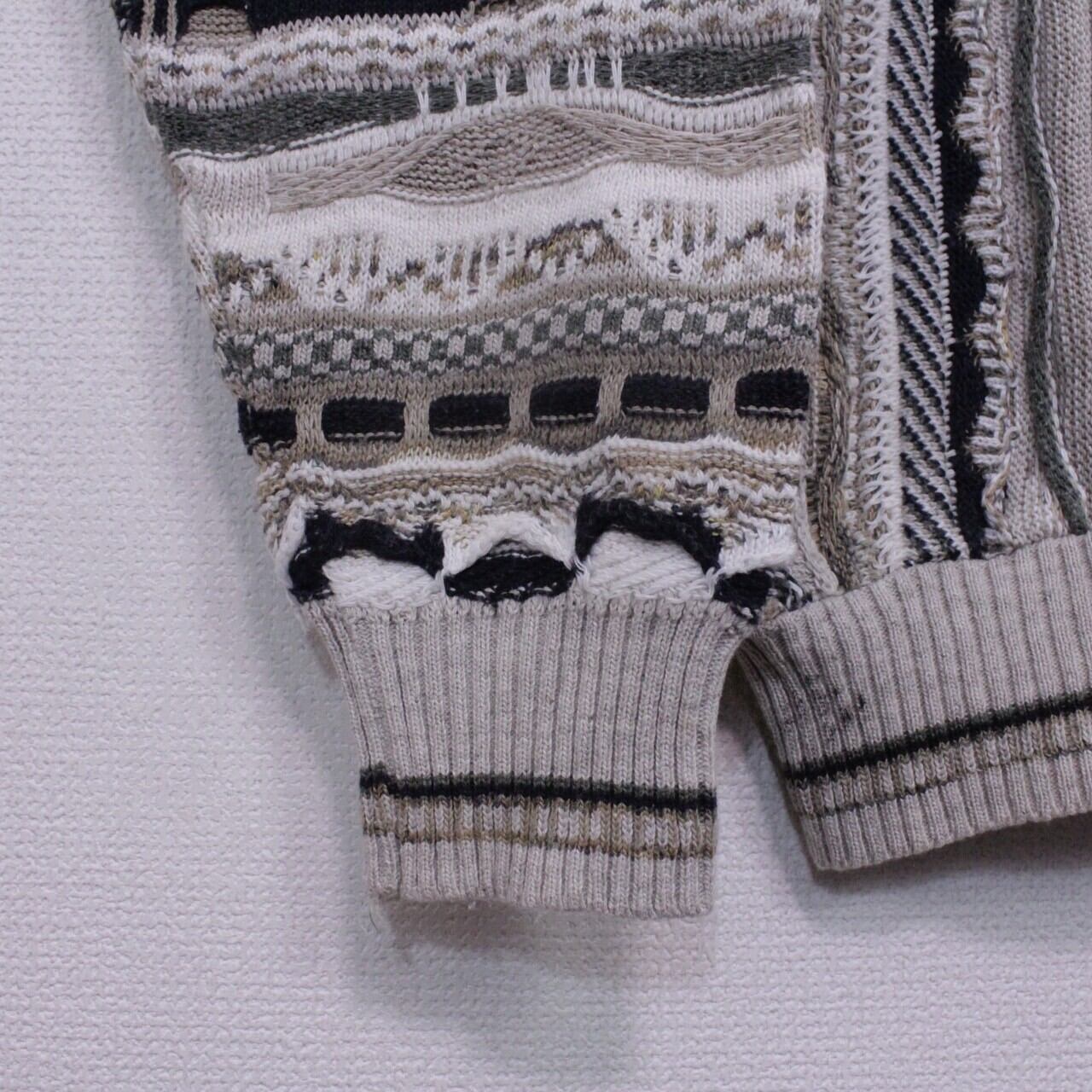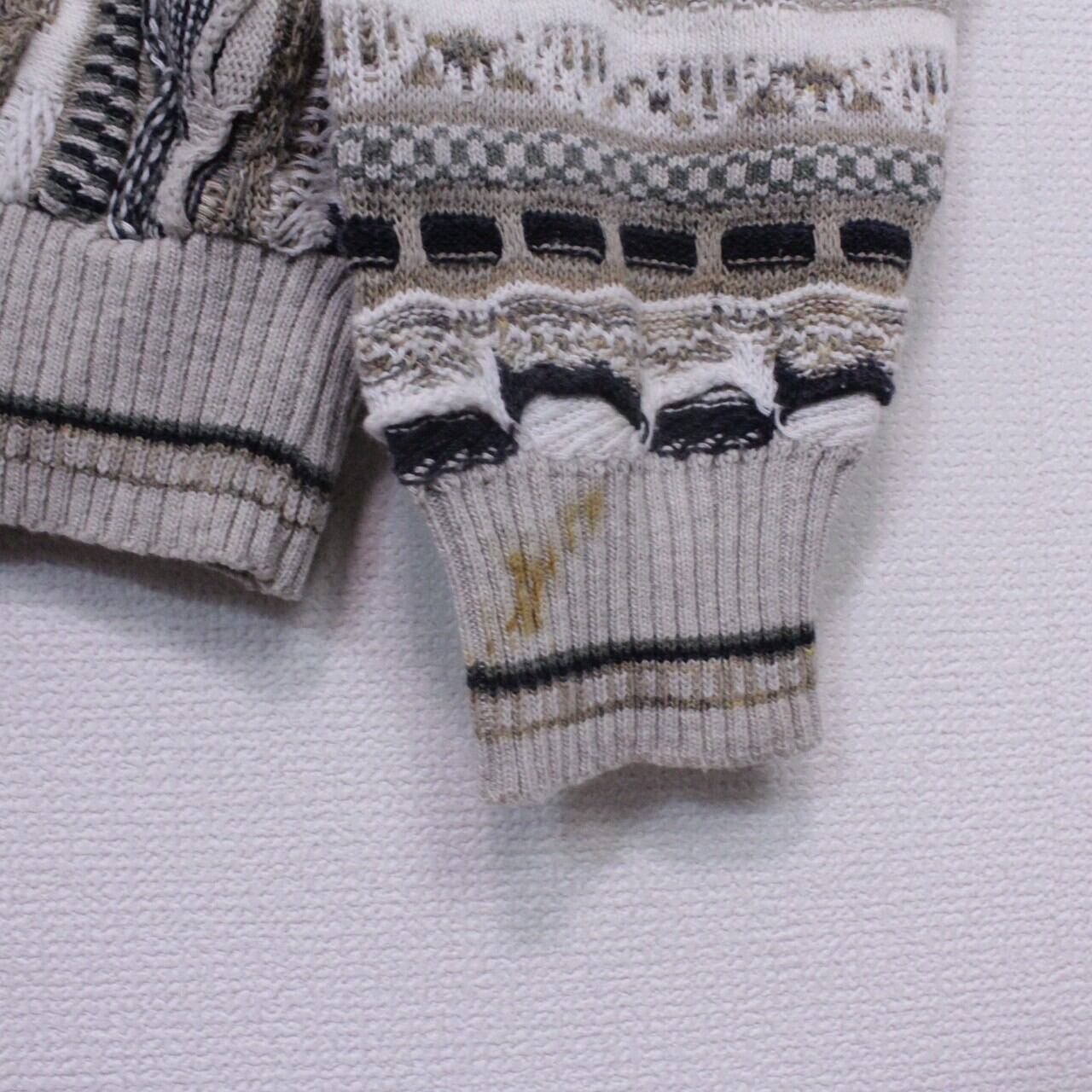 白を基調としてベージュやブラック、グリーン、グレー等マルチなカラーリングで纏められた逸品。3Dニット特有の美しいうねりが効いたボディは非常に緻密で、ハイクオリティな1着。3Dニットと言えば"COOGI"や"TUNDRA"の二大巨頭を思い浮かべますが、こちらはそれにも劣らない上品な見映えに。