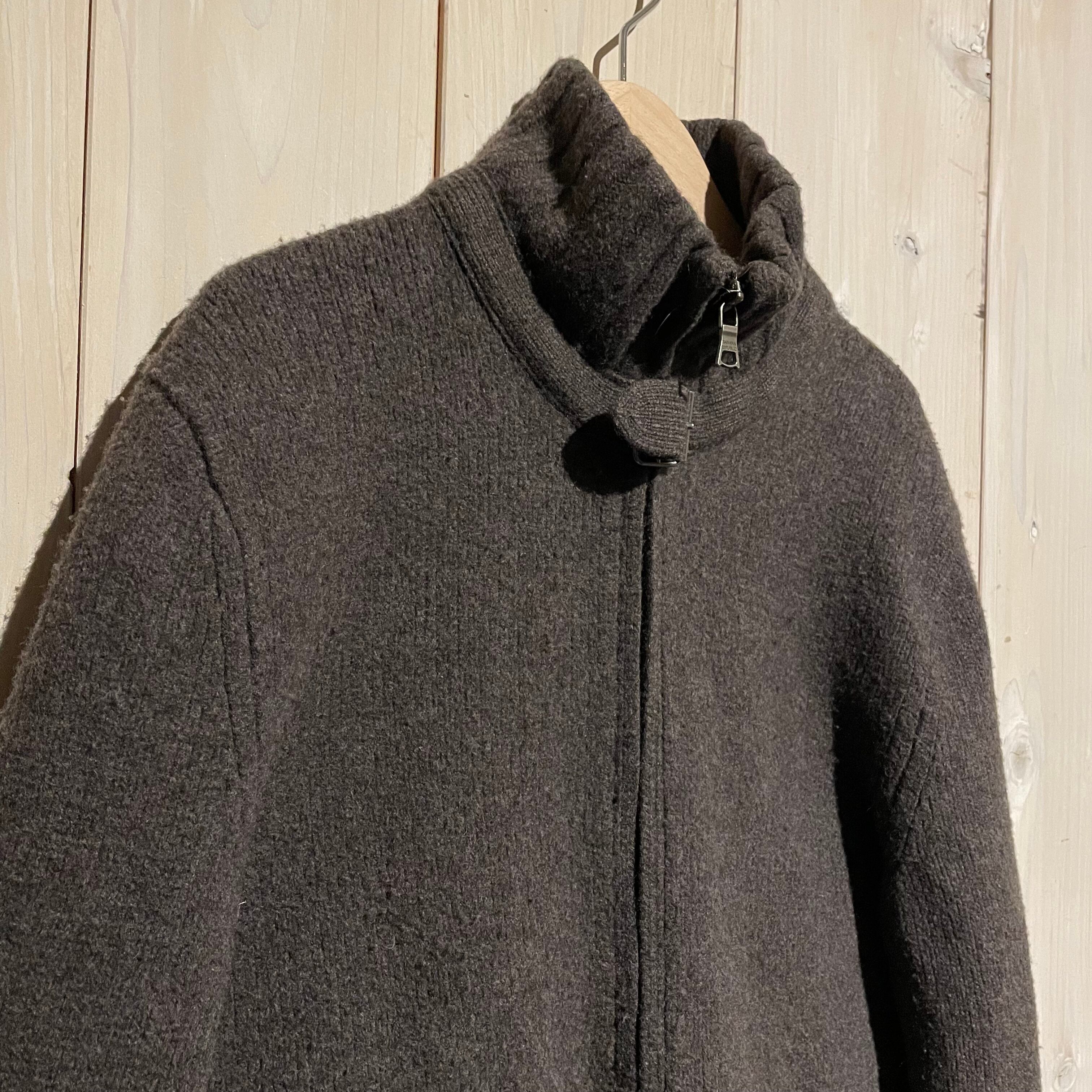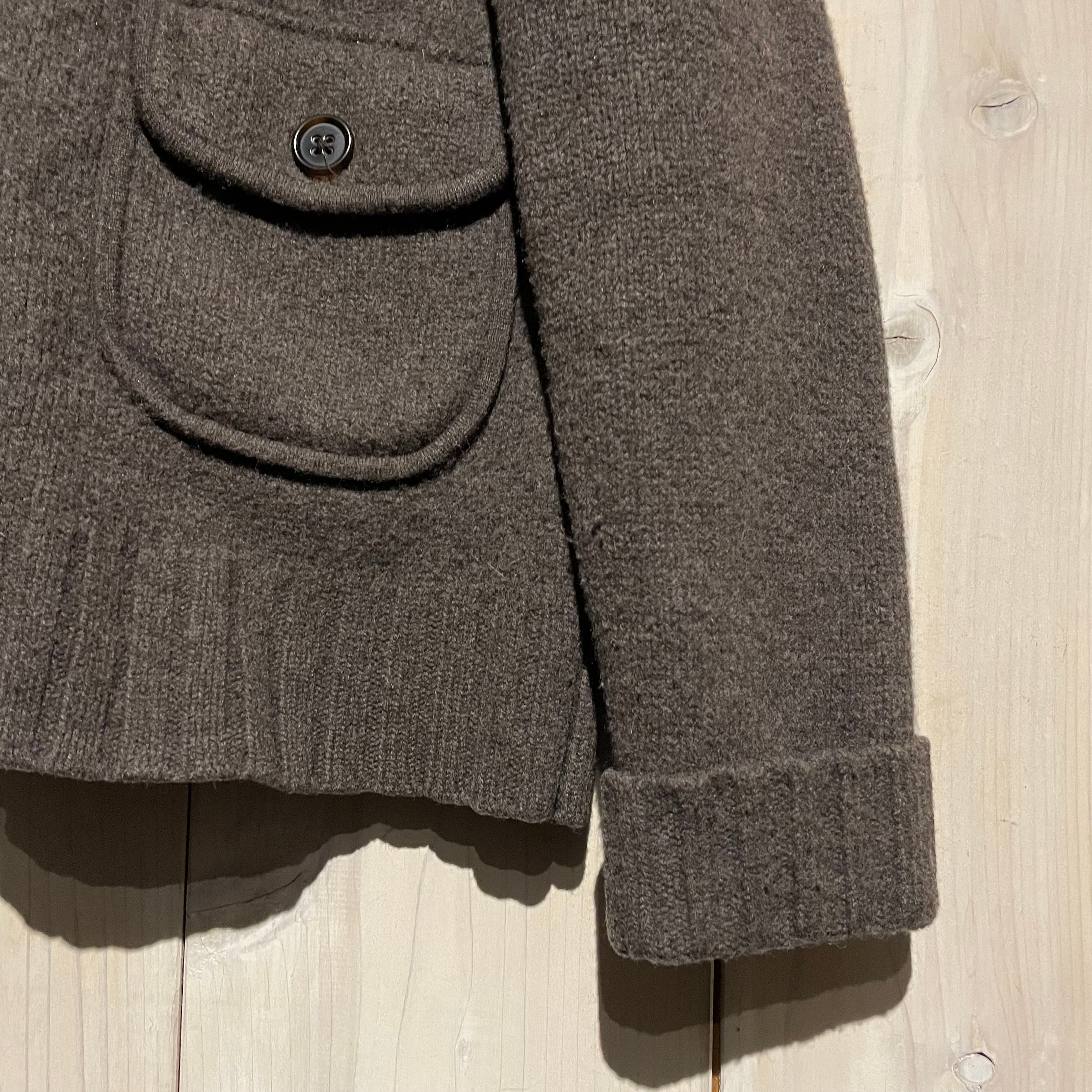 ウール×カシミヤの上質なニット素材をボディに使用。深い風合いを漂わせるブラウンカラーで仕上げたニットジャケット。
