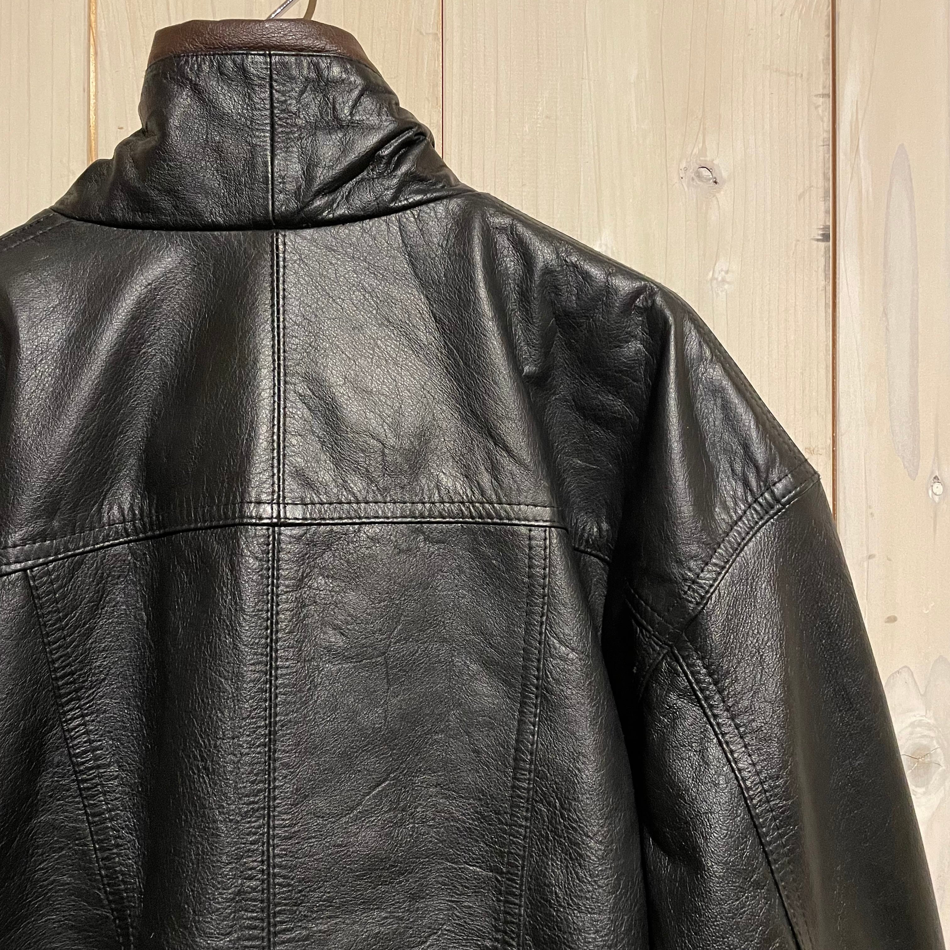 鈍い光沢を帯びた、ハリのある上質なレザーをボディに採用。レザーという素材からヒシヒシと伝わる渋みに加え、黒x茶の2色が織りなすラグジュアリーな雰囲気も併せ持ったレザージャケットの逸品。