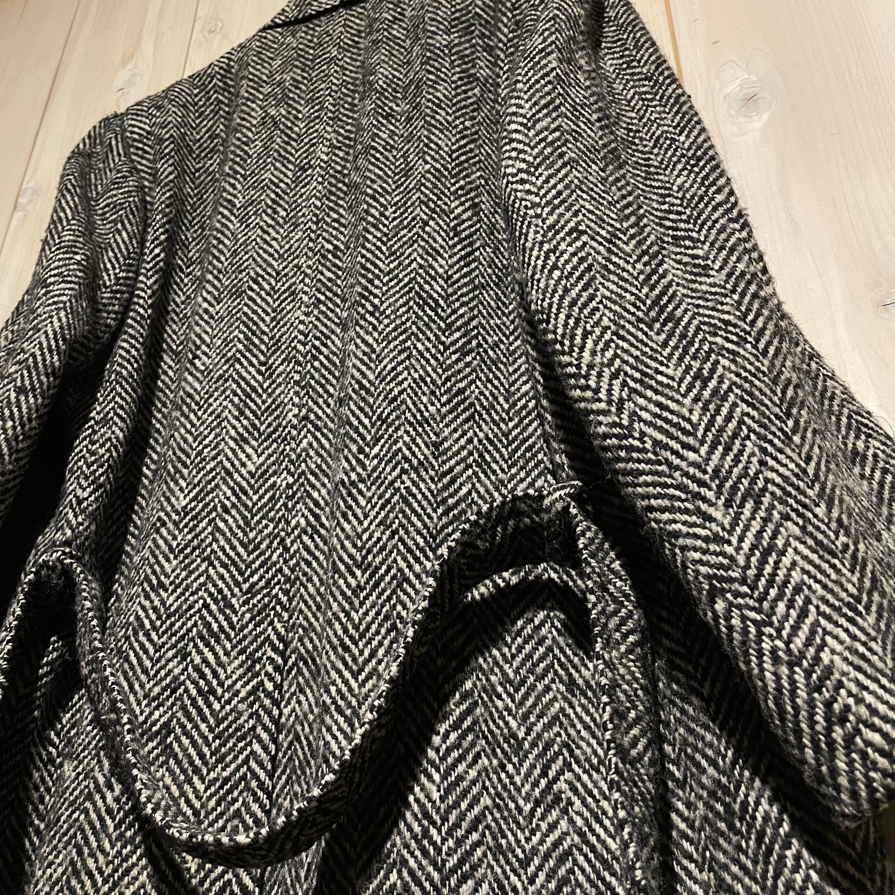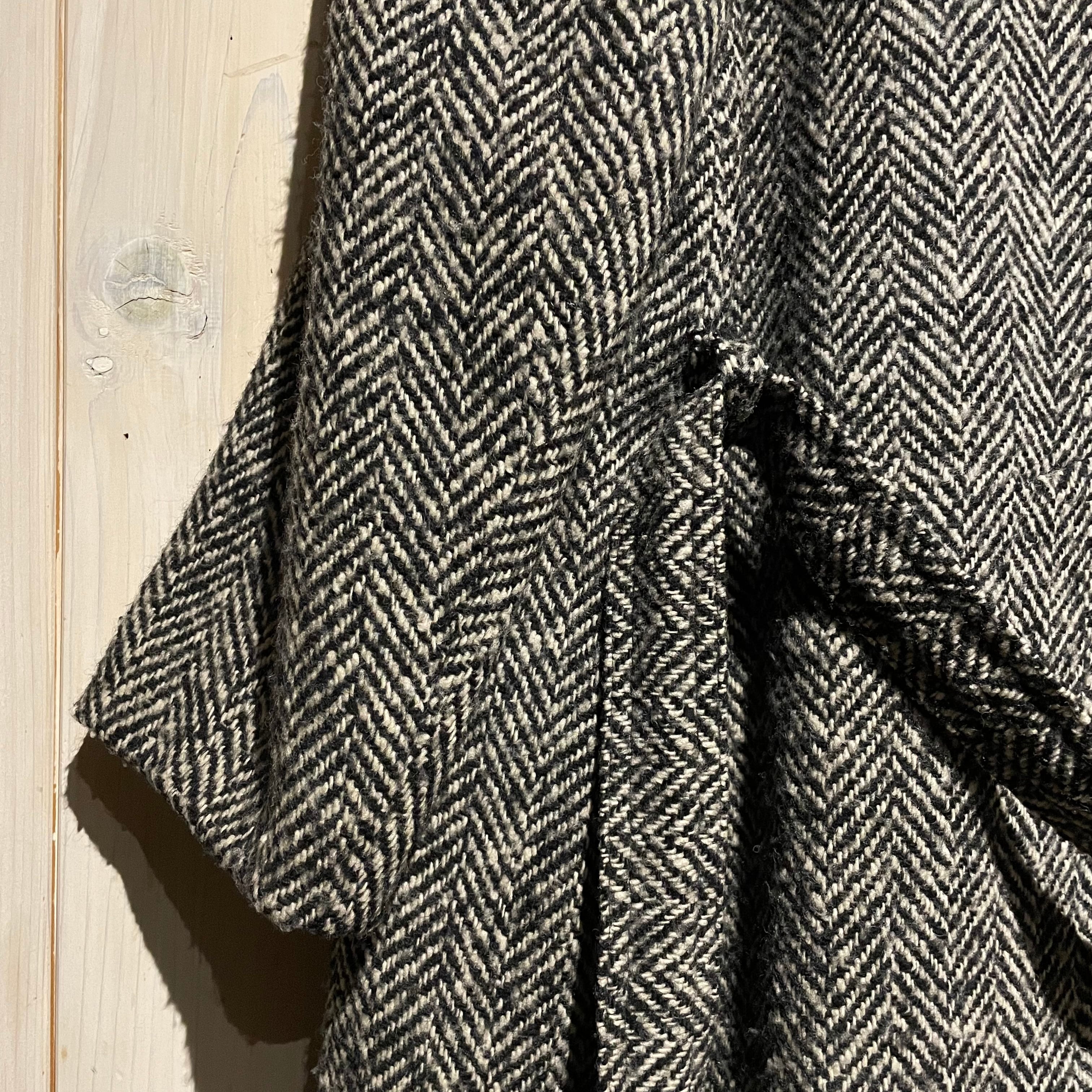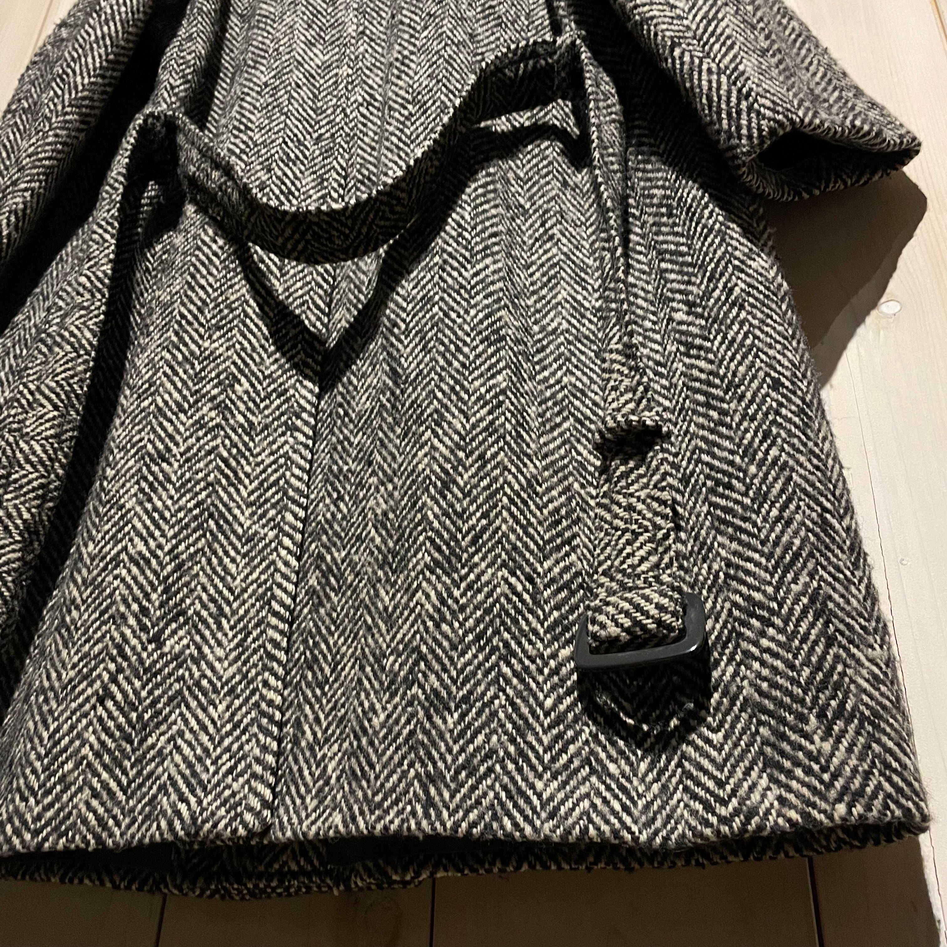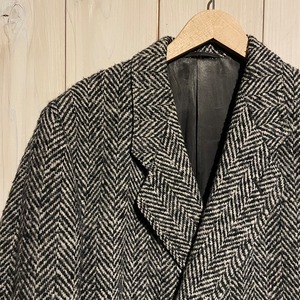 黒×白のモノトーンのカラーリングで、ヘリンボーン織りによって全体を仕上げた、ツイードチェスターコート。