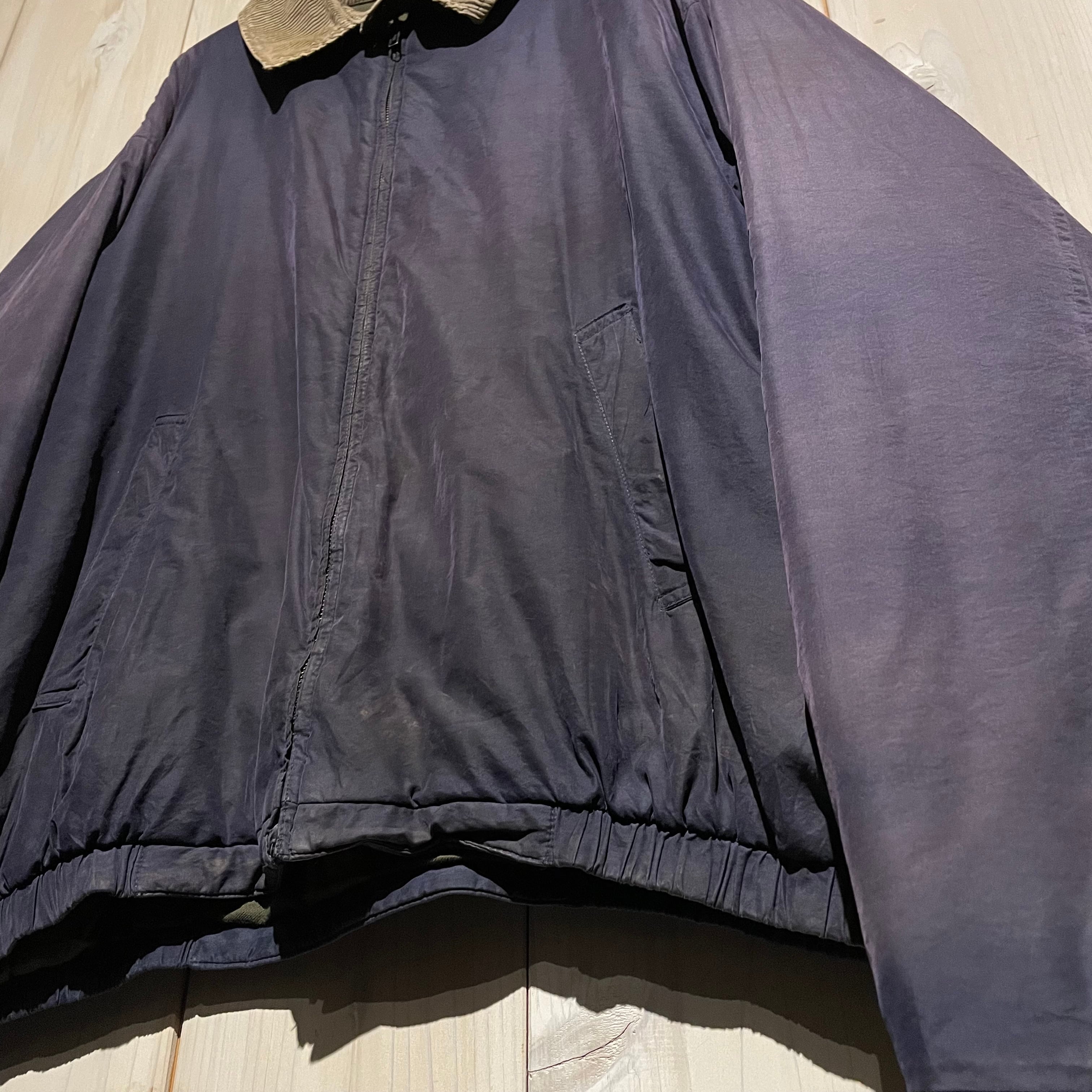 美しいフェードの効いた茄子紺カラーのサラッと滑らかな質感の素材をボディに使用した、パデッド仕様のドリズラージャケット。