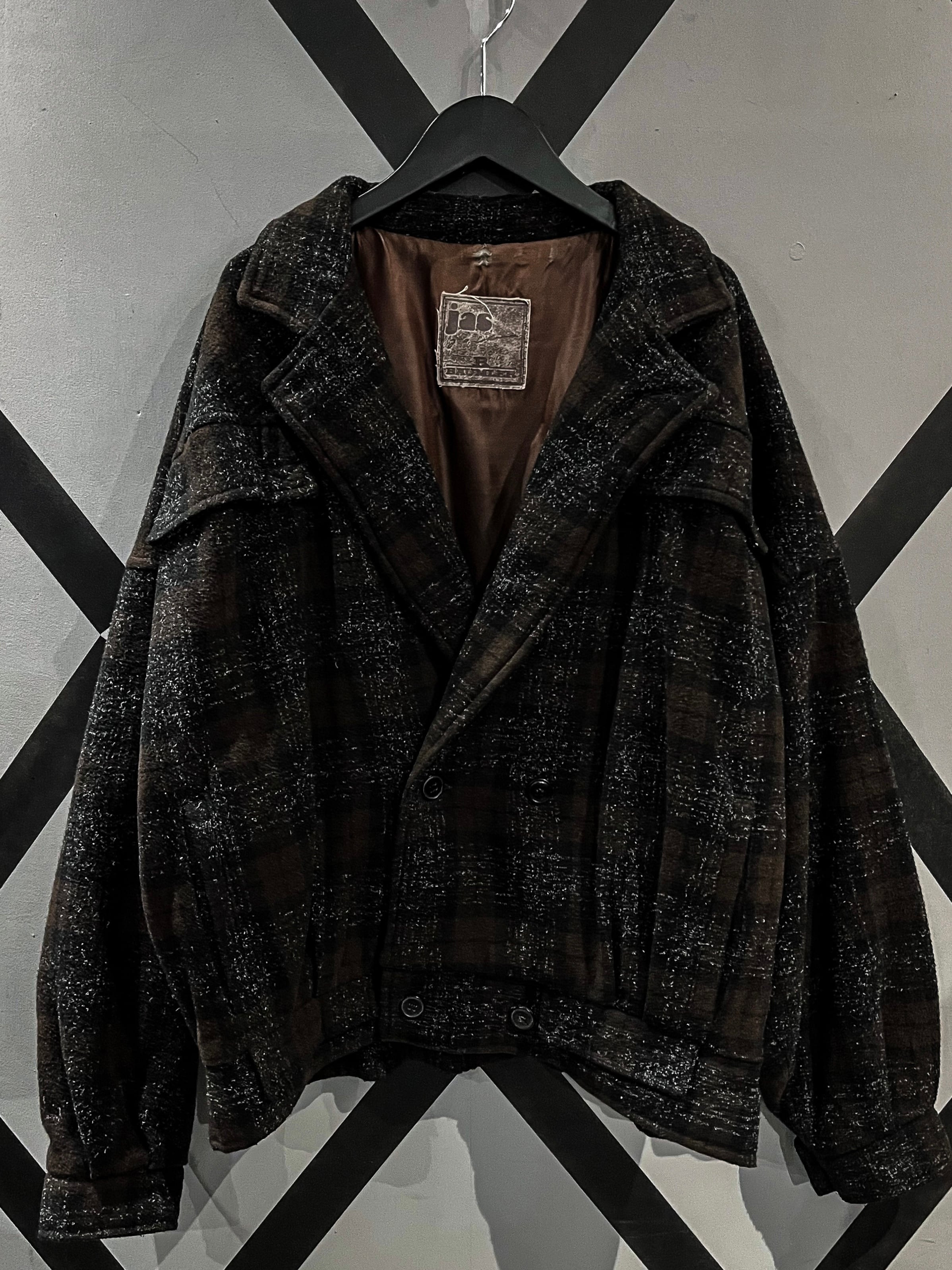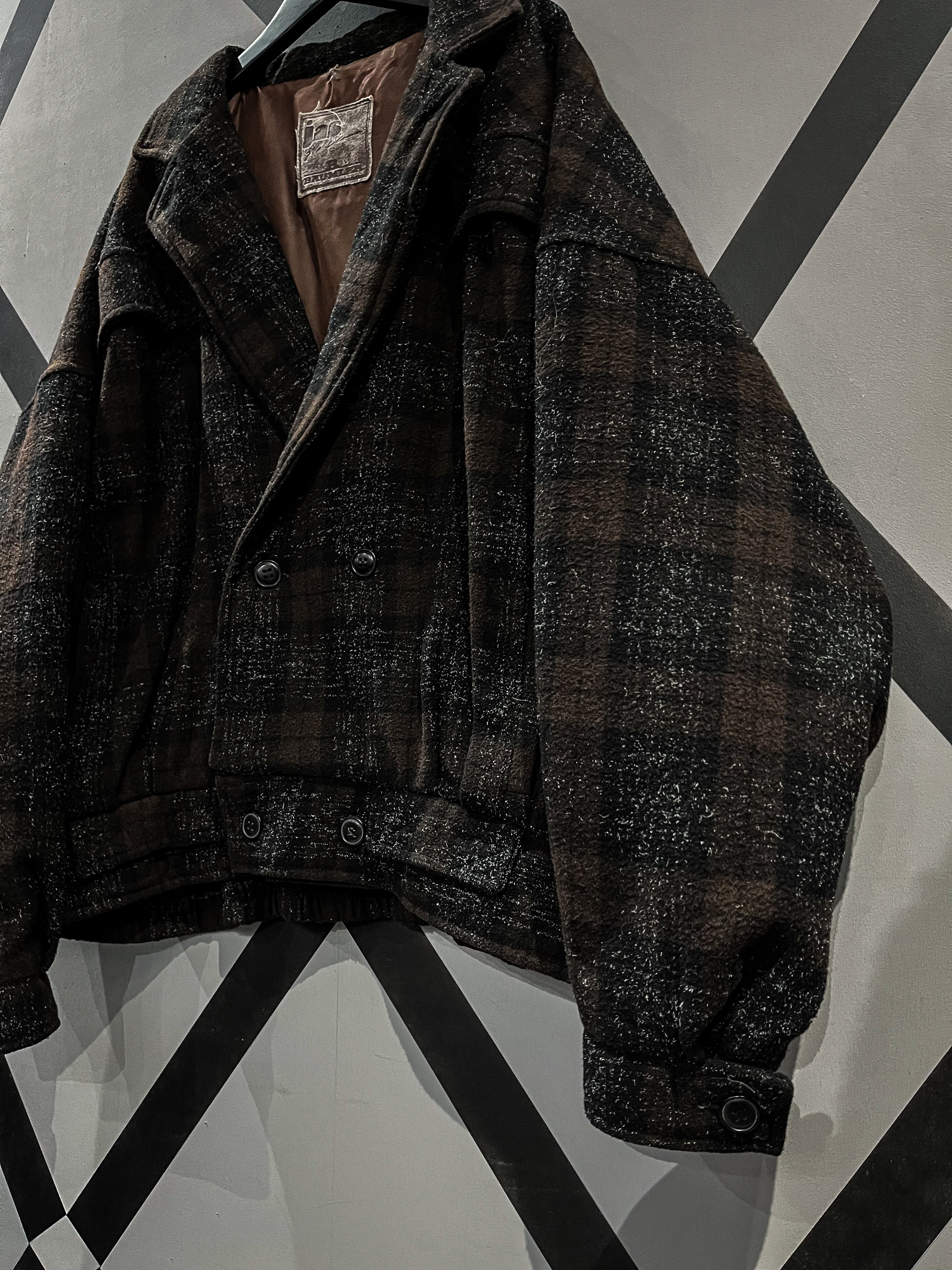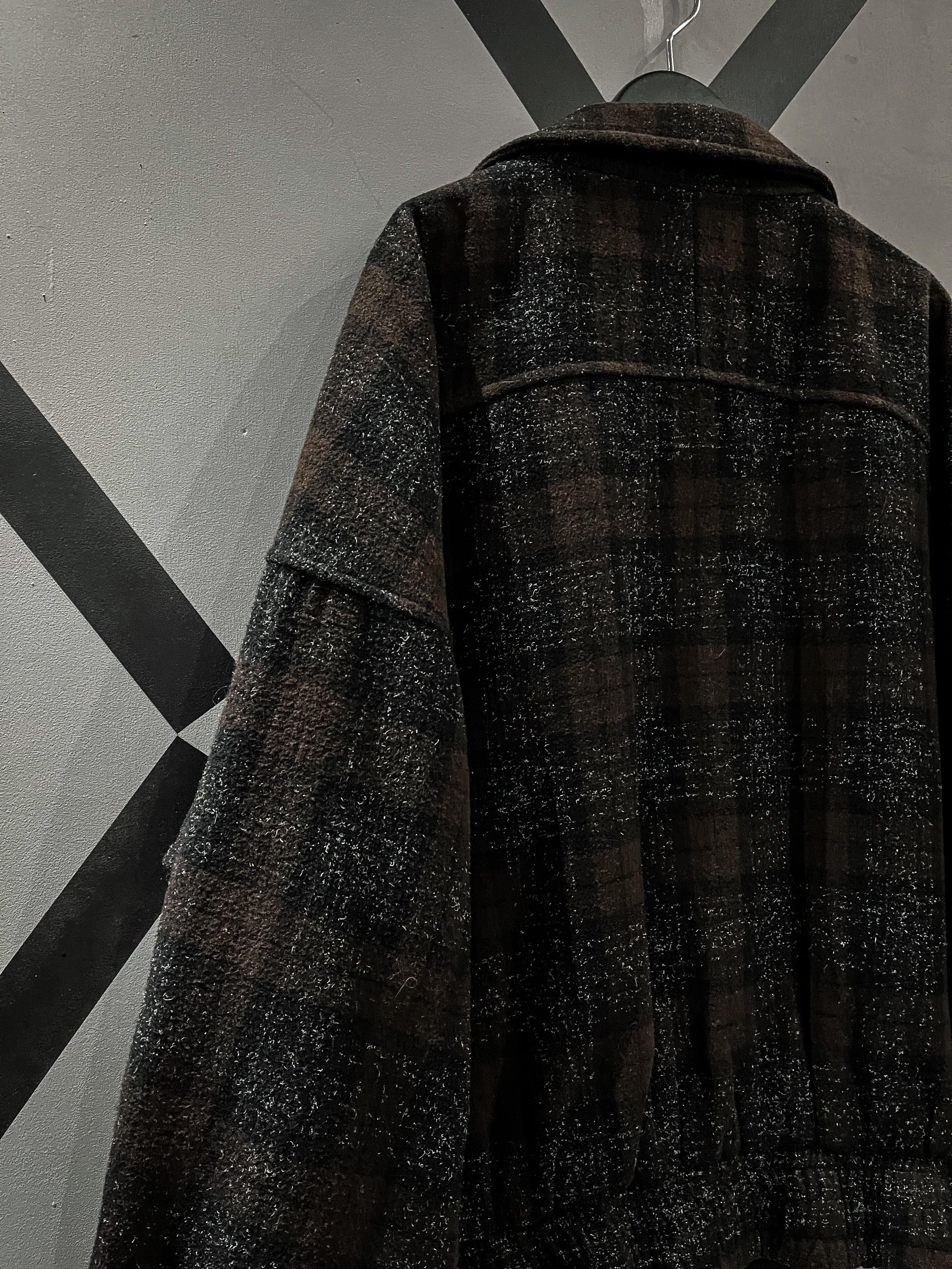 程良い肉感のあるウール素材を用いたボディに、ダークグレー×ブラウンを基調としたチェック柄を全面に配した1着。