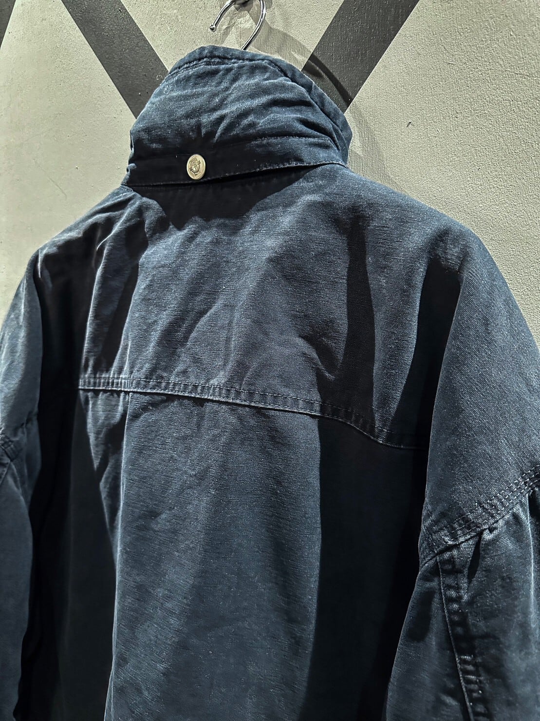 フロントはファイヤーマンバックルに加え、内側にジップを施した二重構造の比翼仕立て。さらにはパデット仕様で中綿が詰められていて高い防風性、保温性を誇る機能的な仕上がりに。