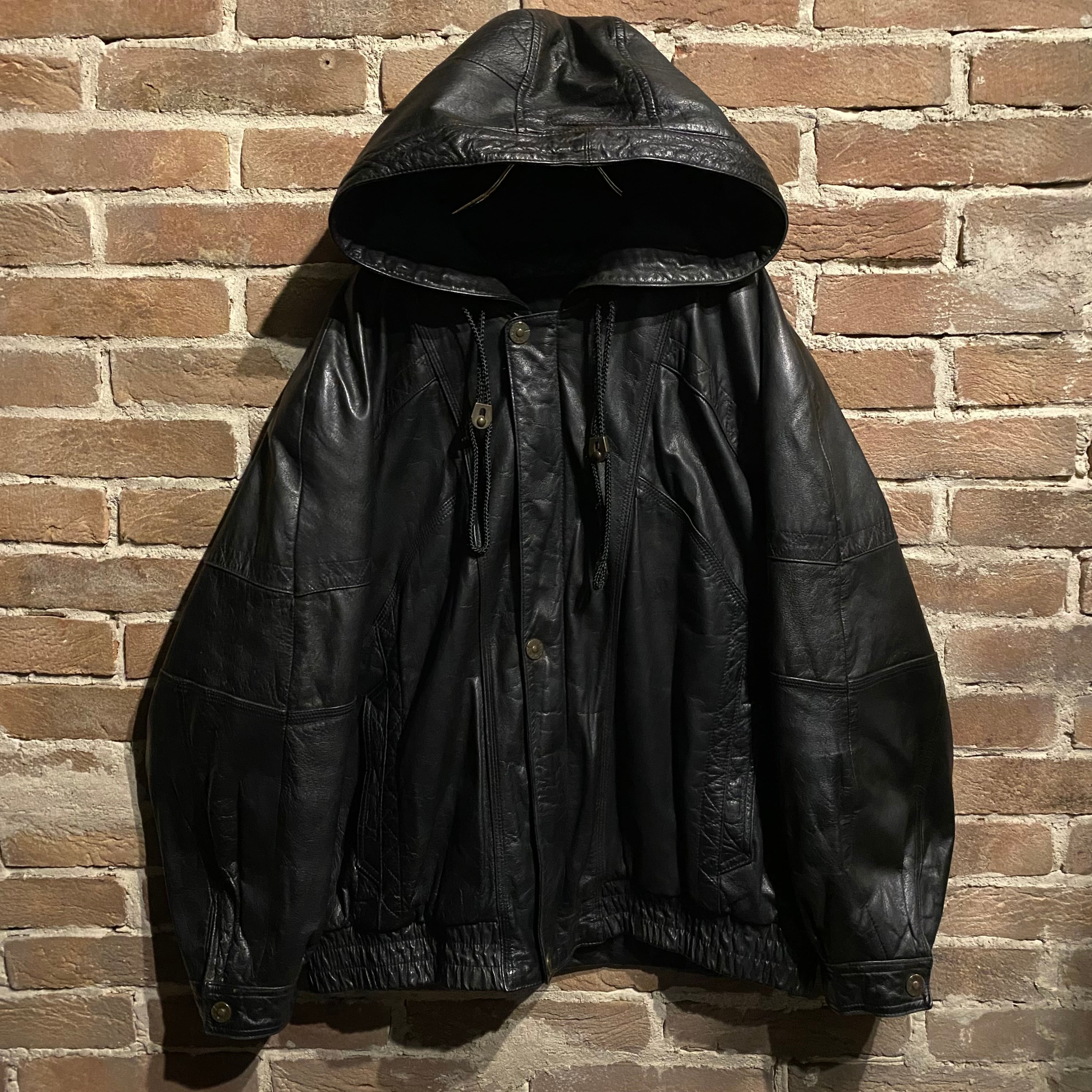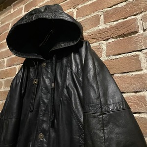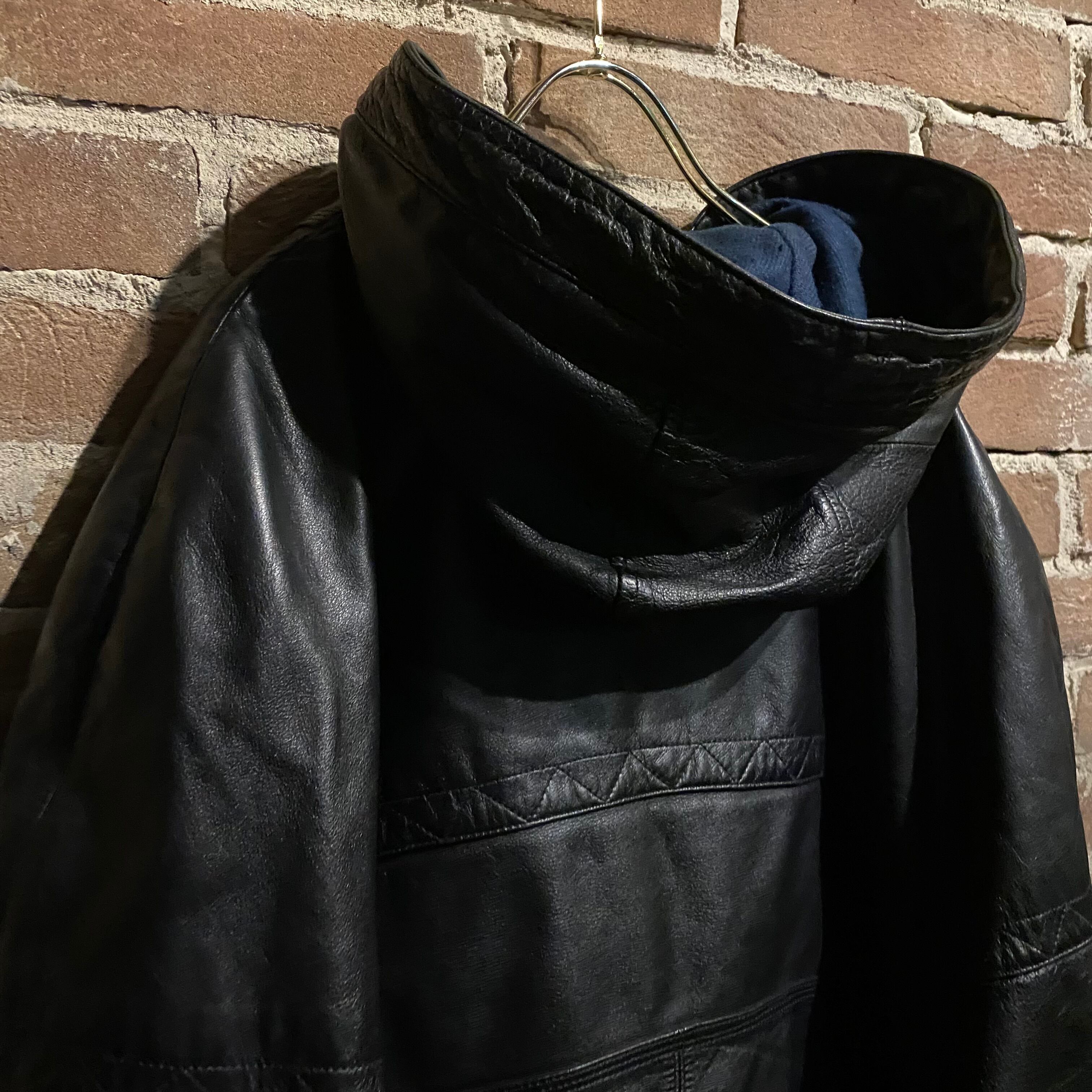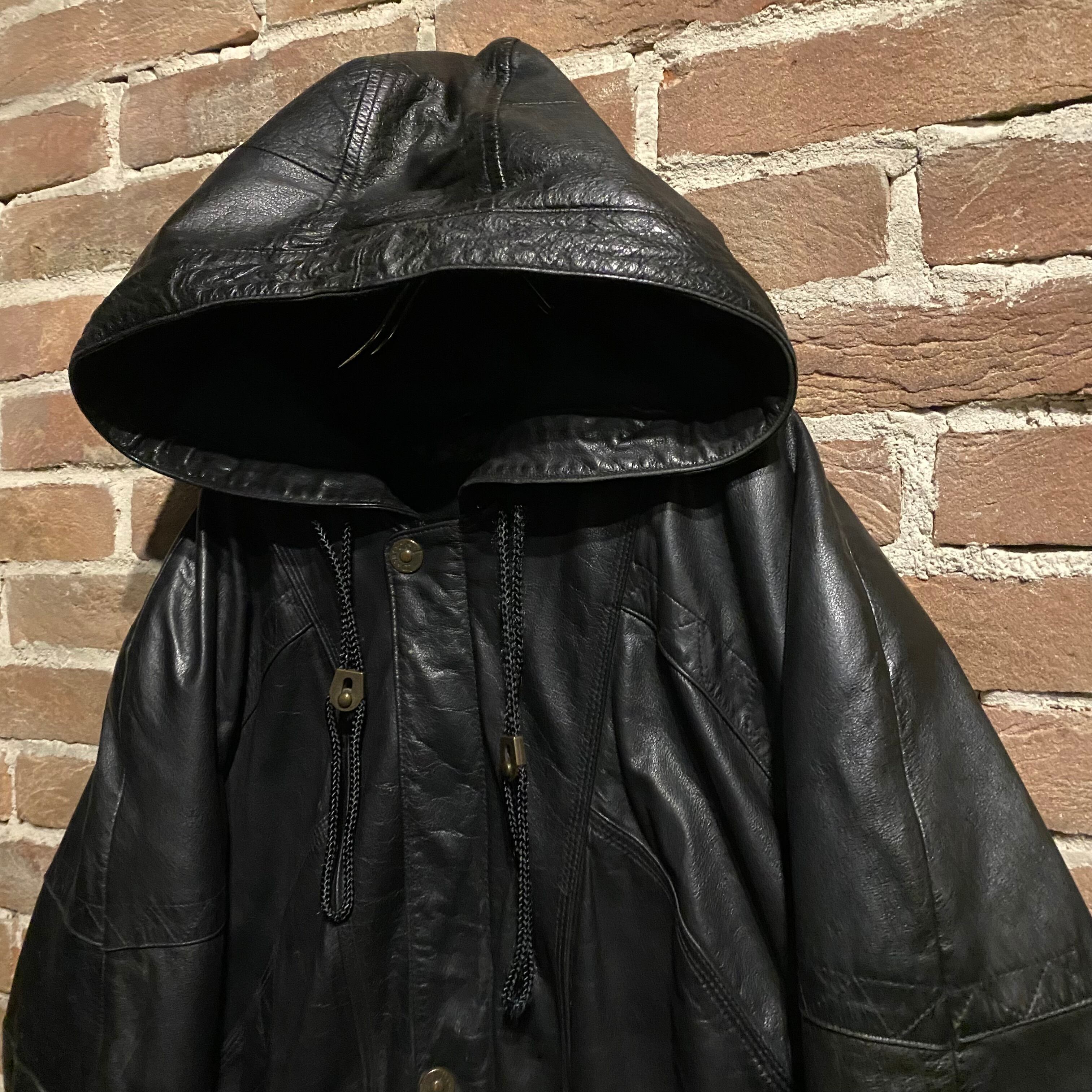 鈍い光沢を帯びたガシッとした質感ながらも、しなやかさを兼ね備えたの上質なブラックレザーを使用したフード付きのレザージャケット。