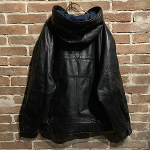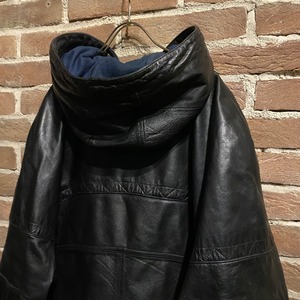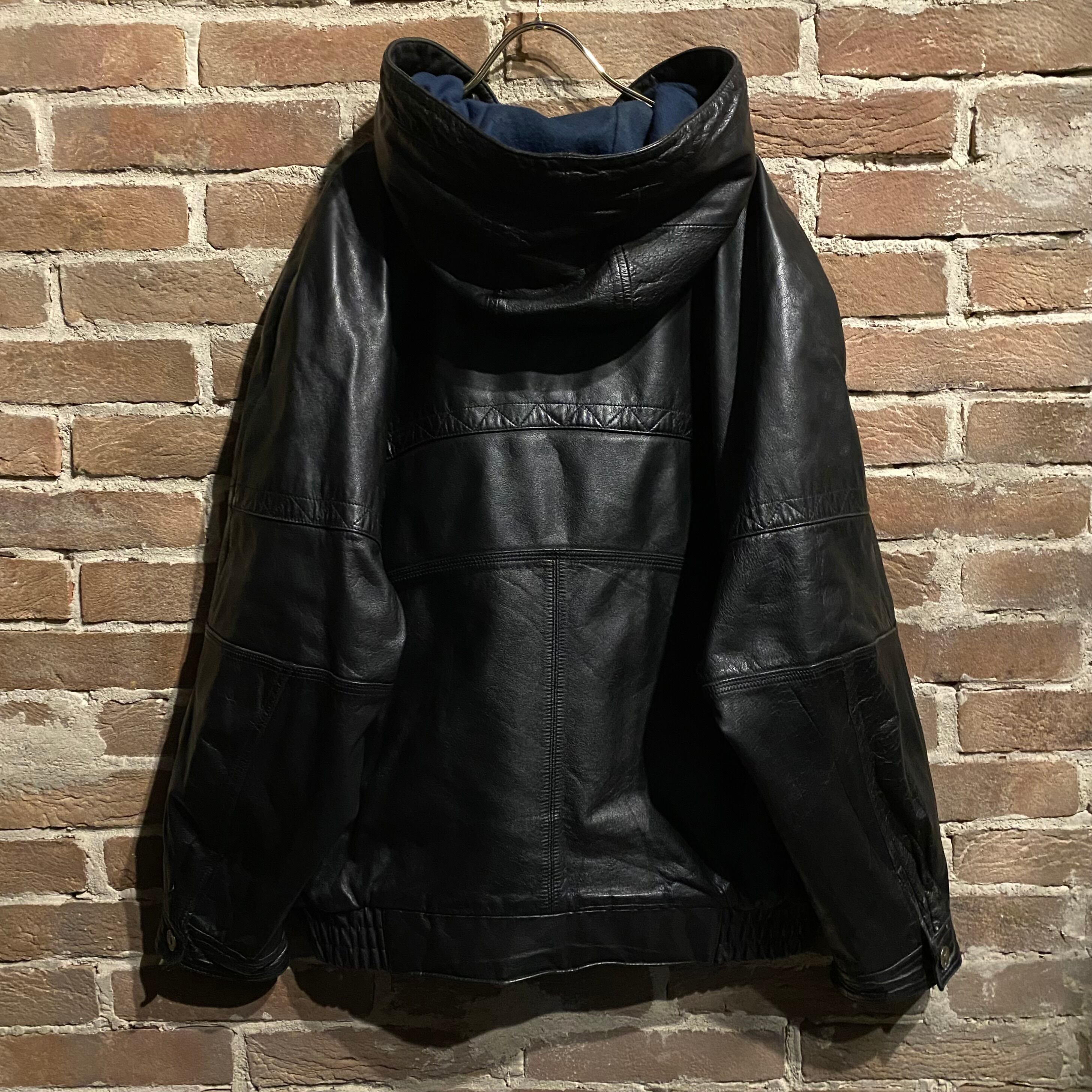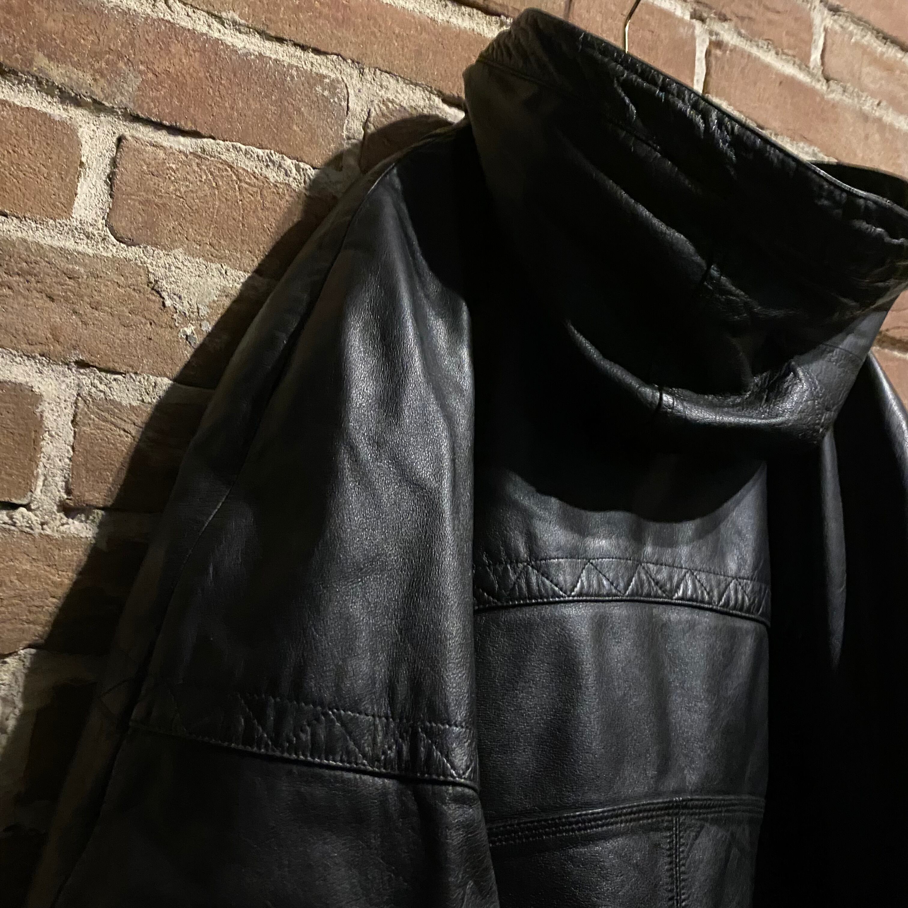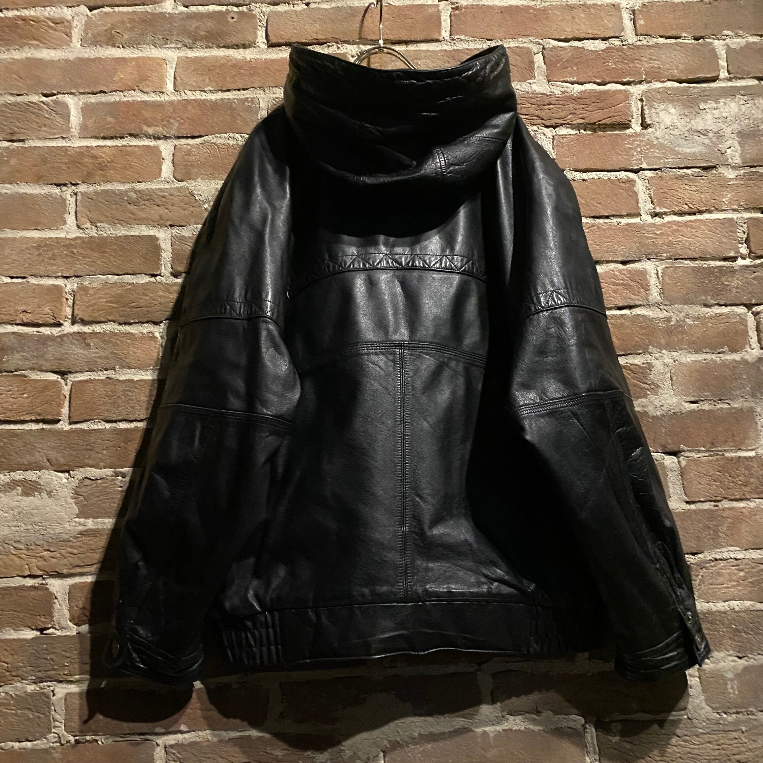 鈍い光沢を帯びたガシッとした質感ながらも、しなやかさを兼ね備えたの上質なブラックレザーを使用したフード付きのレザージャケット。