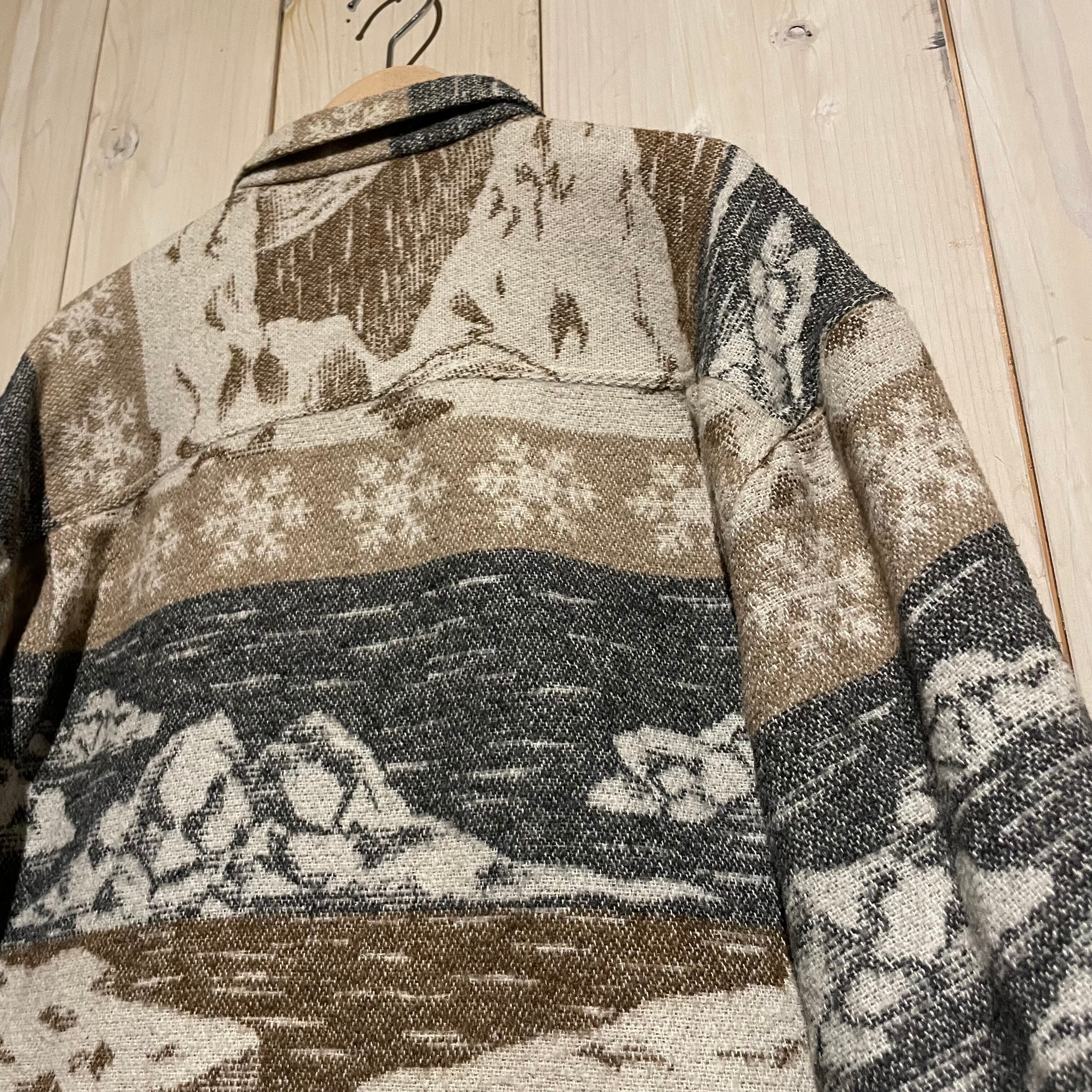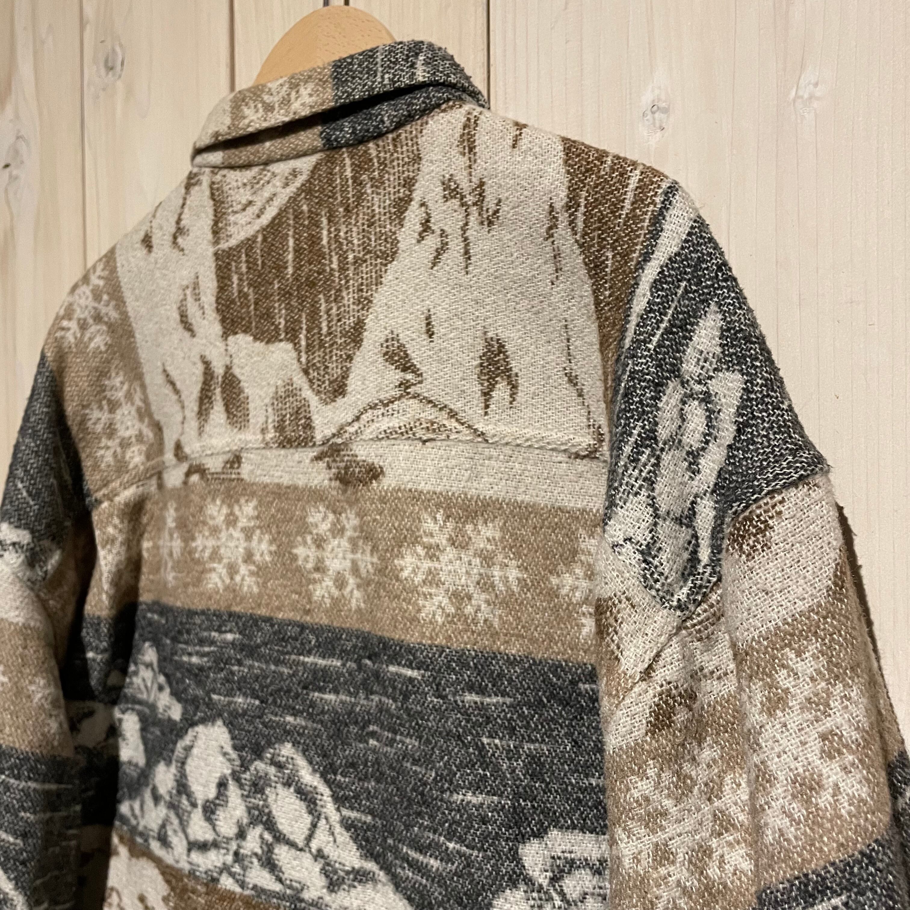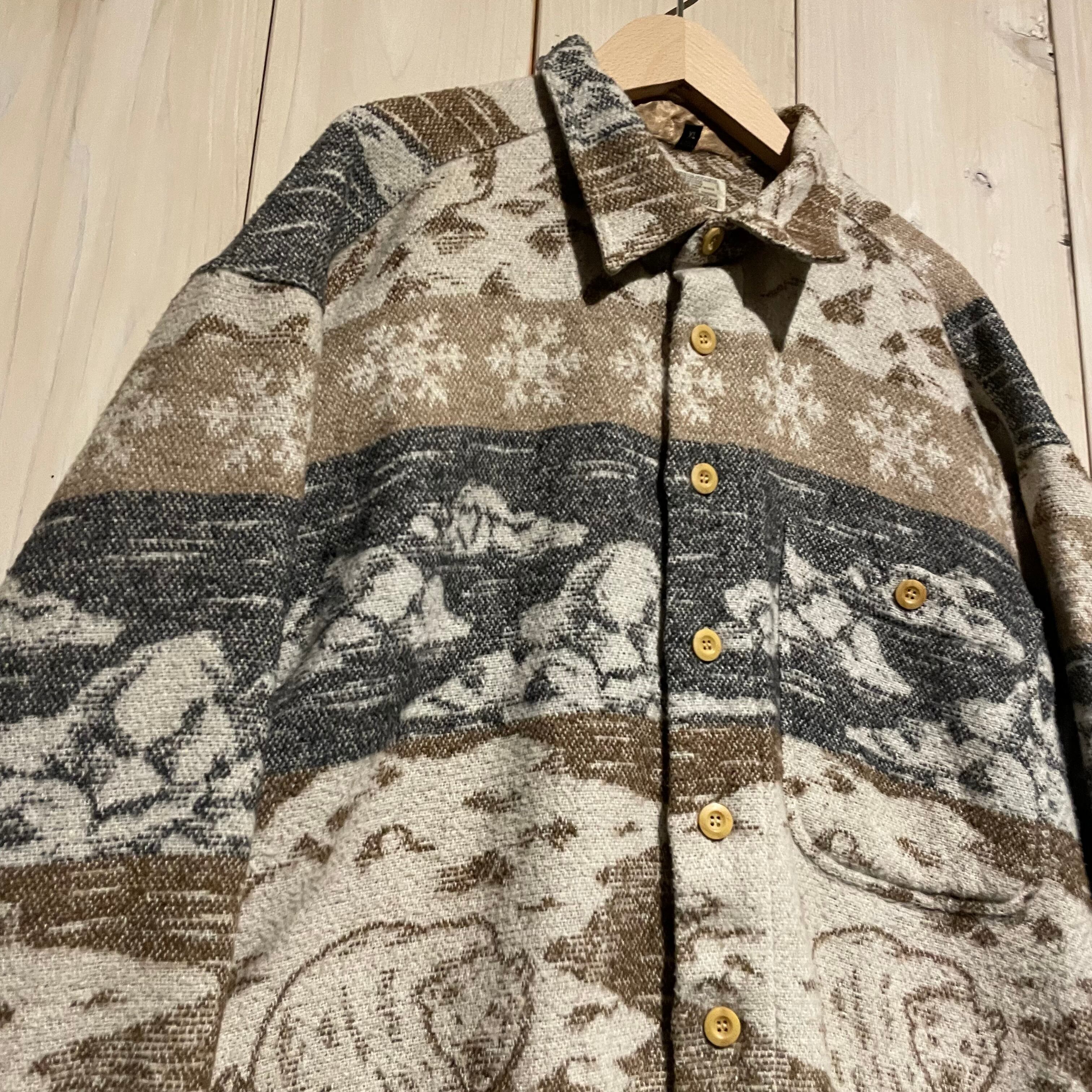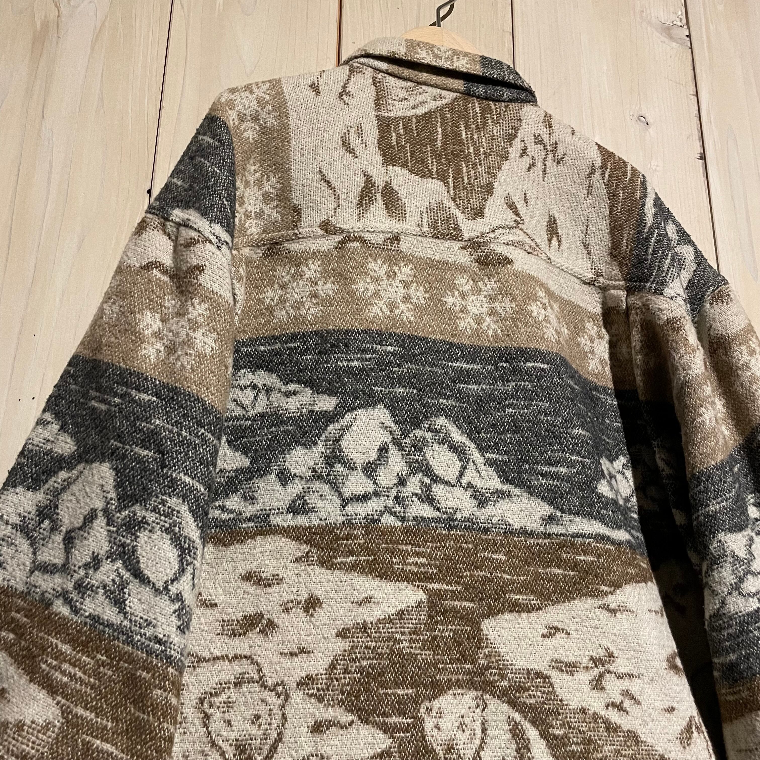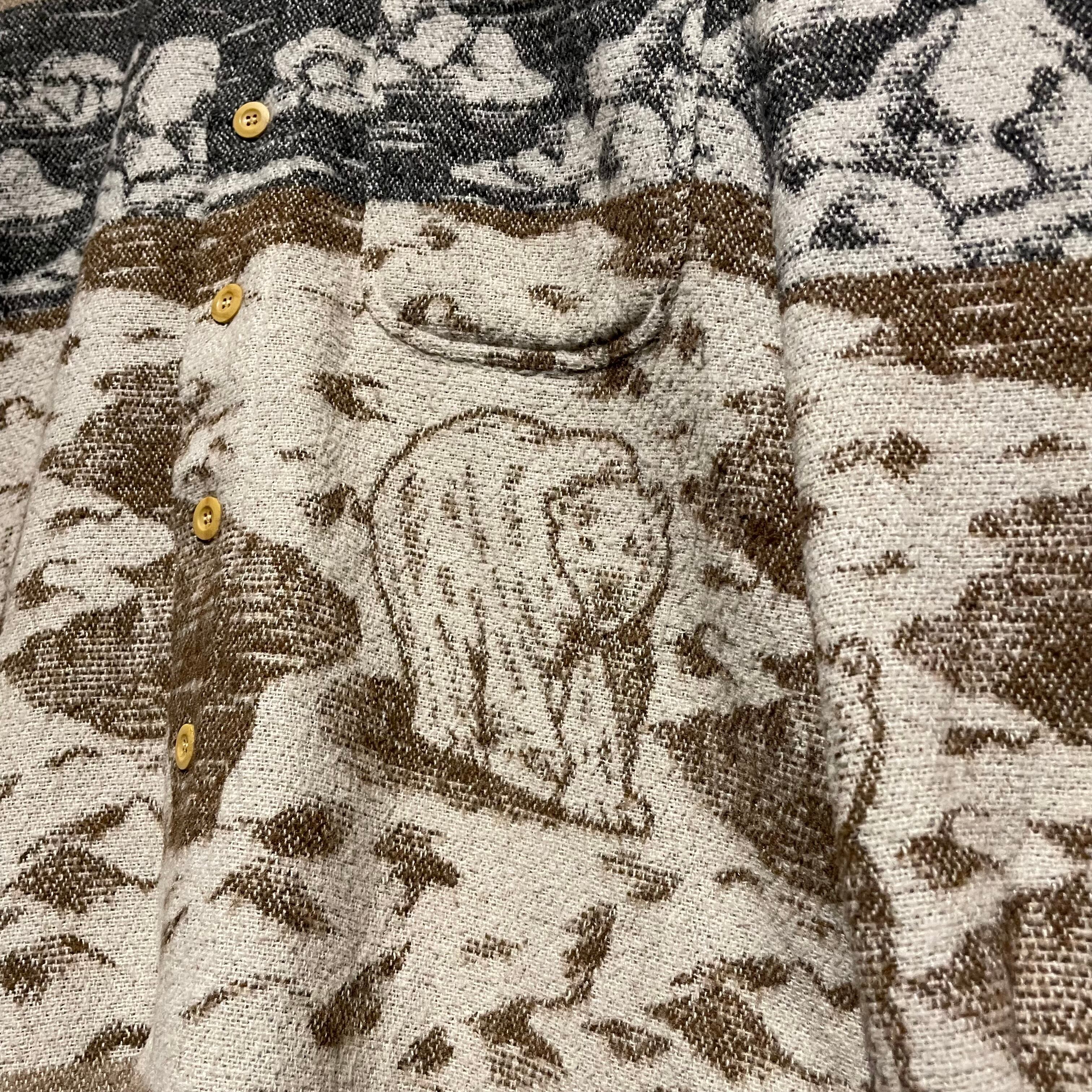 フワッと柔らかく肌触りの良いニット素材に、北極熊や雪の結晶を繊細な織りで載せたニットシャツジャケット。