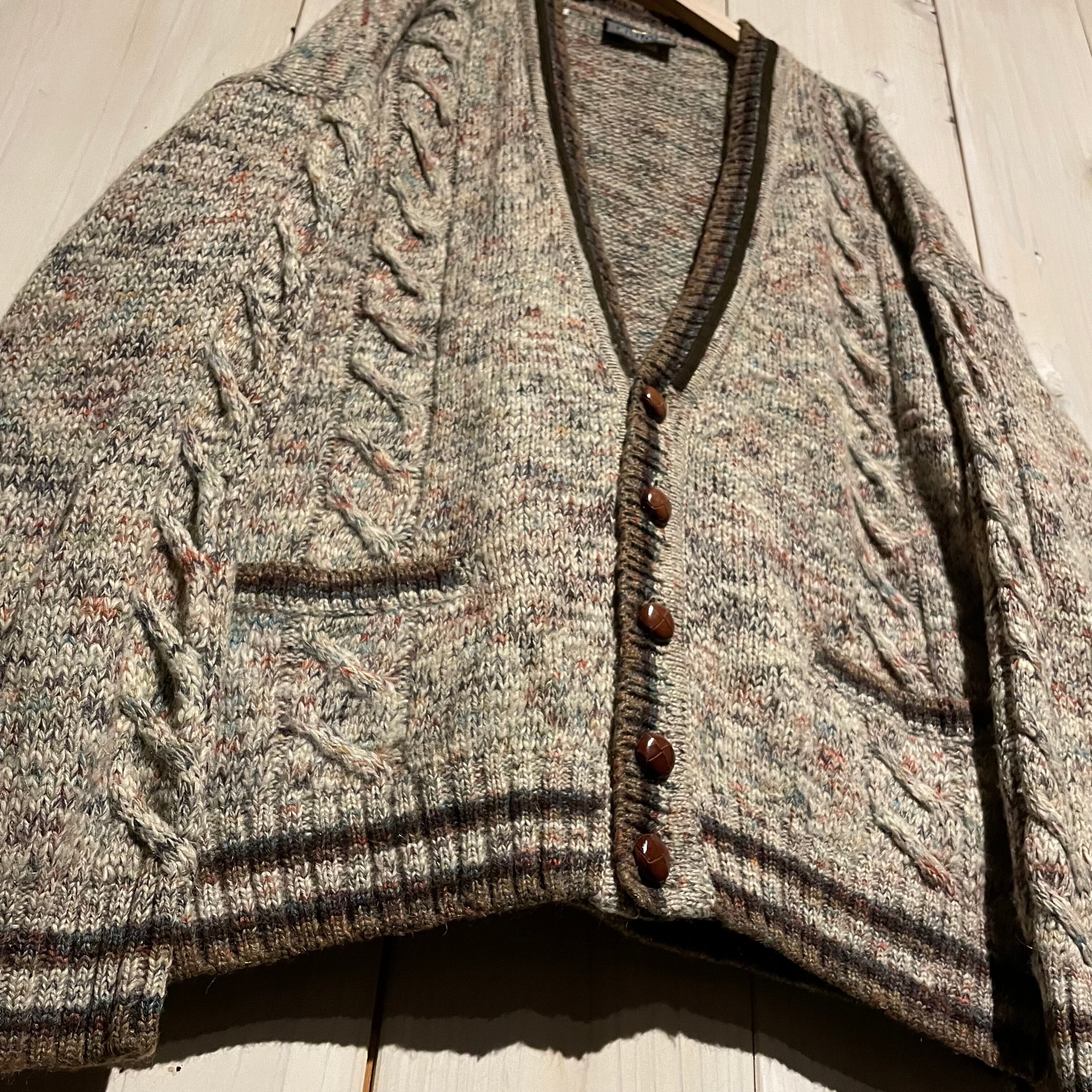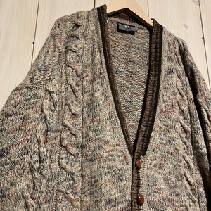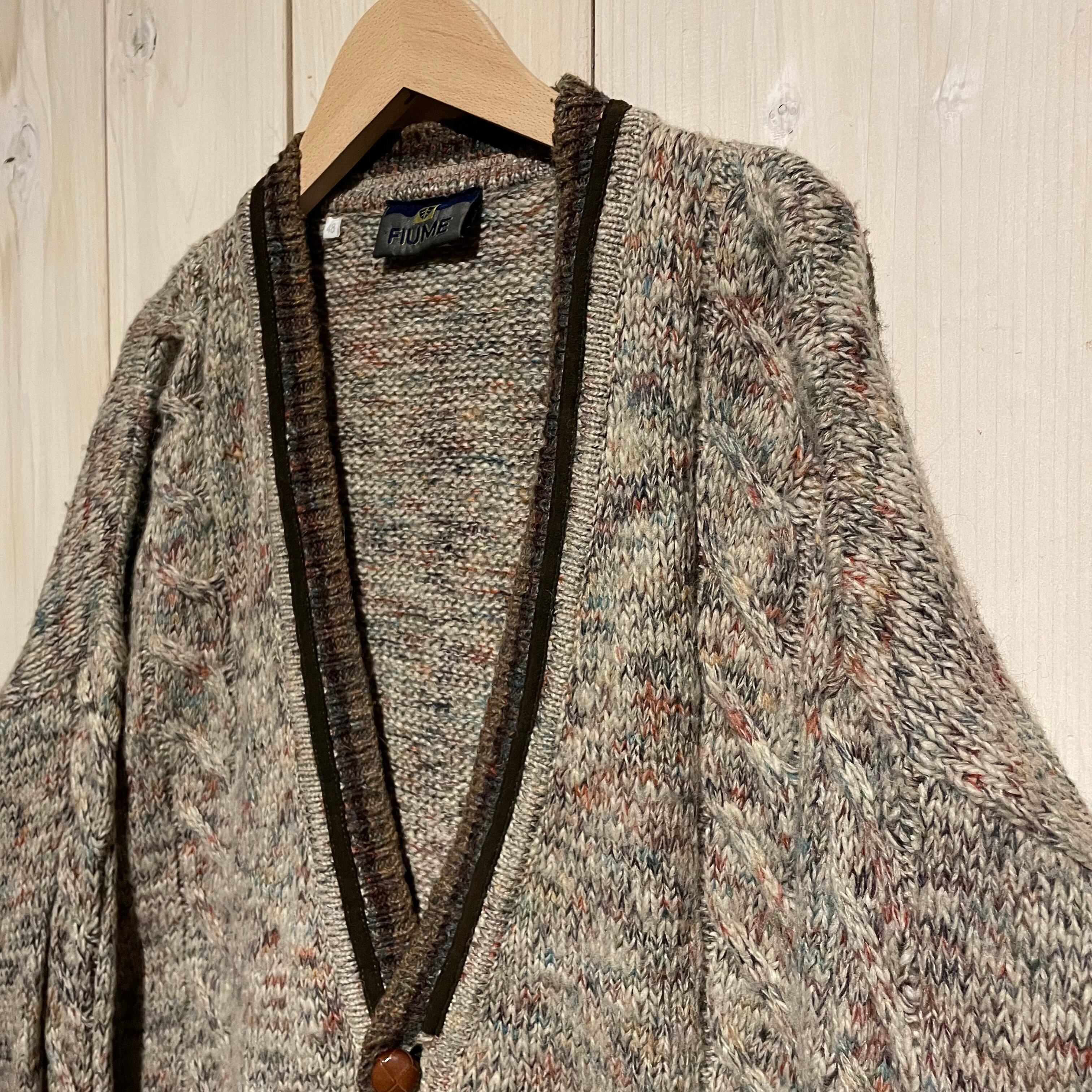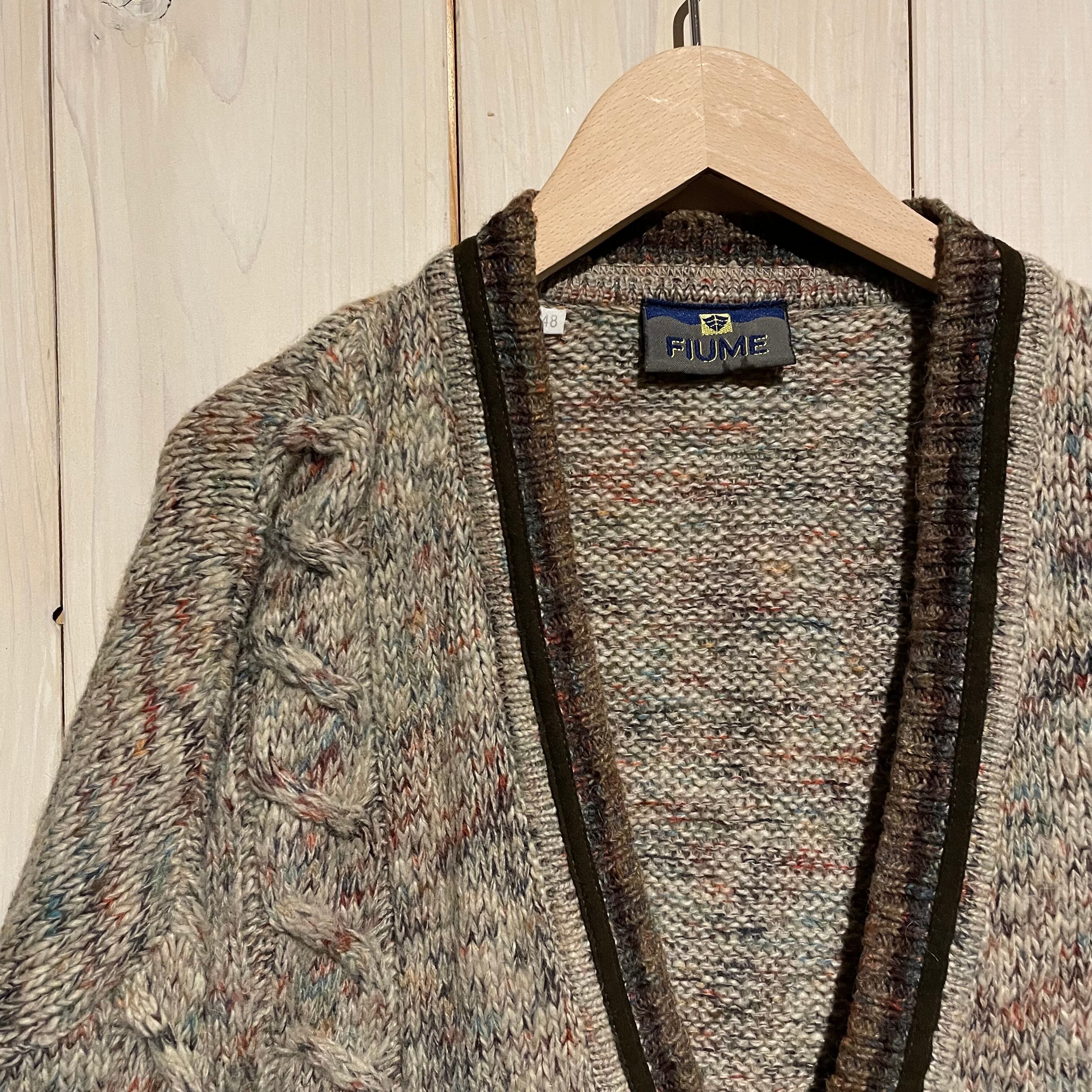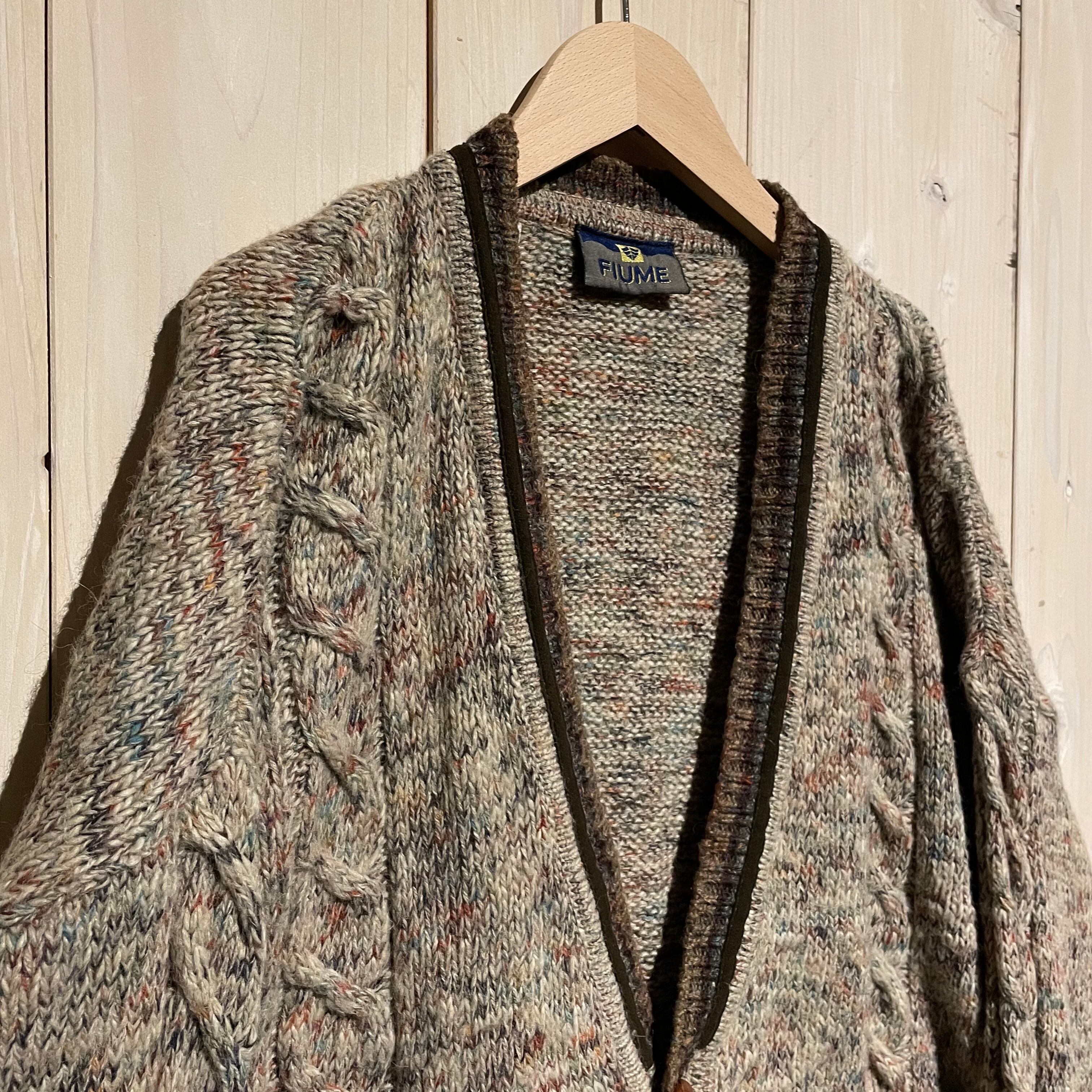縄のように立体的に編み込んだケーブル編みや、2色以上の霜降り糸を使用したメランジを組み合わせ、デザインバランスに長けたイタリアメイドのニットカーディガン。