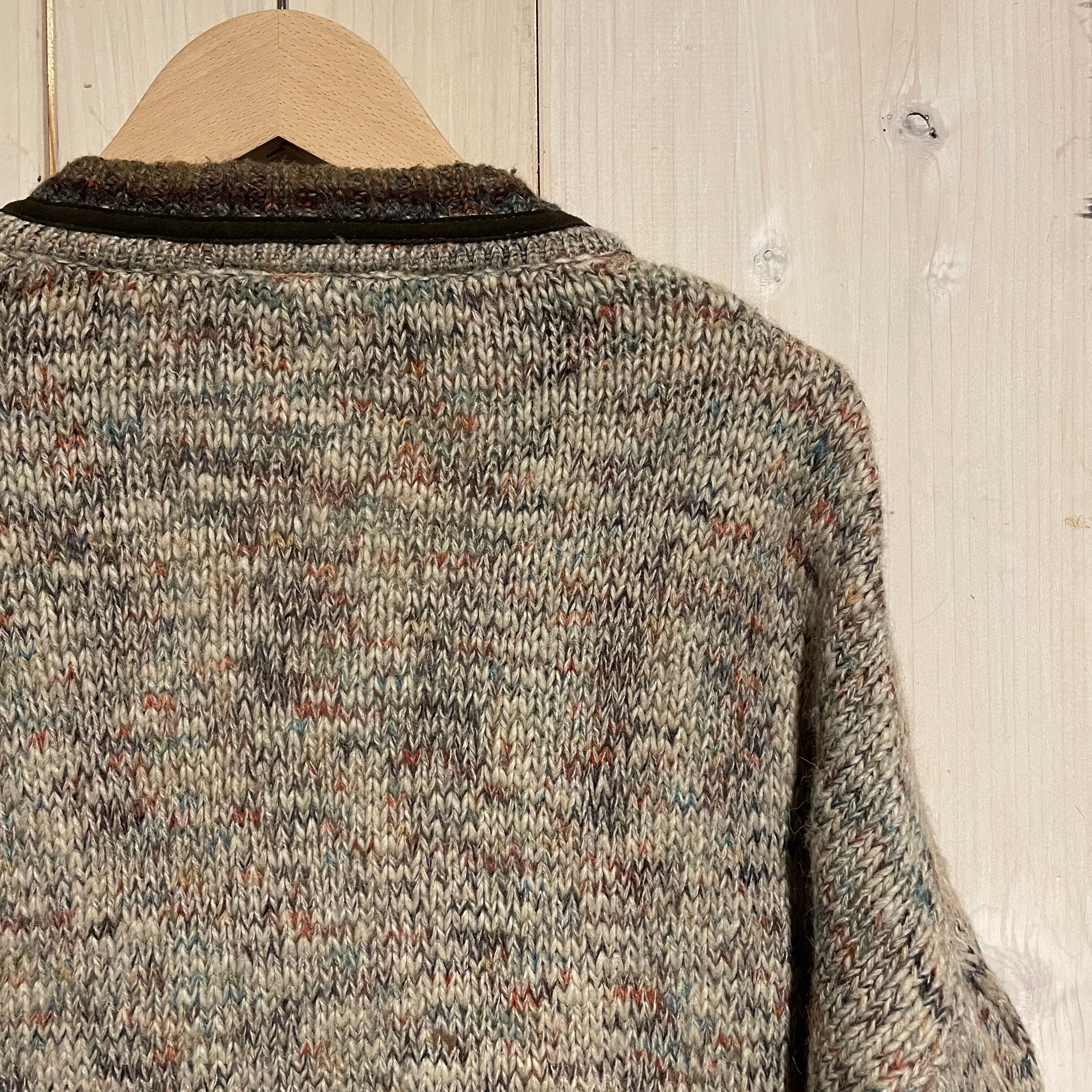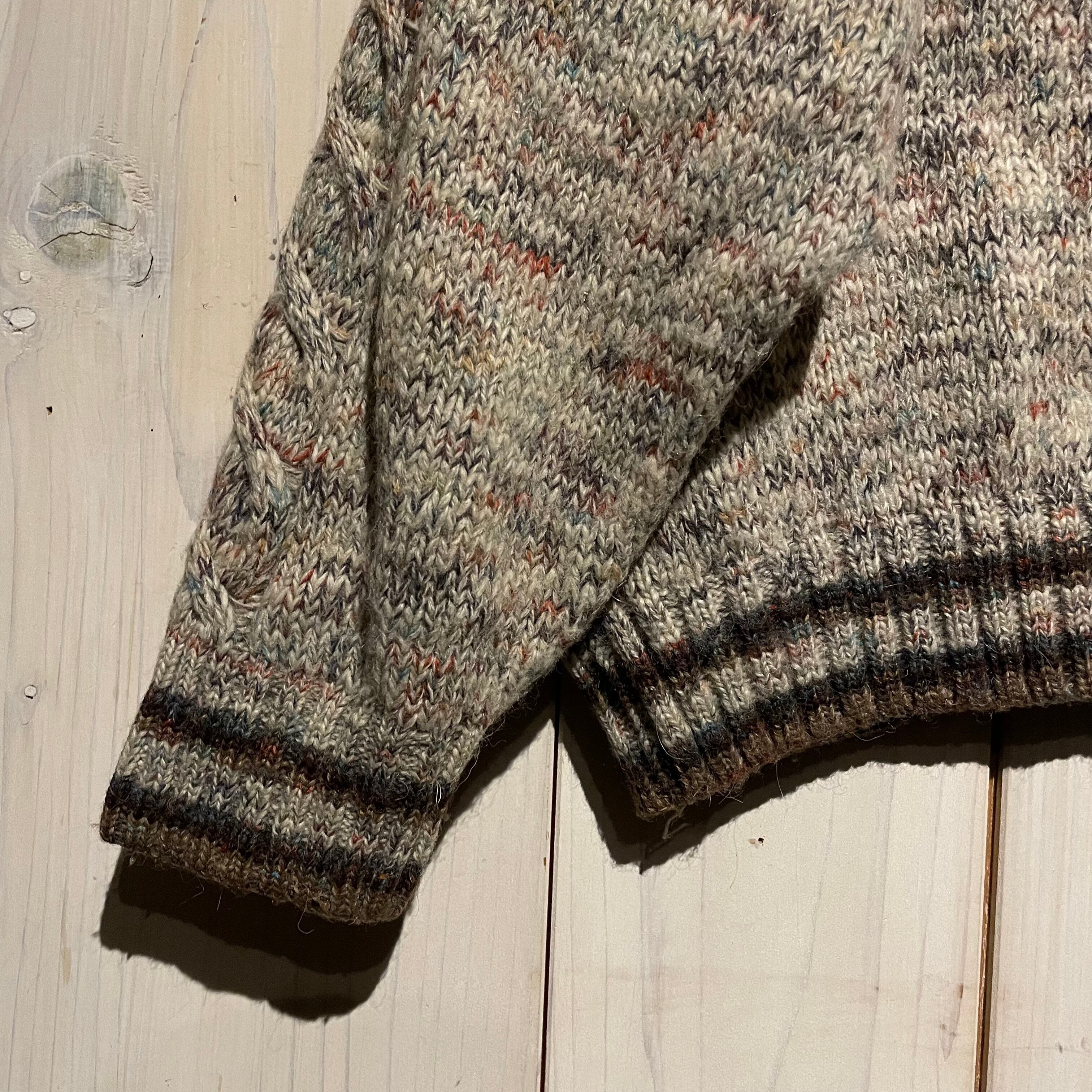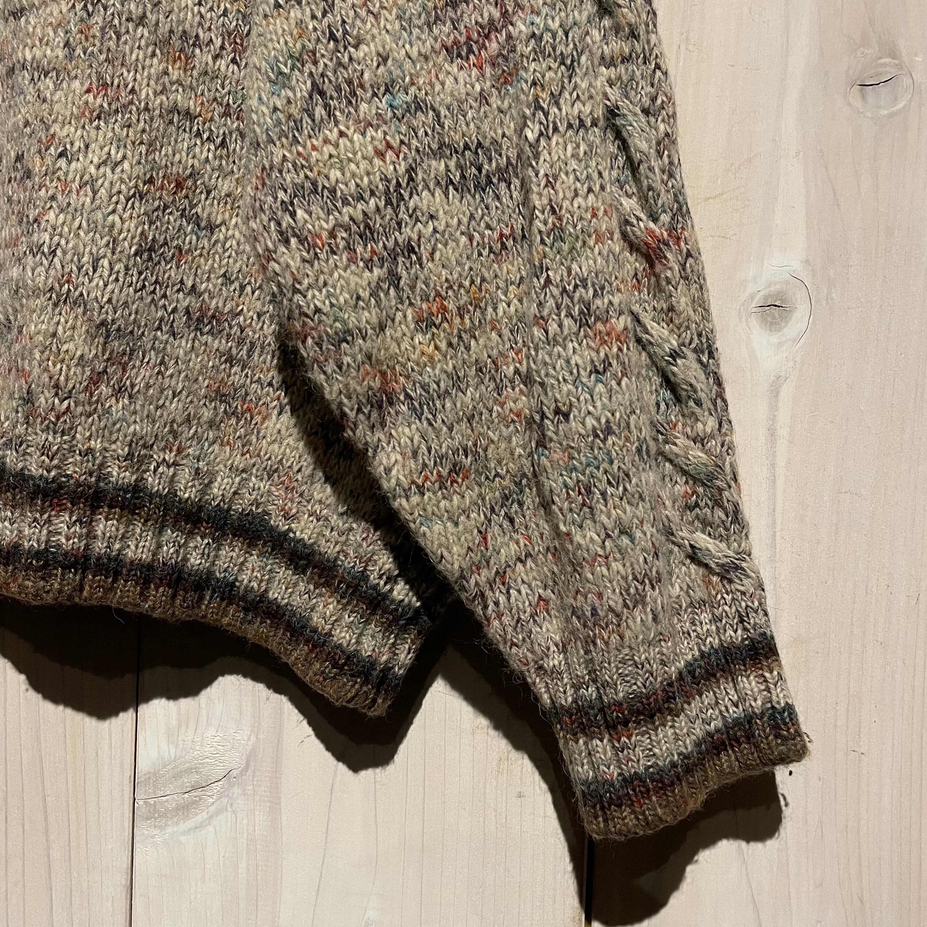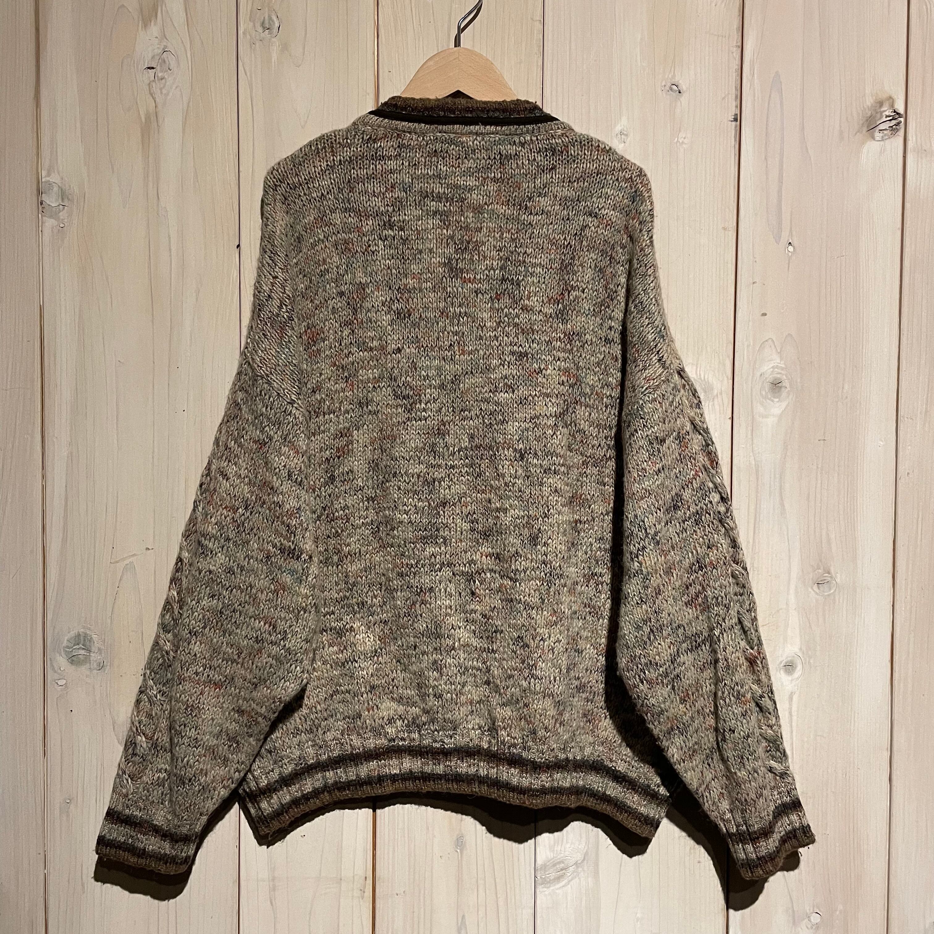 縄のように立体的に編み込んだケーブル編みや、2色以上の霜降り糸を使用したメランジを組み合わせ、デザインバランスに長けたイタリアメイドのニットカーディガン。