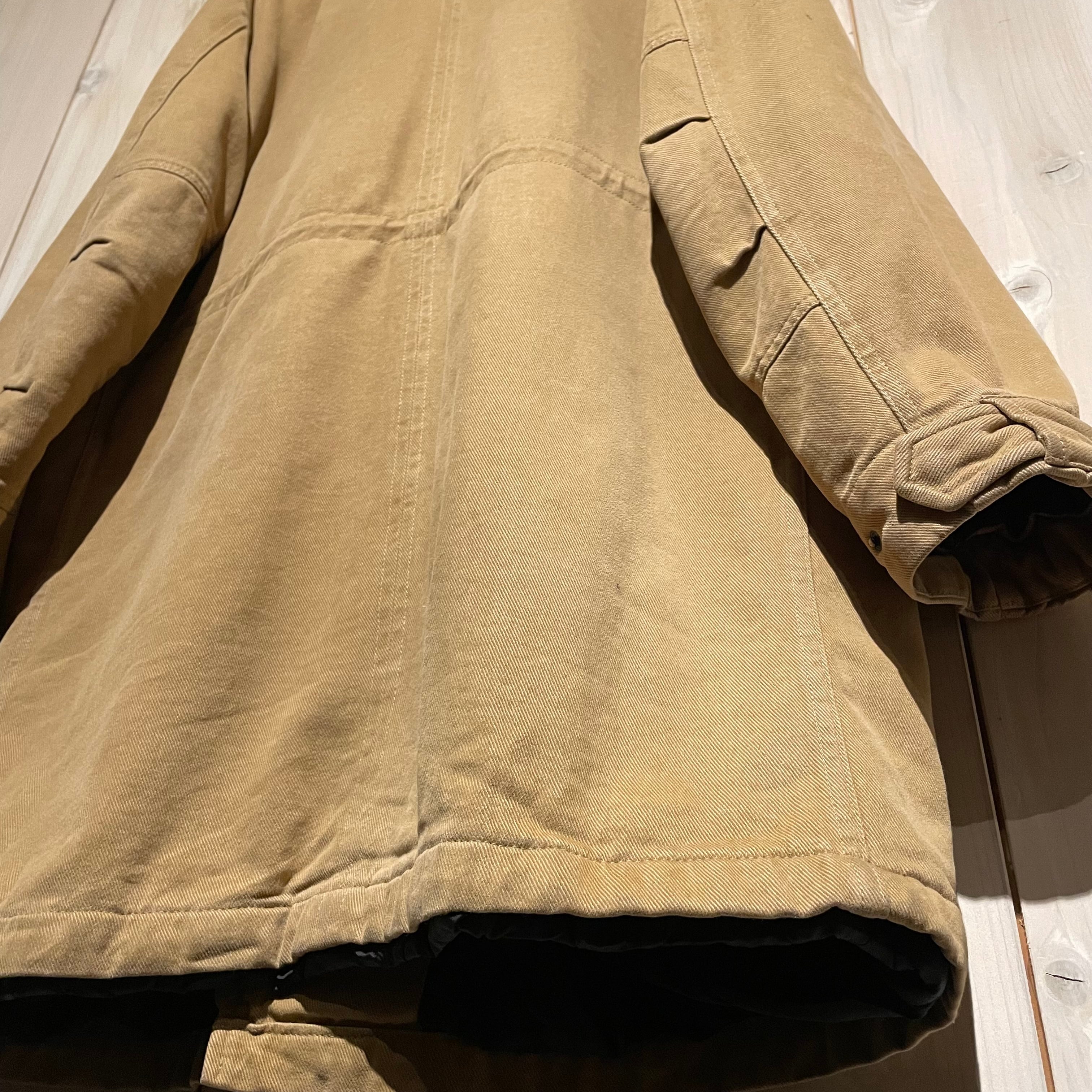 裏地がキルティングになっているので保温性は言わずもがな、ルーズなサイジングでニットやスウェットなど地厚なアイテムとのレイヤードも楽々可能。