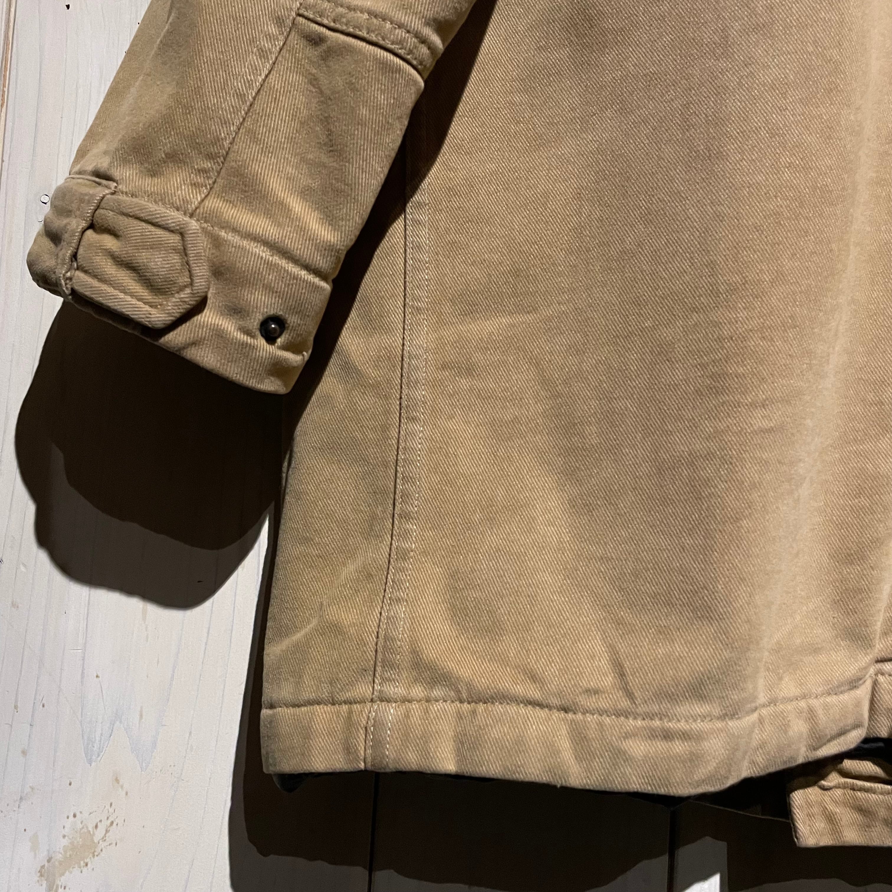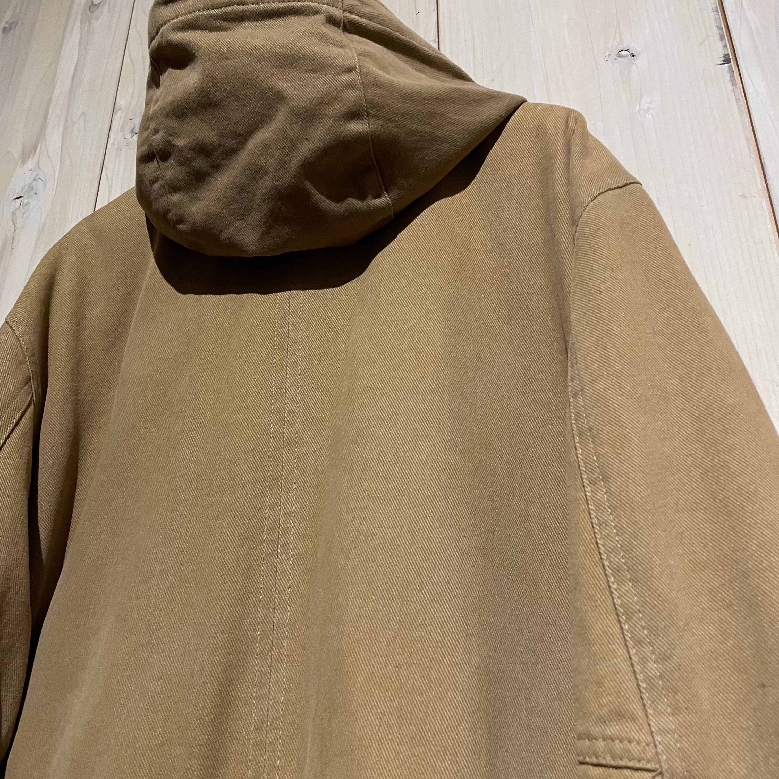 タフかつコシがありながら、非常に肌触りが良いツイル織りのボディに、ミリタリーモチーフのギミックを載せたハーフコート。