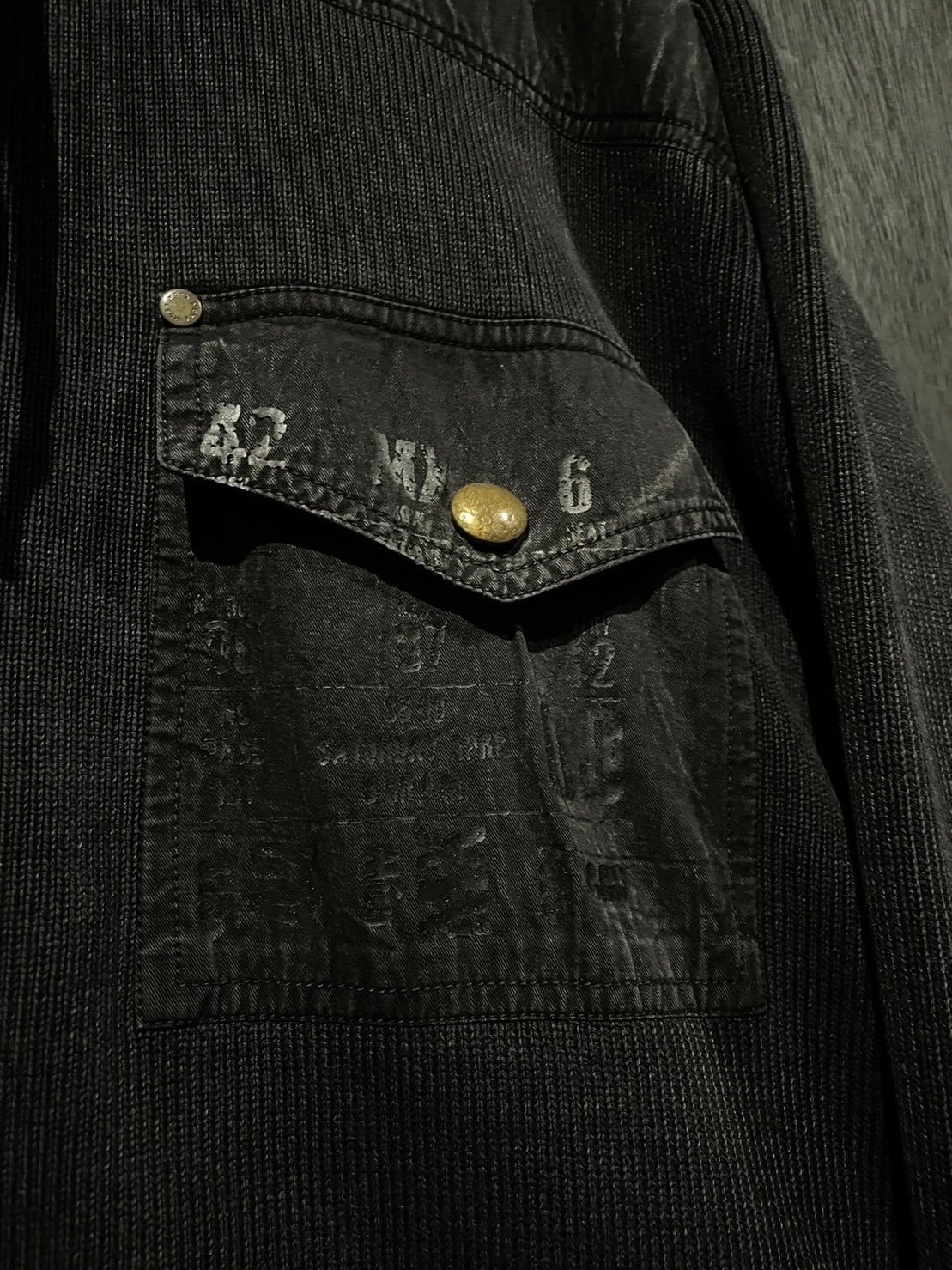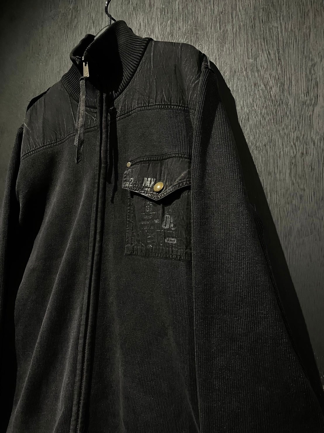 コットンのフェード感が非常に雰囲気を醸し出すブラックのボディに、ヨーク部分には素材を切り替えたジップアップジャケット。