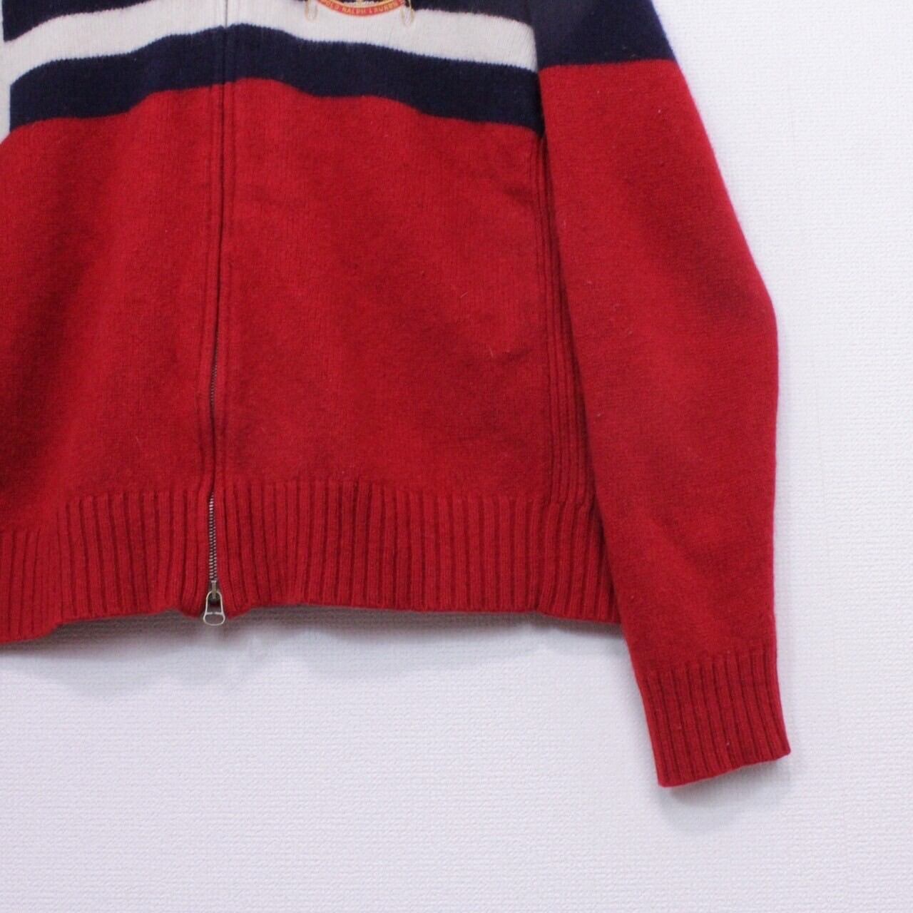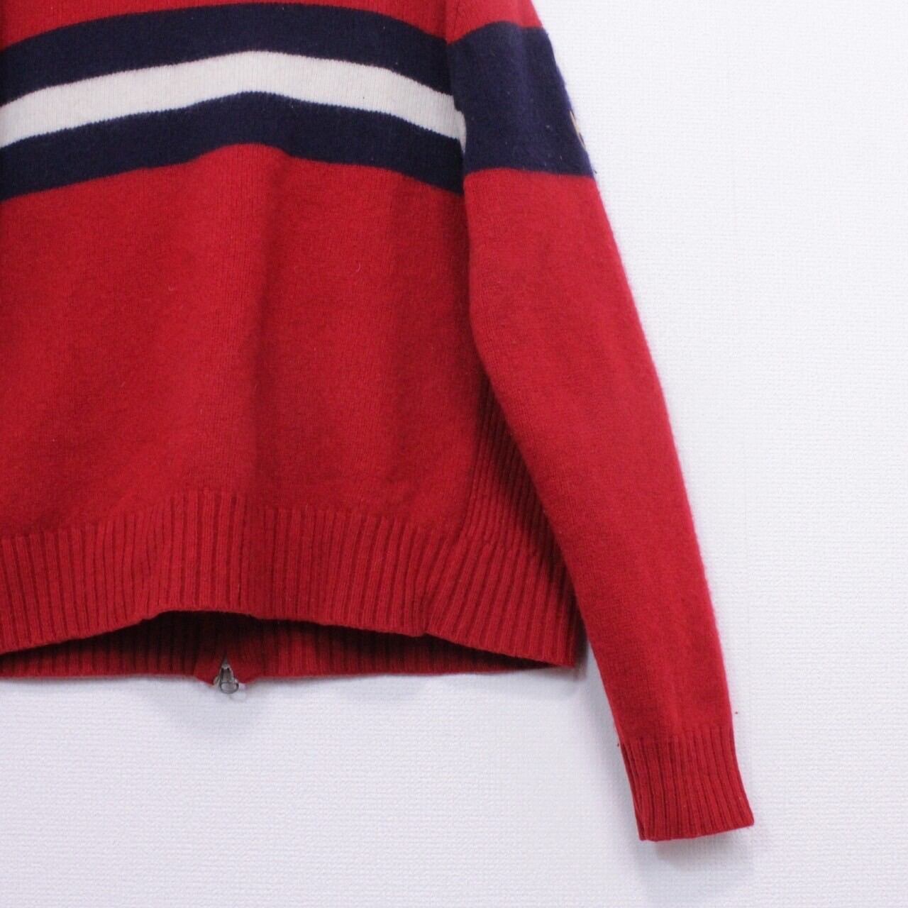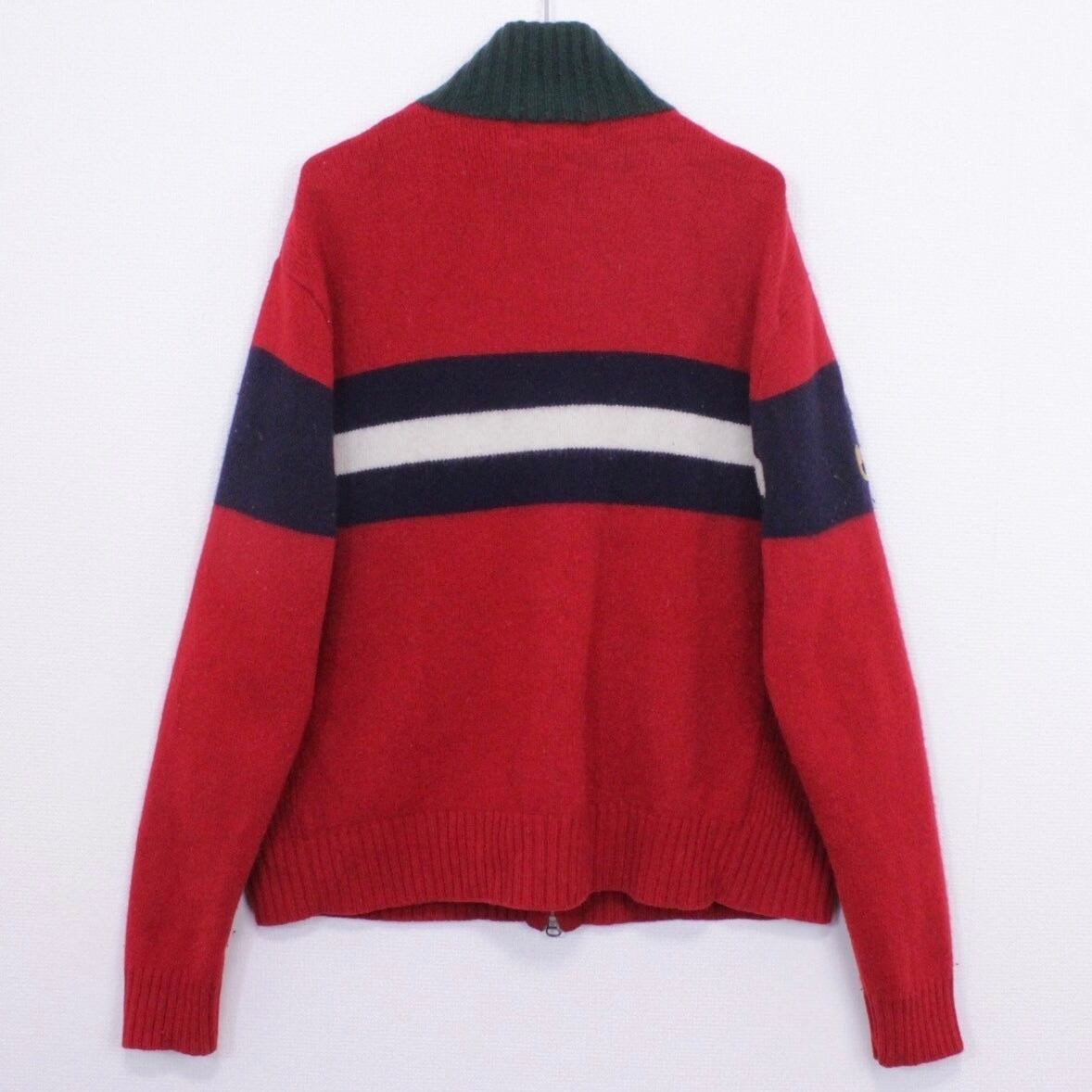 鮮やかな赤色のボディをベースにエンブレムパッチをデザインしたドライバーズニット。ブランドらしいトラッドさがありながらも、どこかラグジュアリーな雰囲気も漂います。