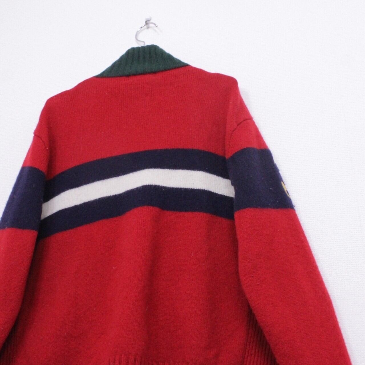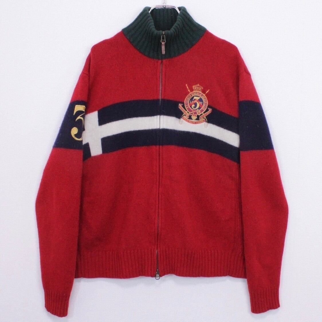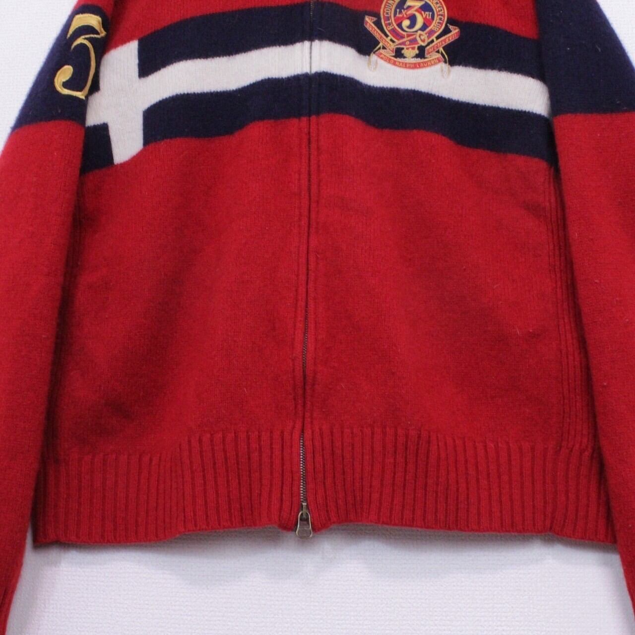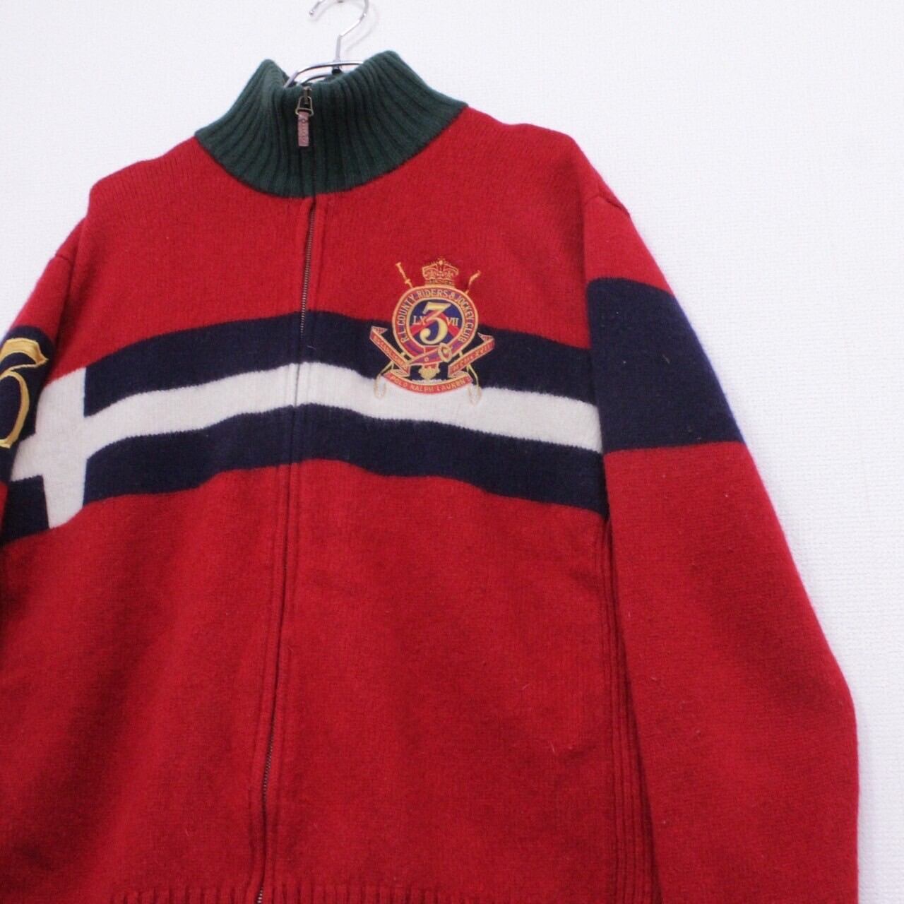 鮮やかな赤色のボディをベースにエンブレムパッチをデザインしたドライバーズニット。ブランドらしいトラッドさがありながらも、どこかラグジュアリーな雰囲気も漂います。