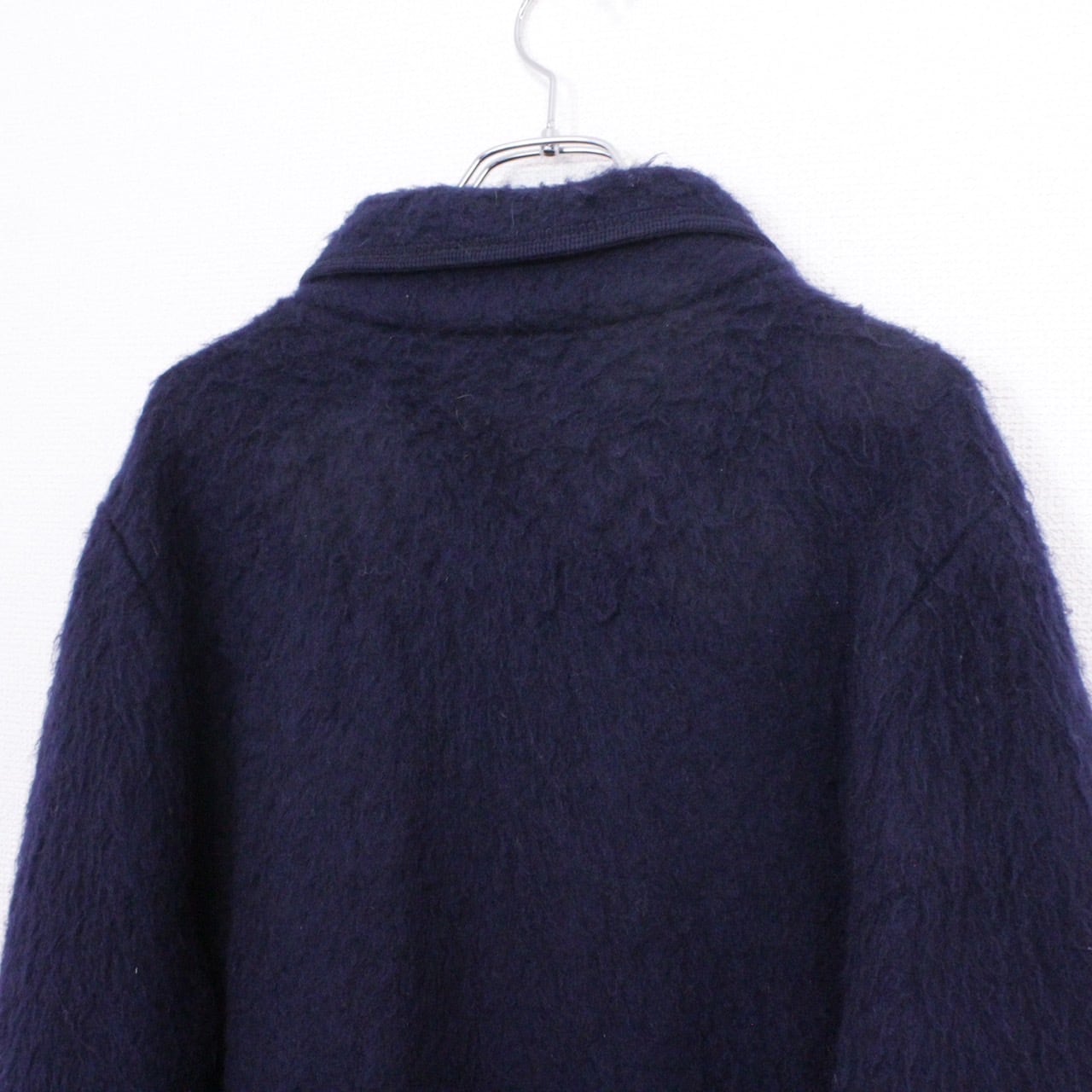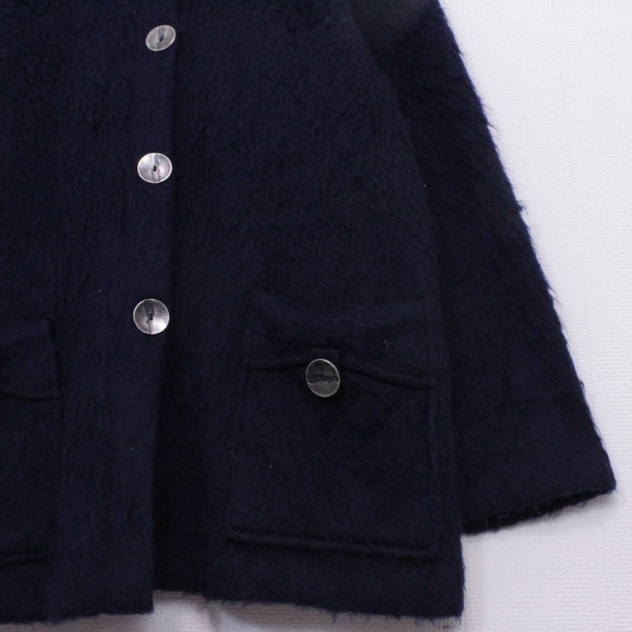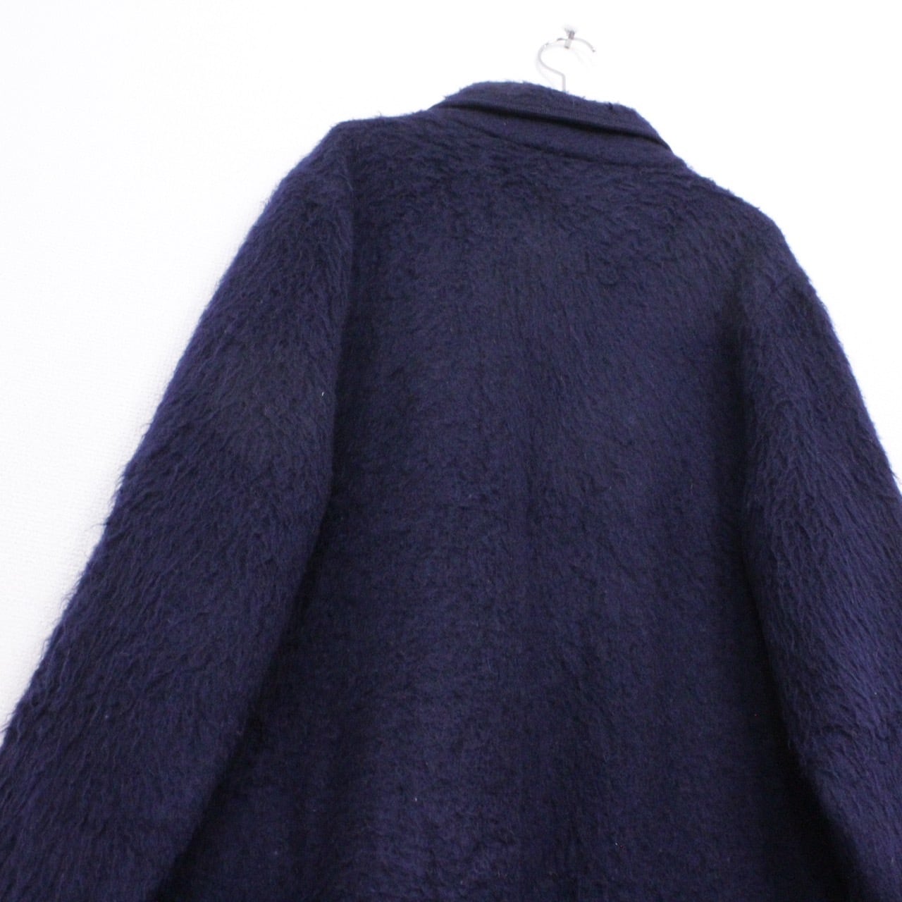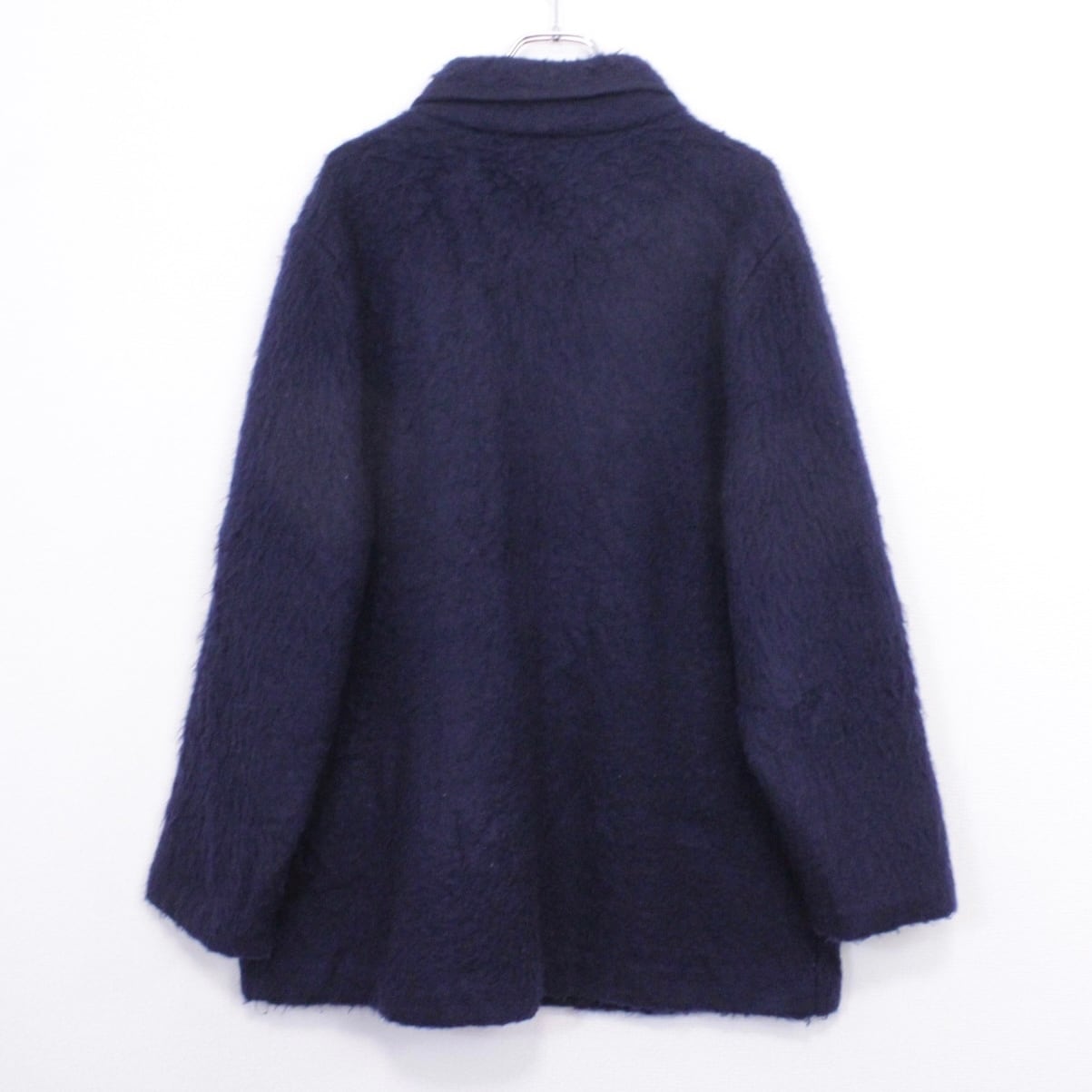 上品なネイビーカラーで仕上げたフワッとした質感のシャギー生地をボディに使用したジャケット。