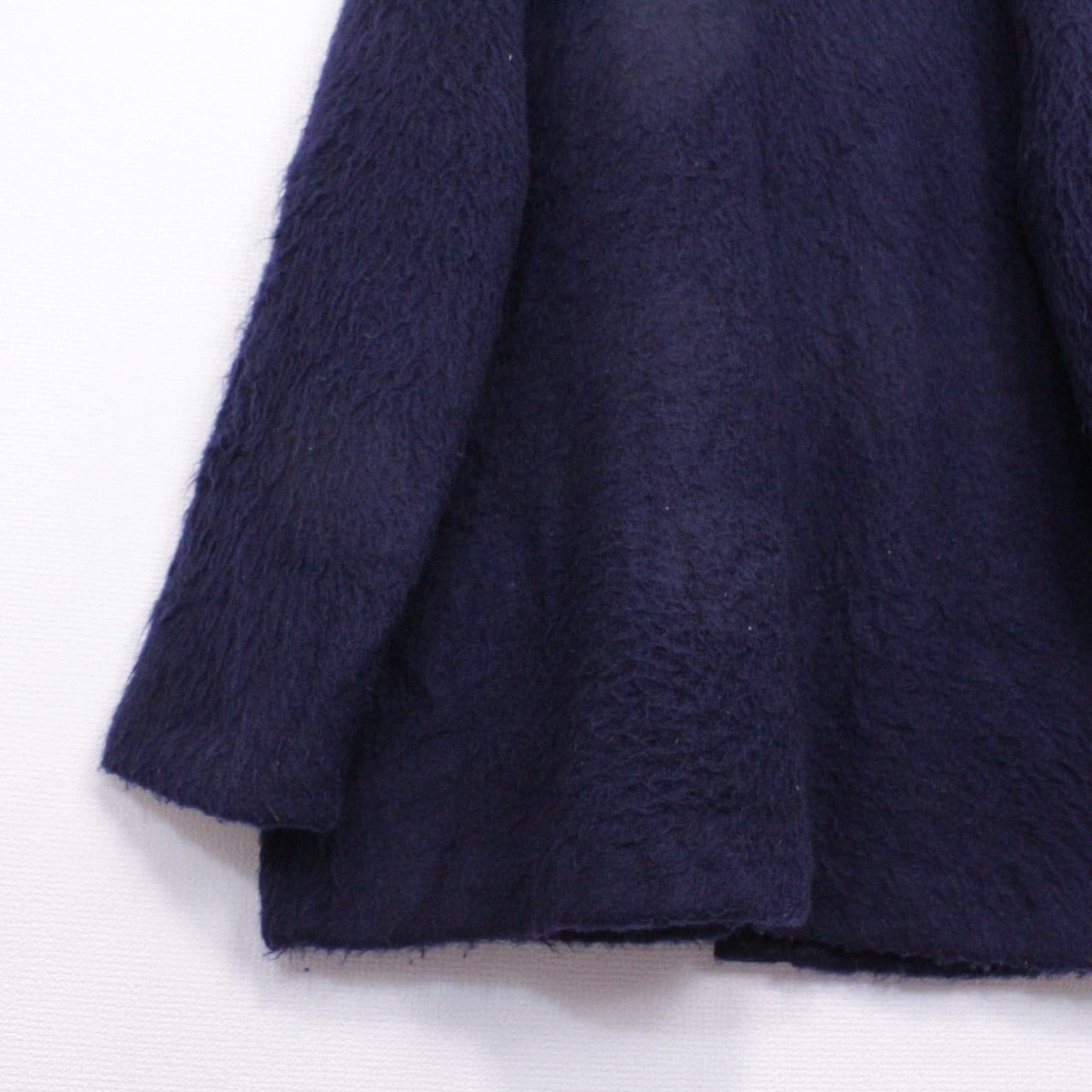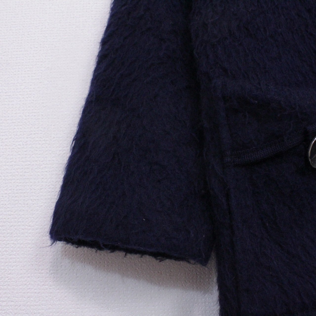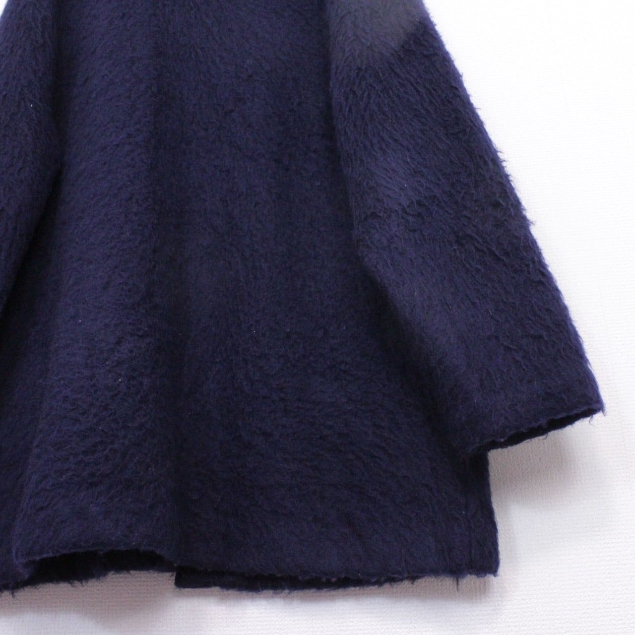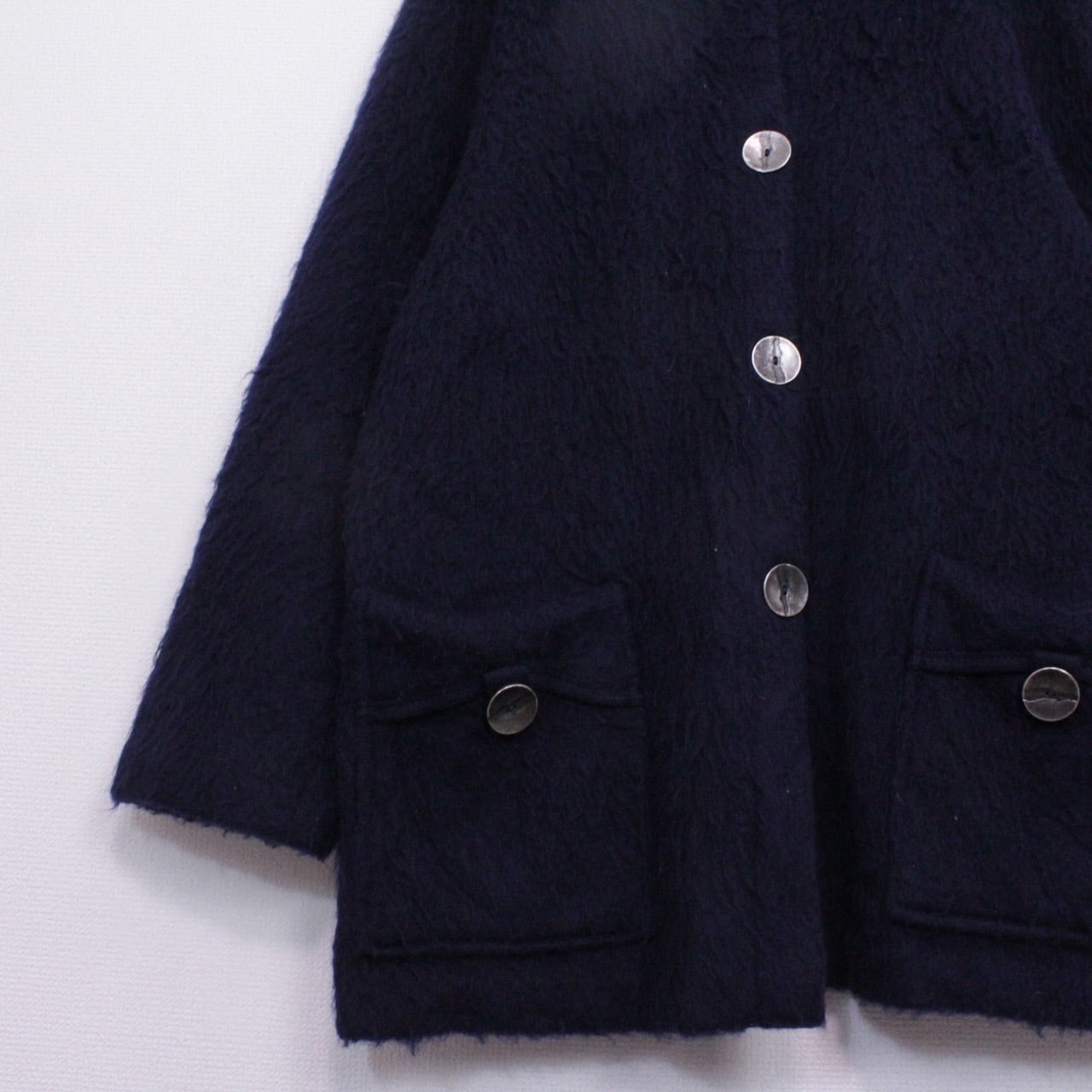上品なネイビーカラーで仕上げたフワッとした質感のシャギー生地をボディに使用したジャケット。