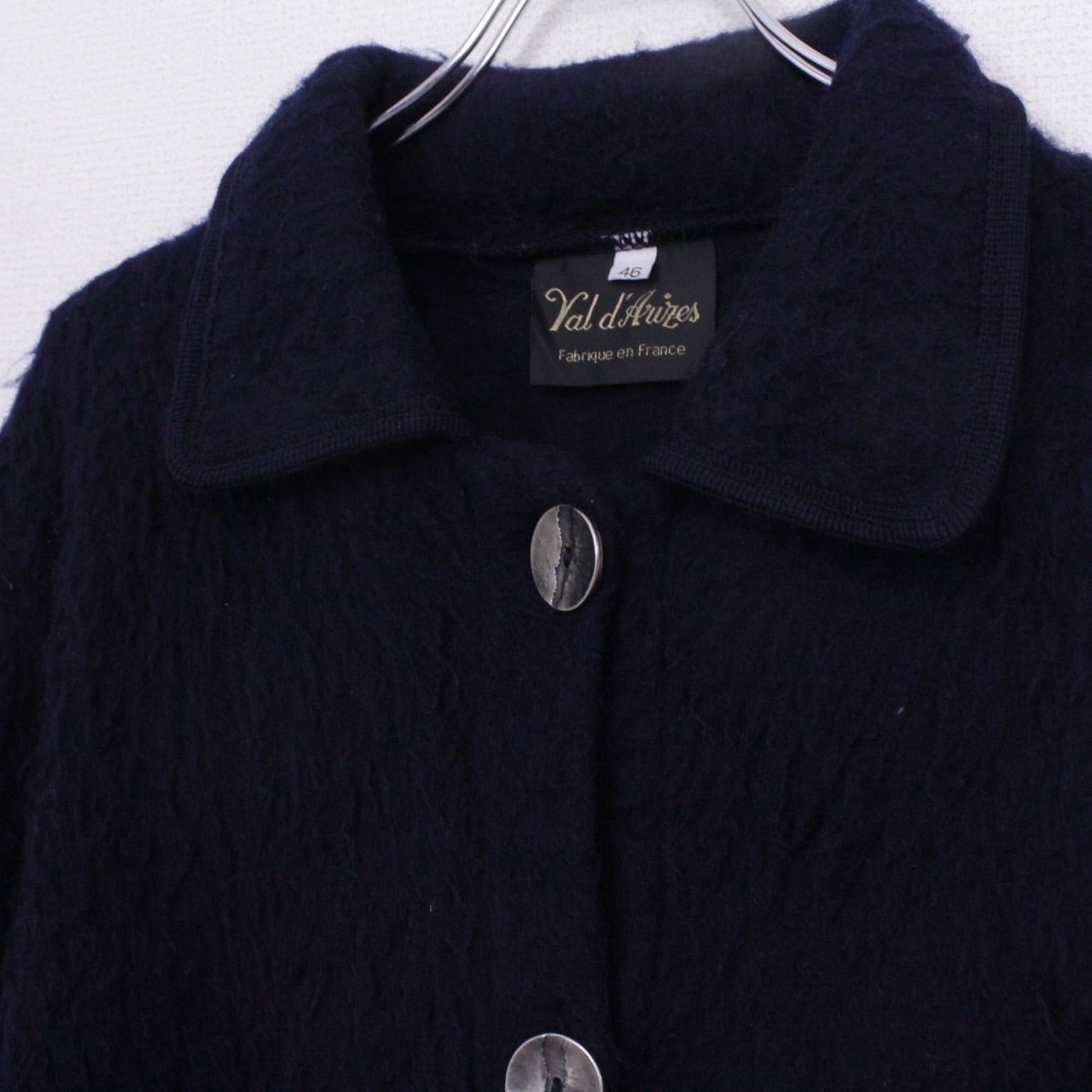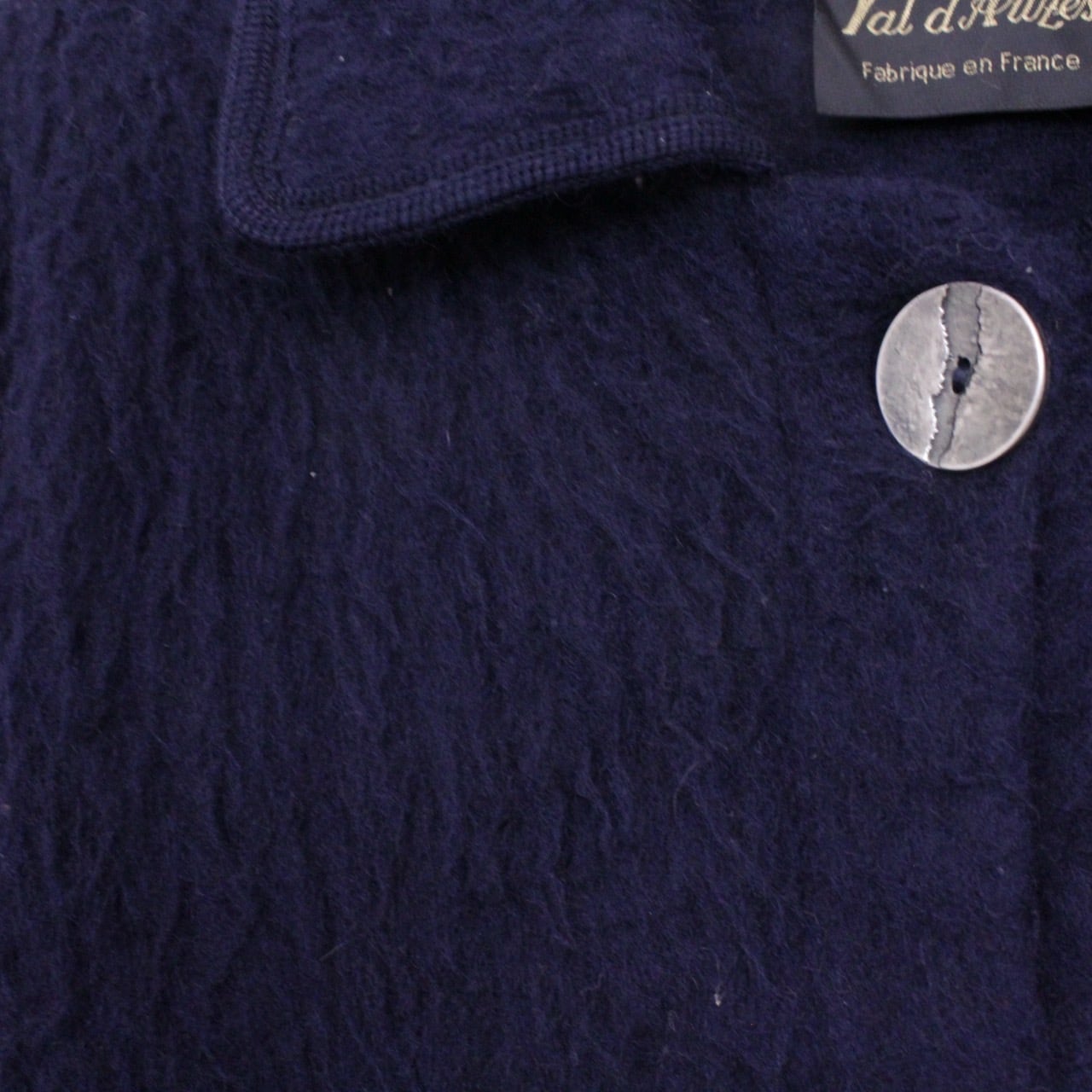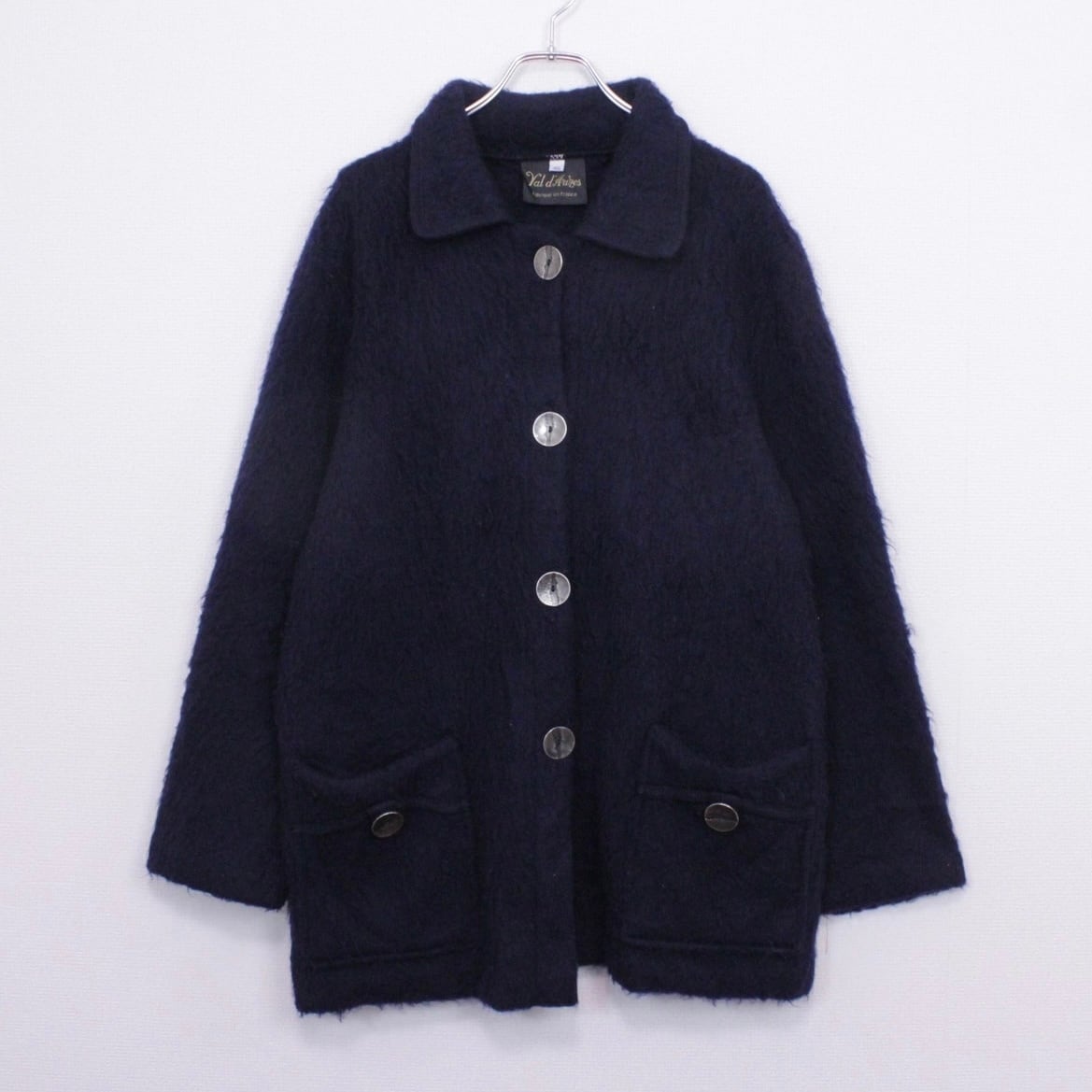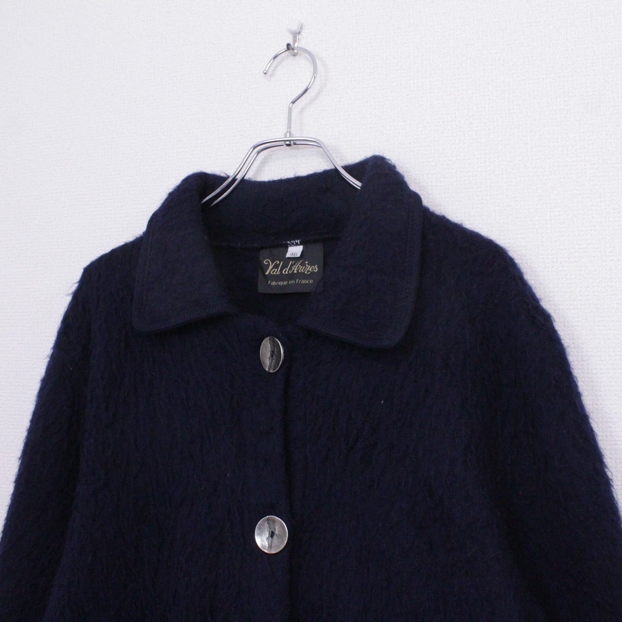 上品なネイビーカラーで仕上げたフワッとした質感のシャギー生地をボディに使用したジャケット。