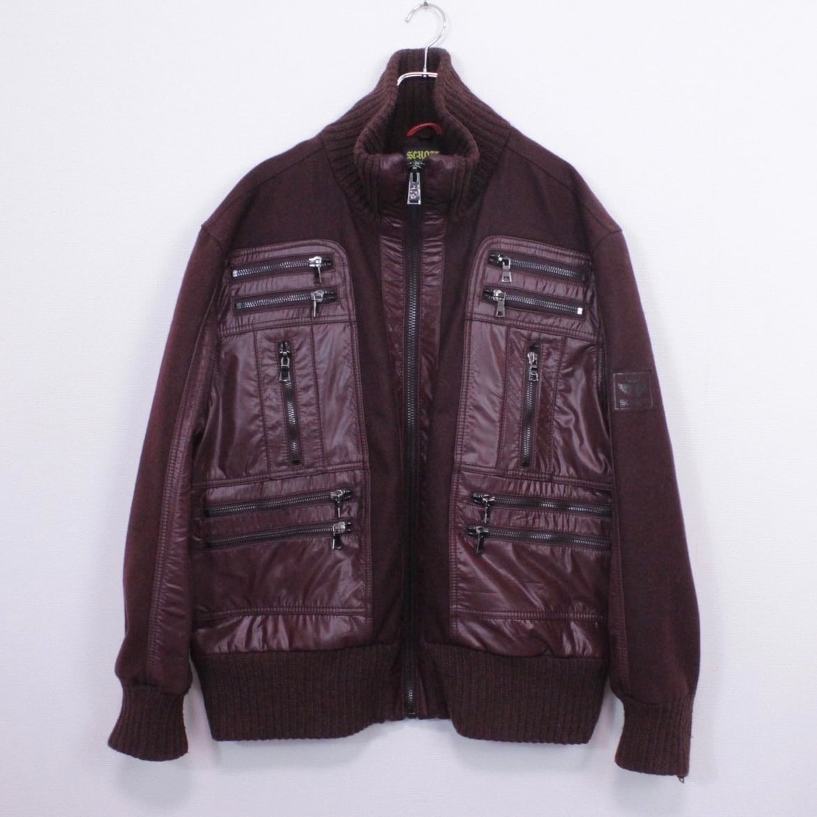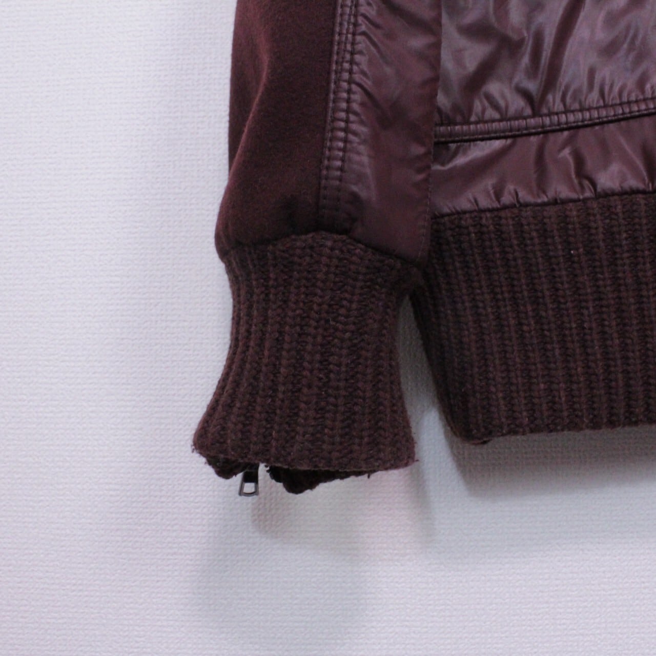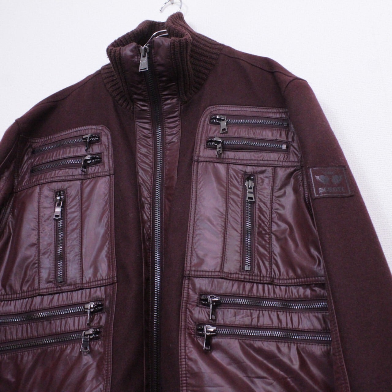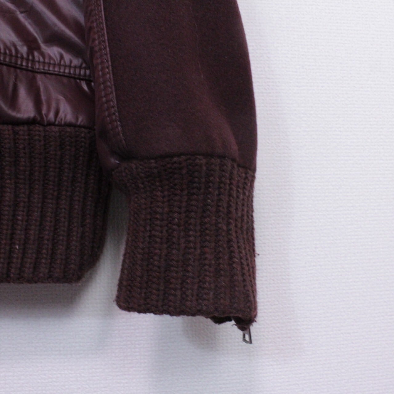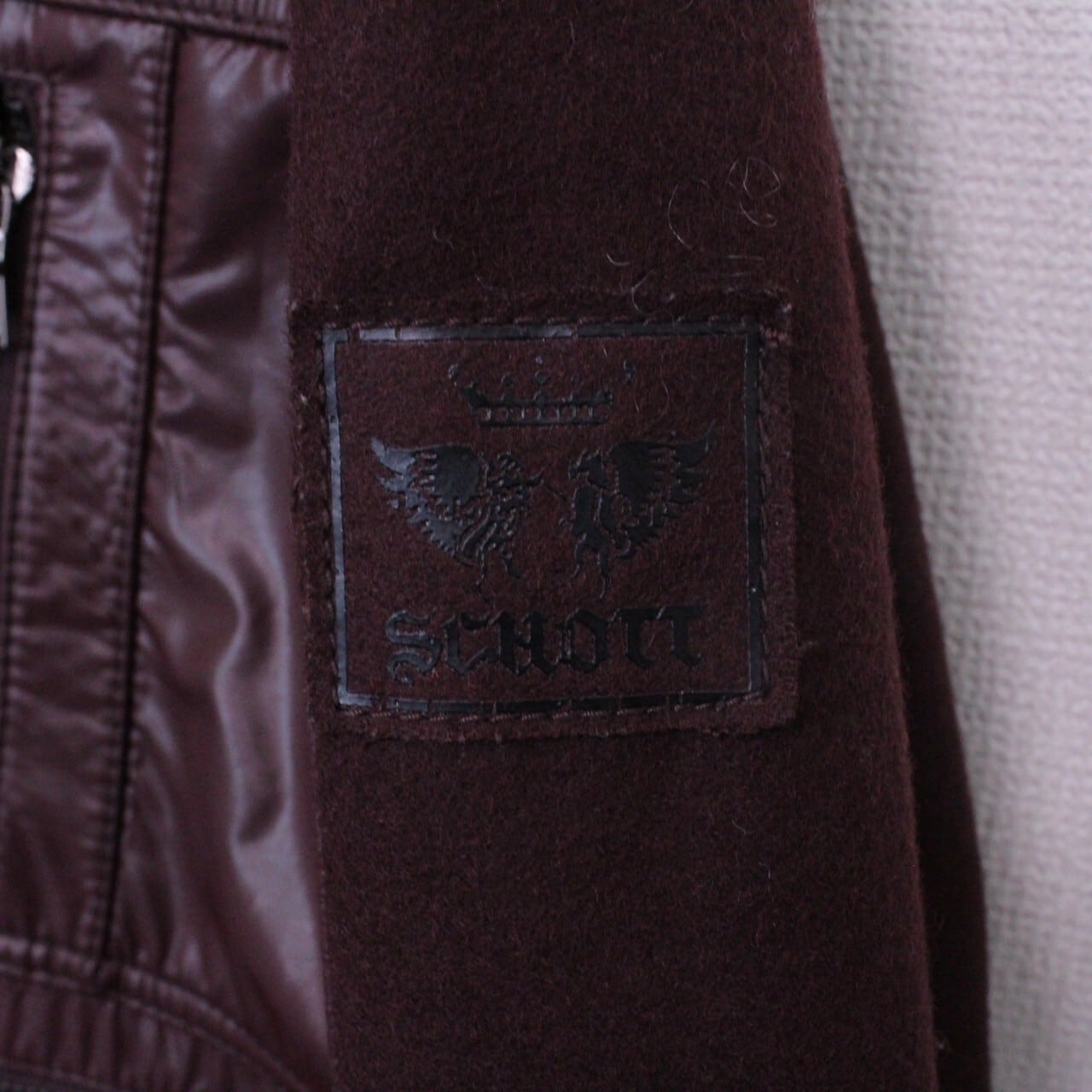 上品さと色気を併せ持ったボルドーカラーのメルトン地をボディに使用。ツルッと滑らかな光沢を帯びた生地で切り替えを施し、重厚感のあるジップデザインを施したスペシャルなジャケット。