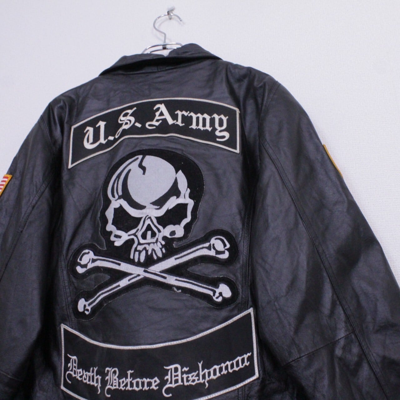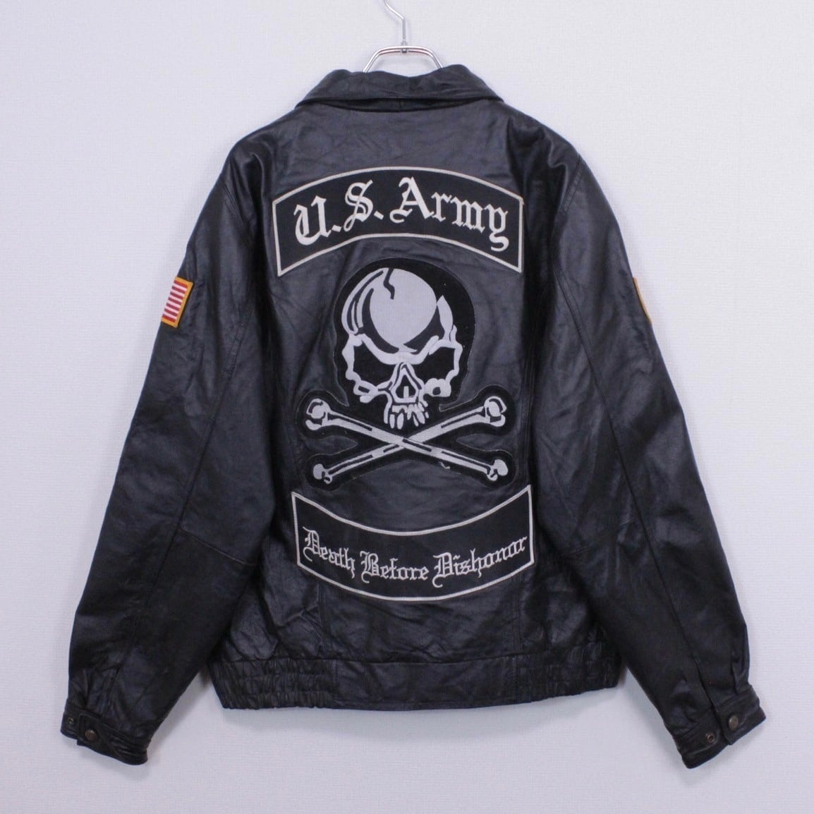 アメリカの国旗である星条旗に、U.S. ARMYのエンブレムをアームに配置。背面にはスカルに加え、"Death Before Dishonor"のパッチをドカンと配した、思想的かつ超イケてるデザインに仕上げられています。