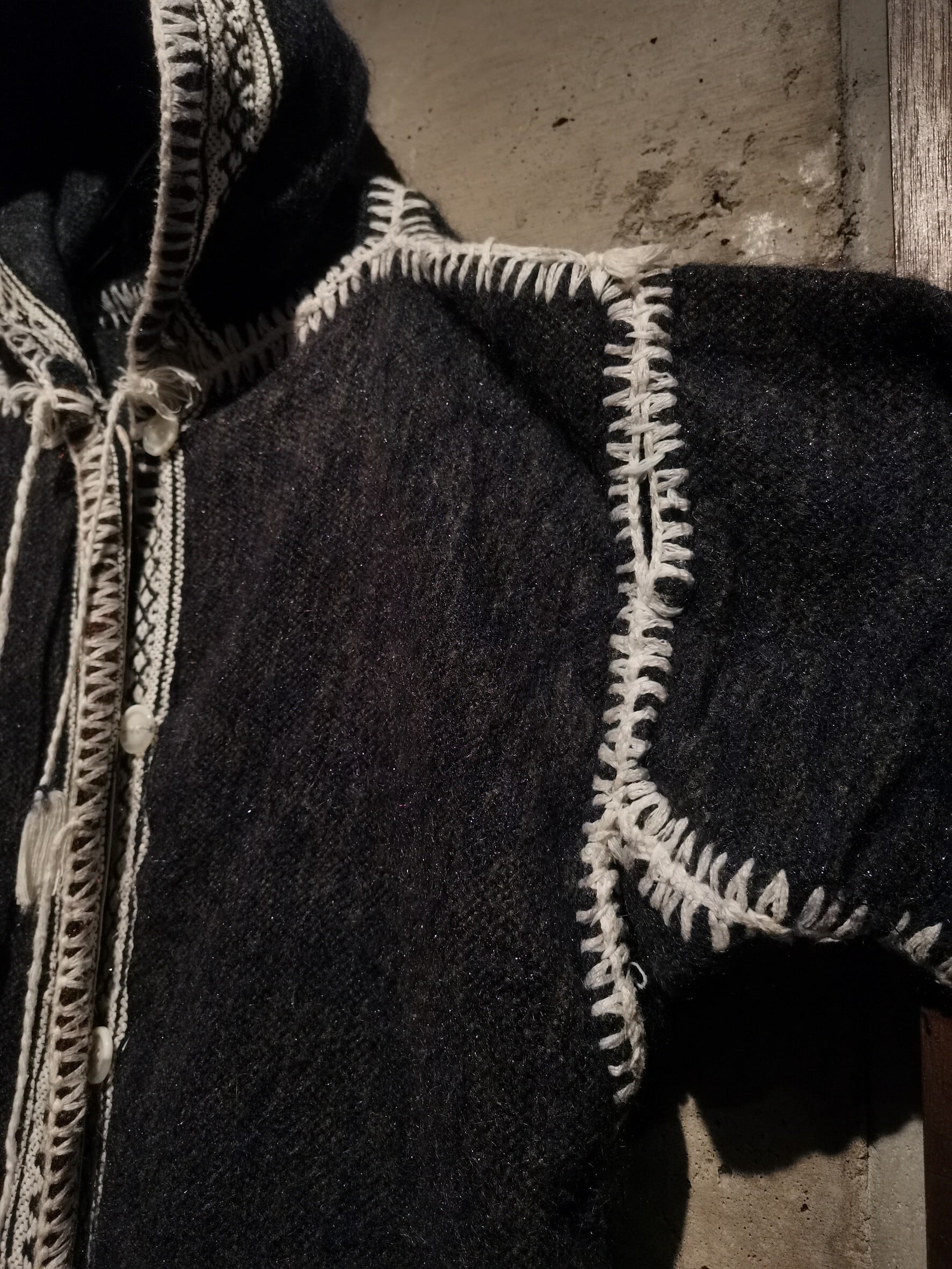 多種なる糸から構成された深々としたダークグレーカラーの、”もこっ“とした柔らかくもコシあるニット素材をボディに使用したニットフーディー。