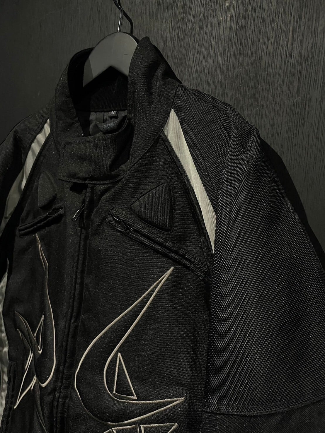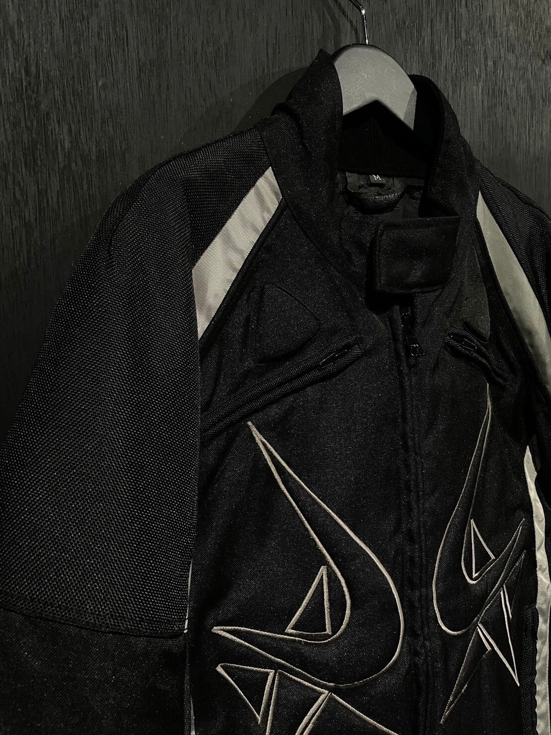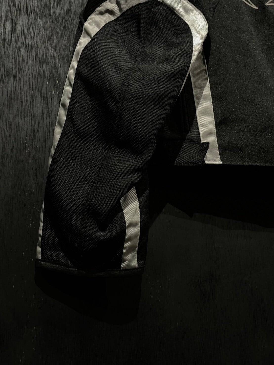ガシッとハリがあり目の詰まったナイロンボディをベースとし、アームやボディにはリフレクターで切り替えを施したレーシングジャケット。