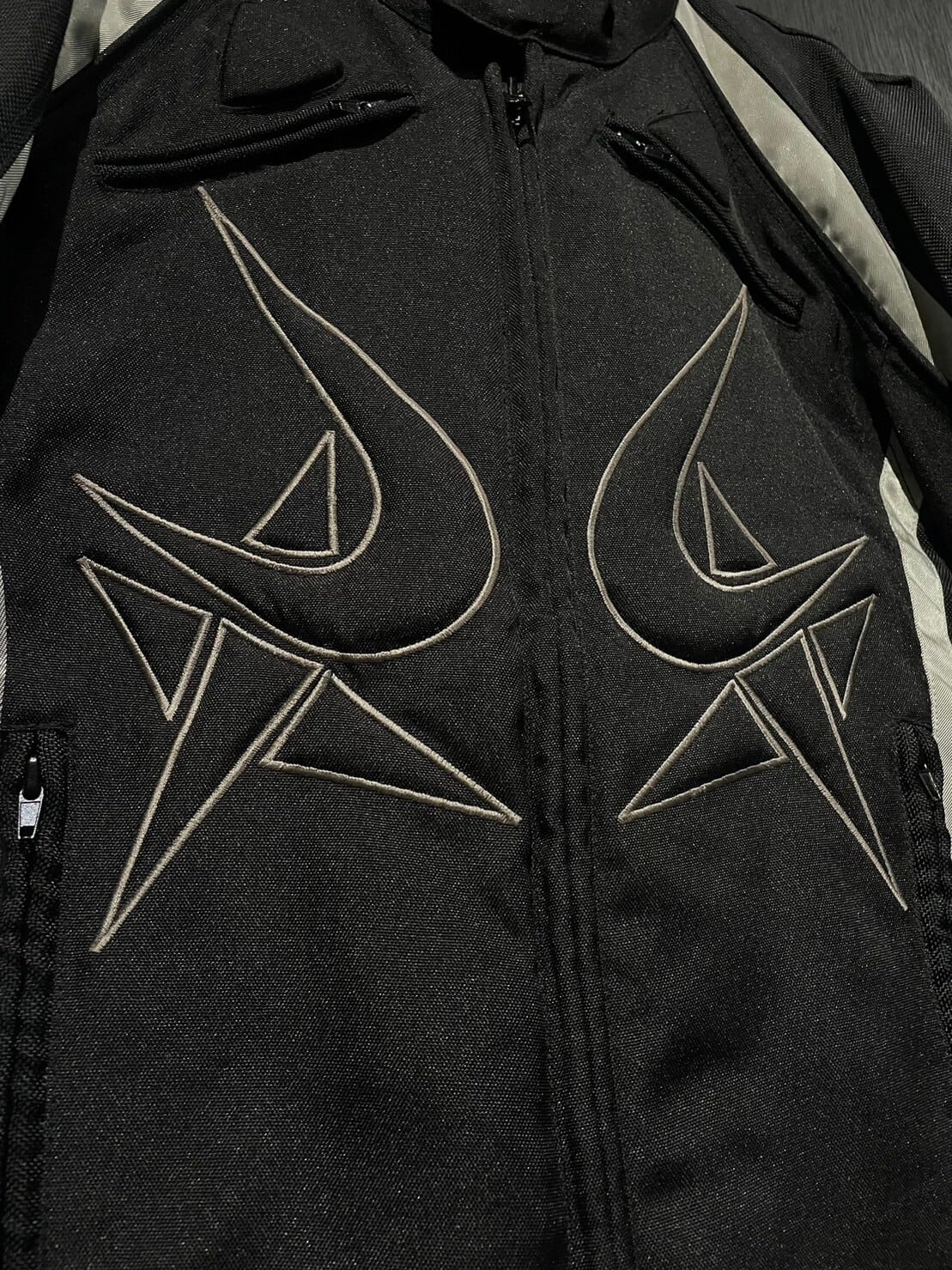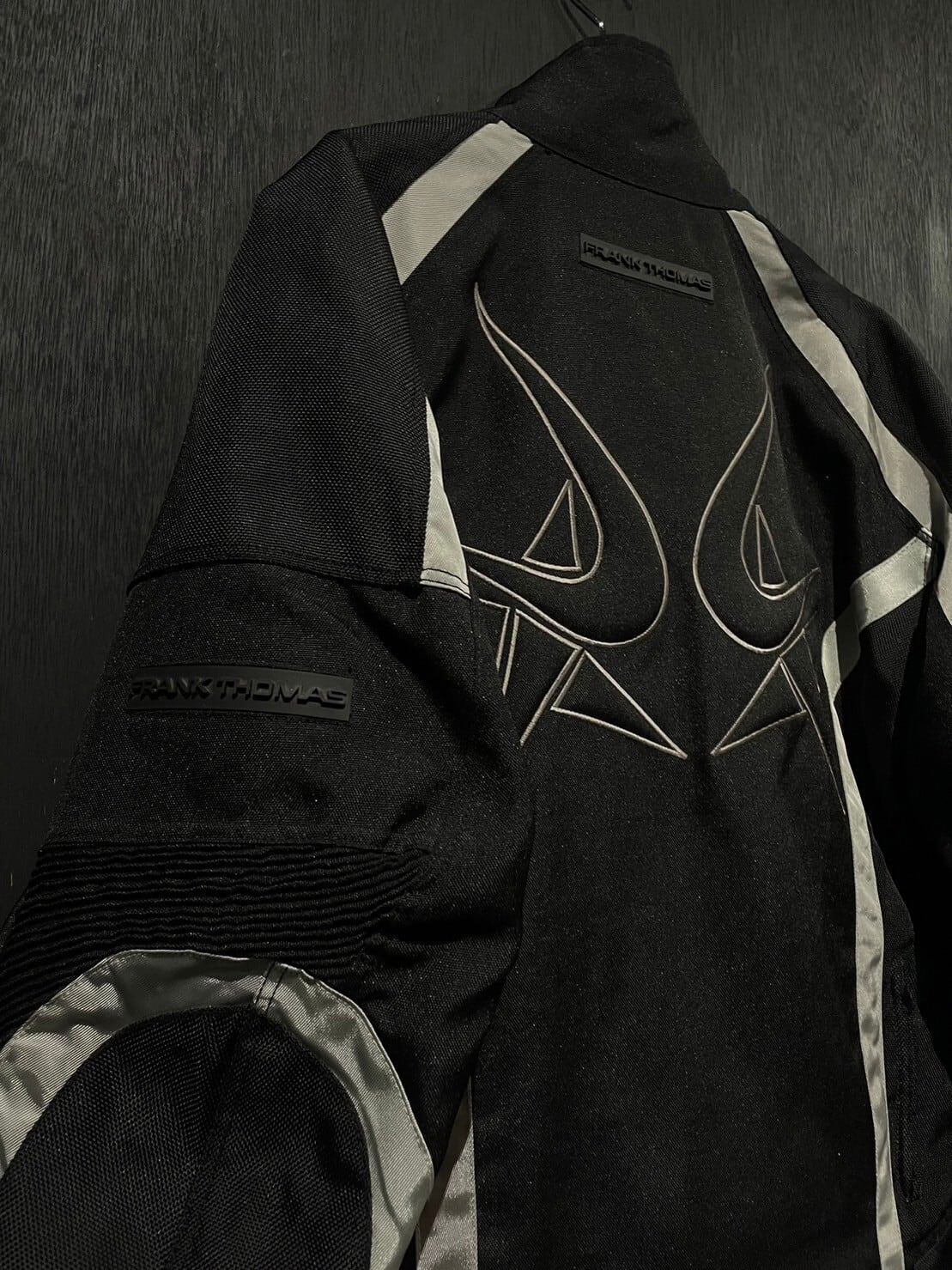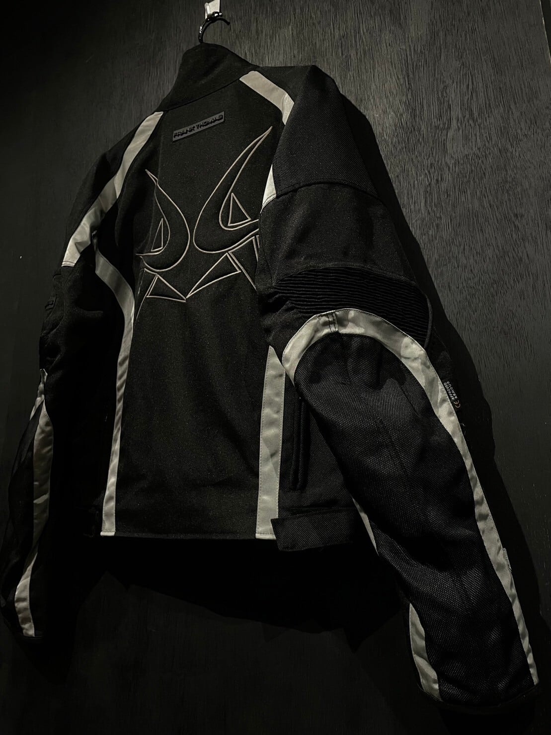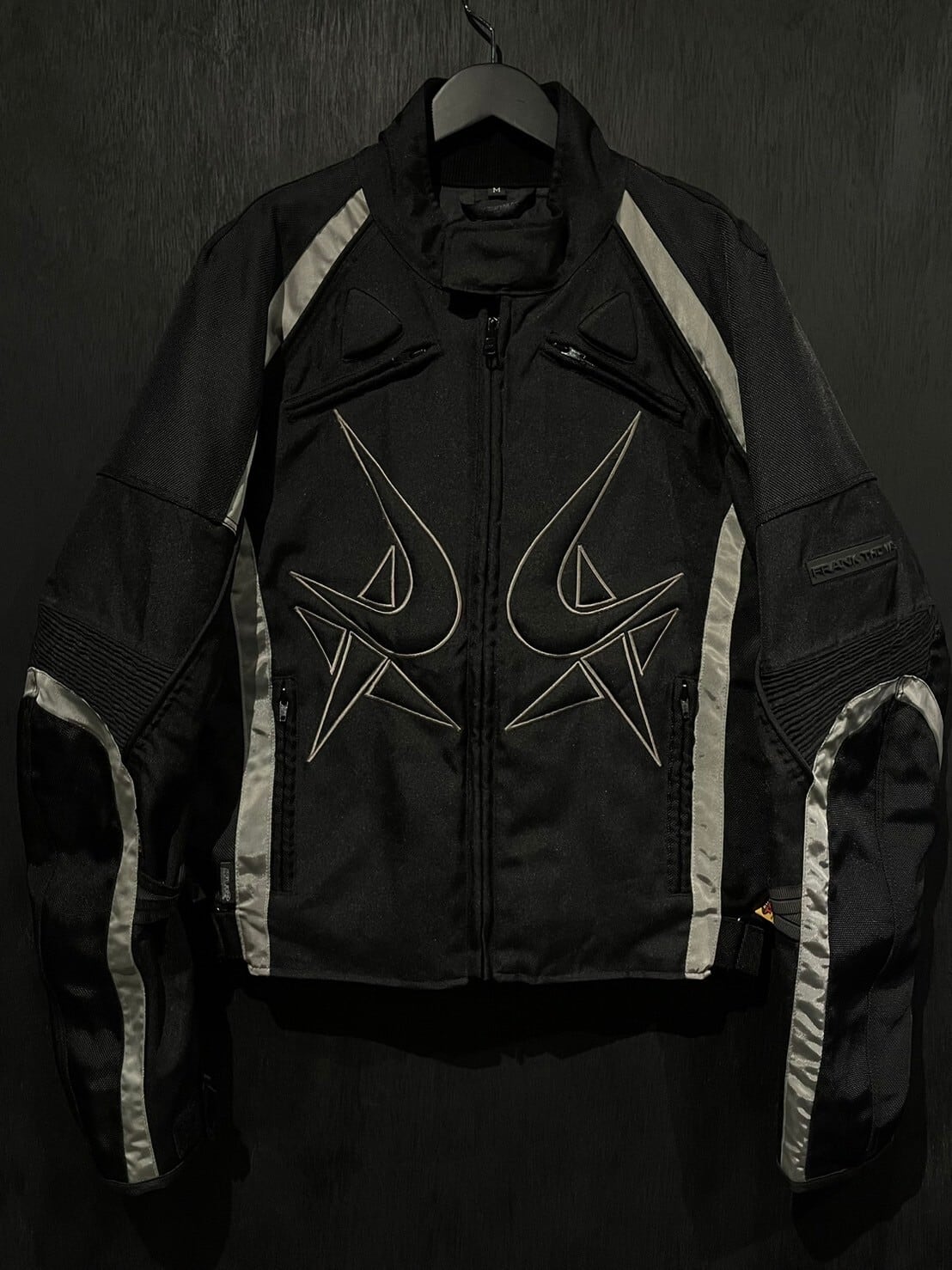 ガシッとハリがあり目の詰まったナイロンボディをベースとし、アームやボディにはリフレクターで切り替えを施したレーシングジャケット。