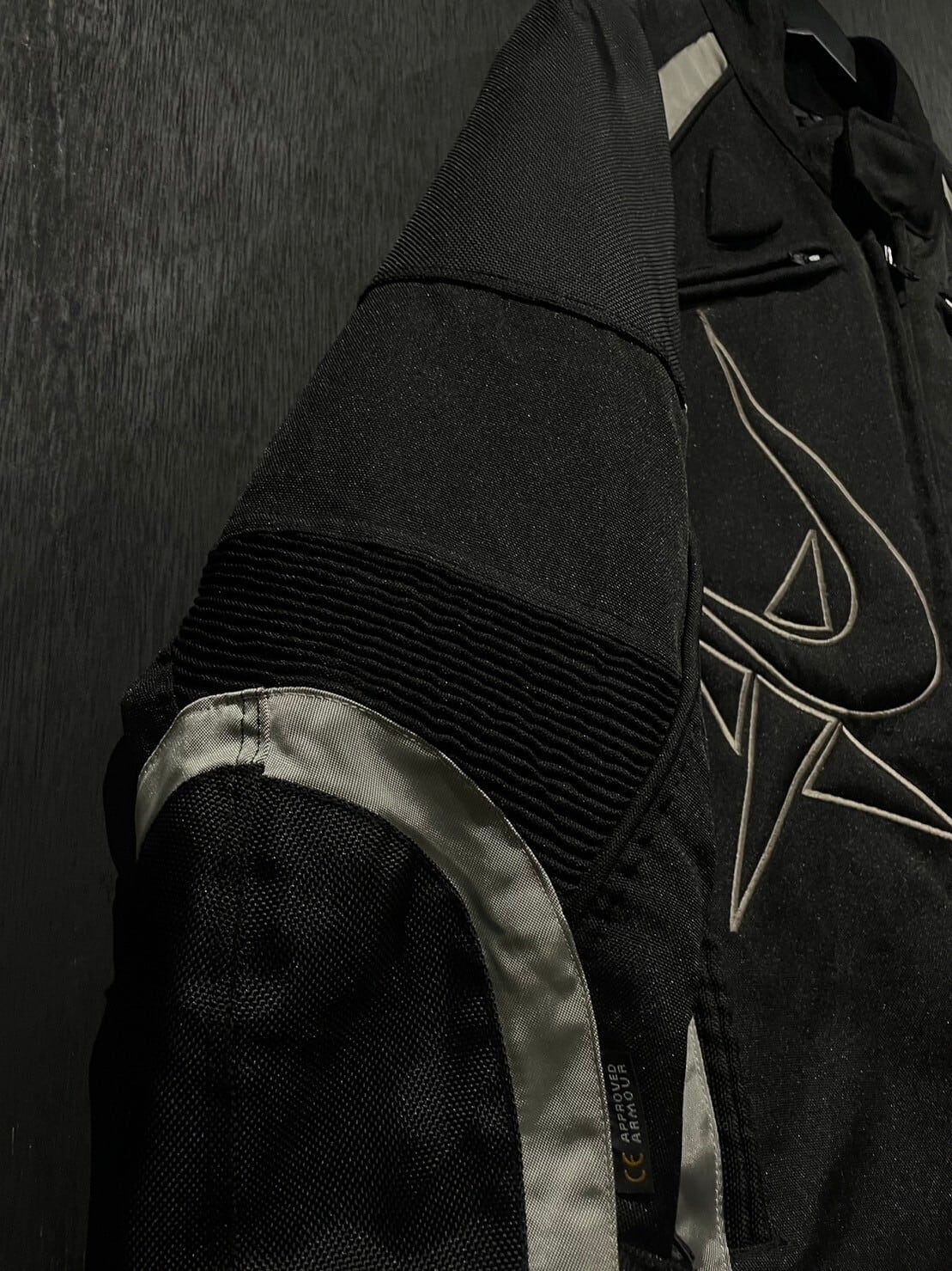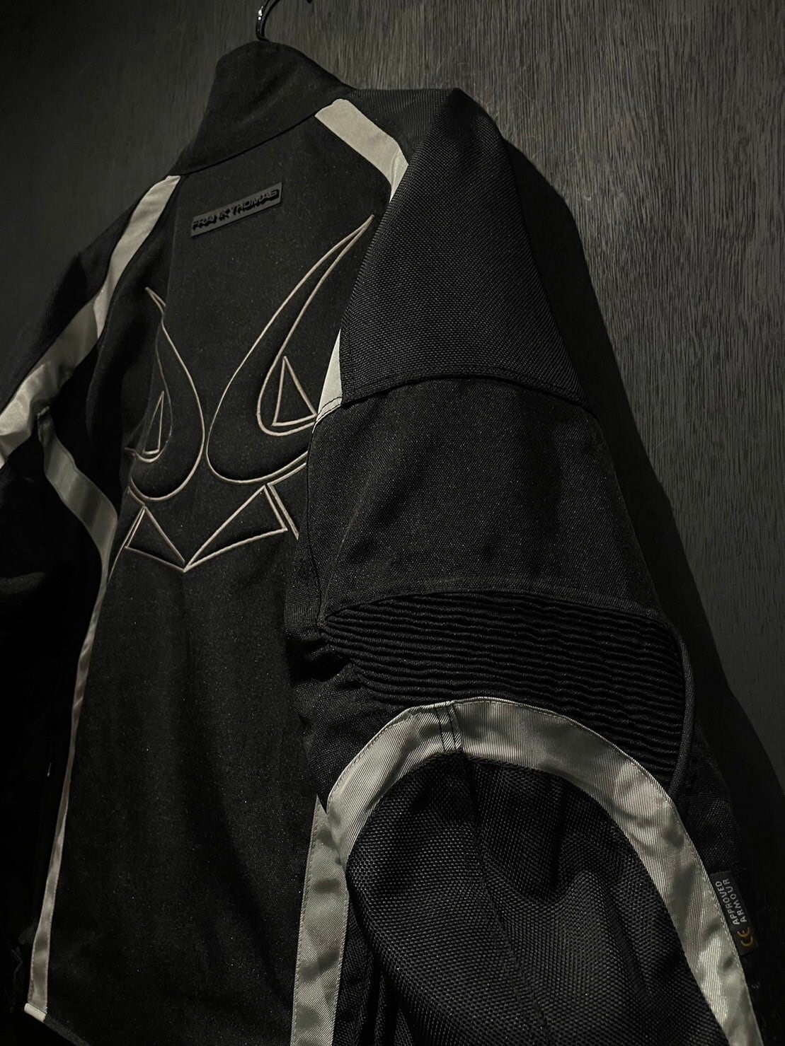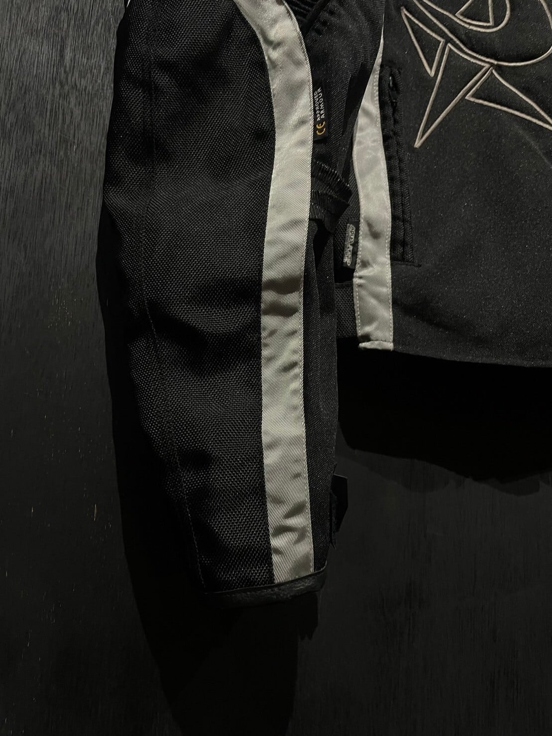 フロント、バックにはポケットが取り付けられレーシングジャケットらしい機能性もしっかりと完備。更にアームはダブルで肘周りの強化と共にデザインのアクセントに。
