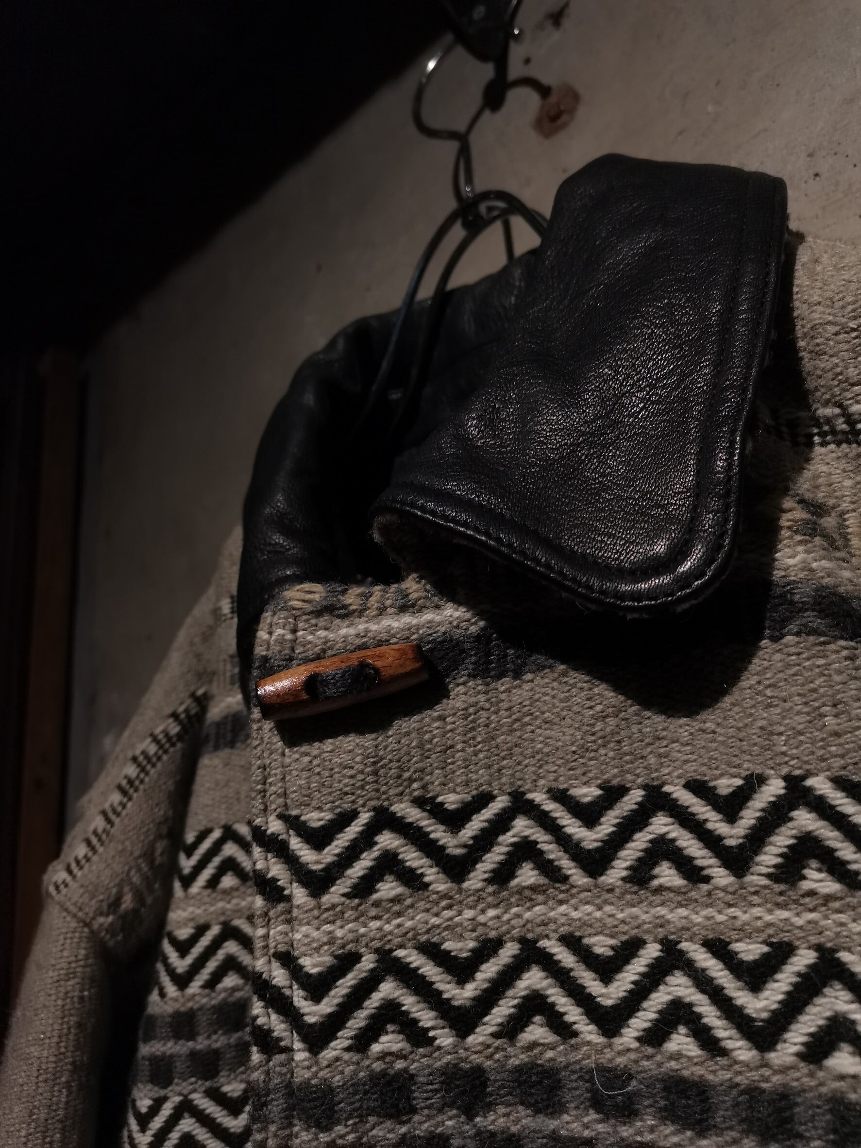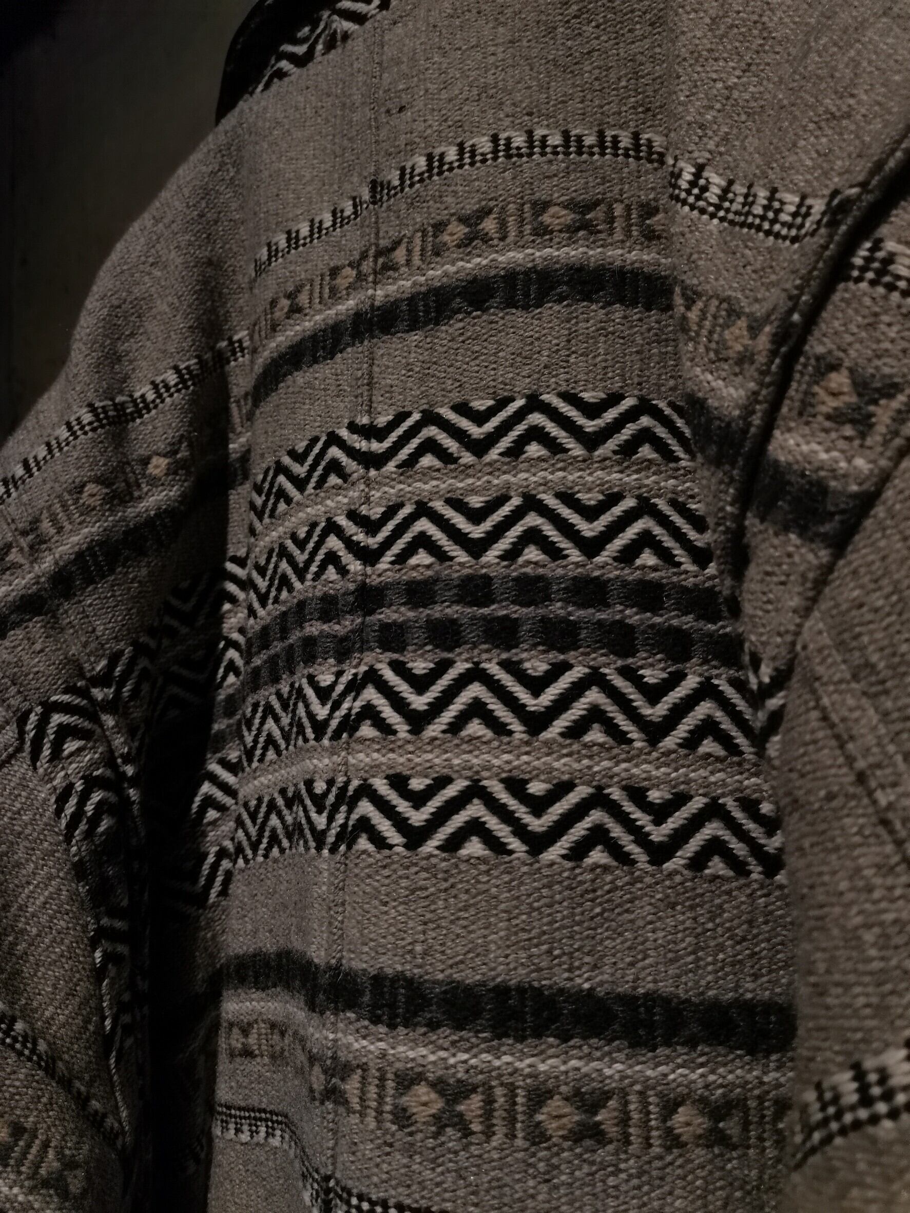 タフかつコシのある織りでネイティブ柄を表現したジャケット。このアイテムの雰囲気ながらイタリーメイドの1着で、ヴィンテージの面白味を感じることができる逸品です。