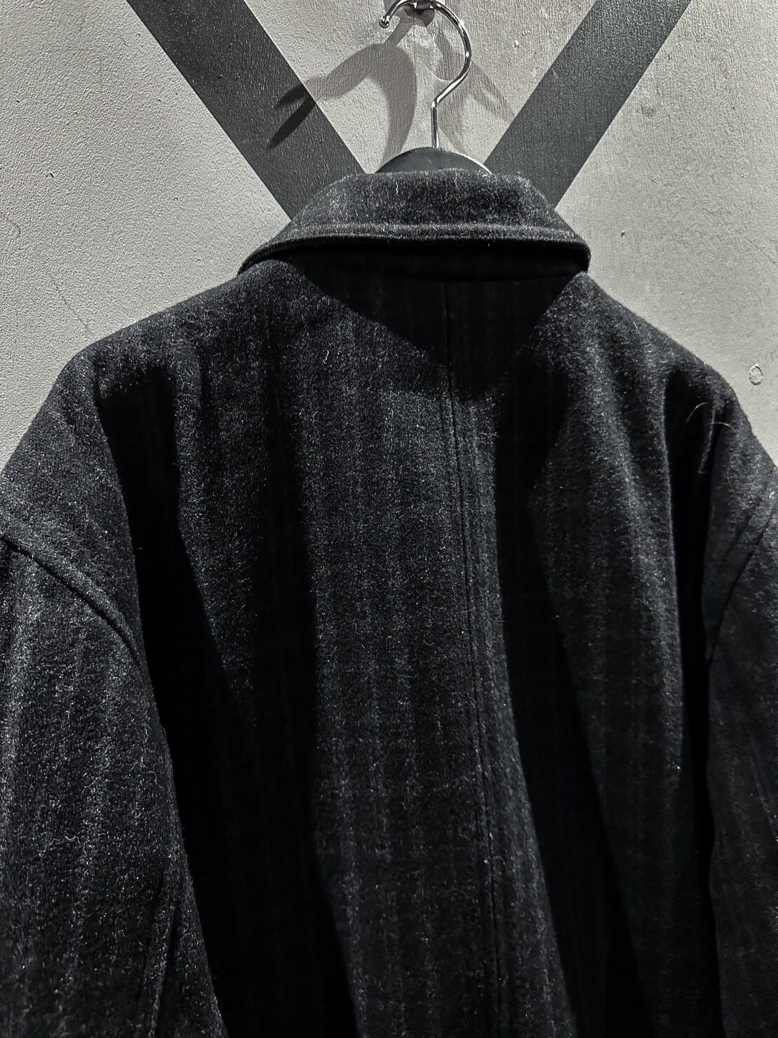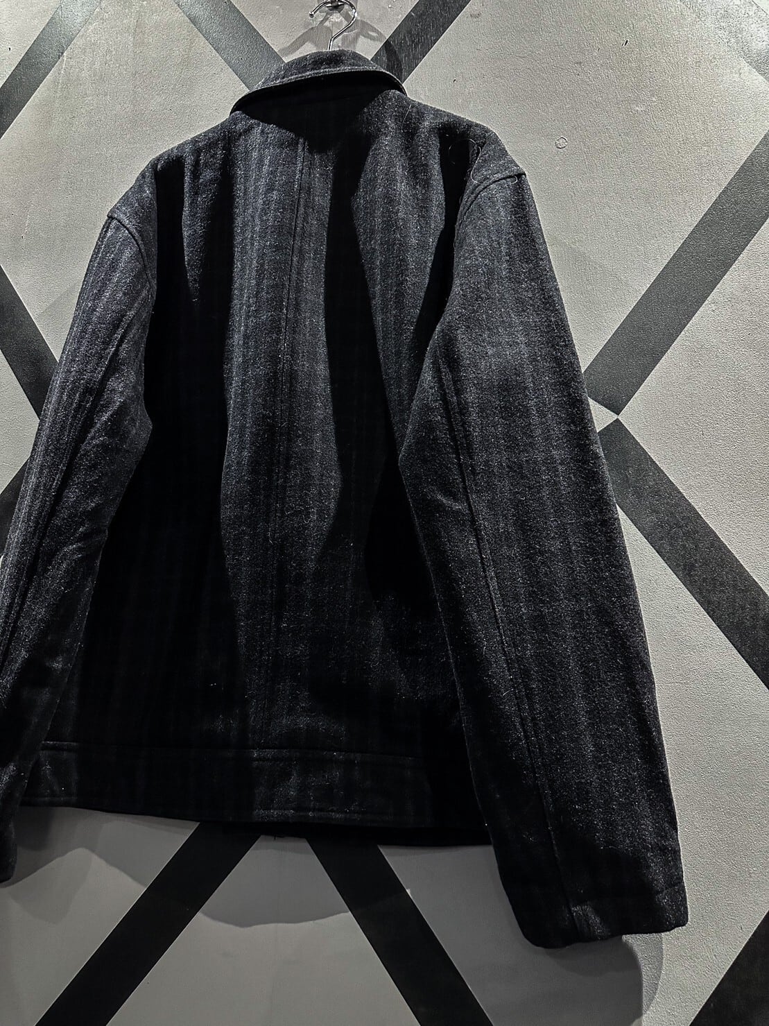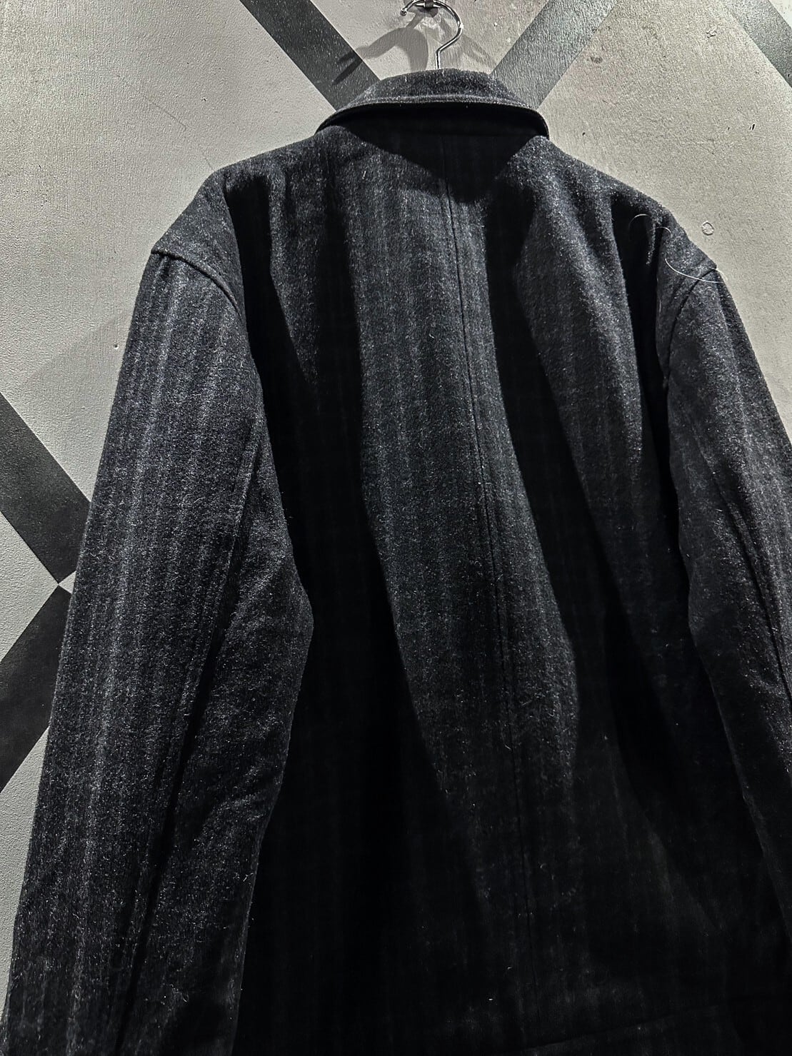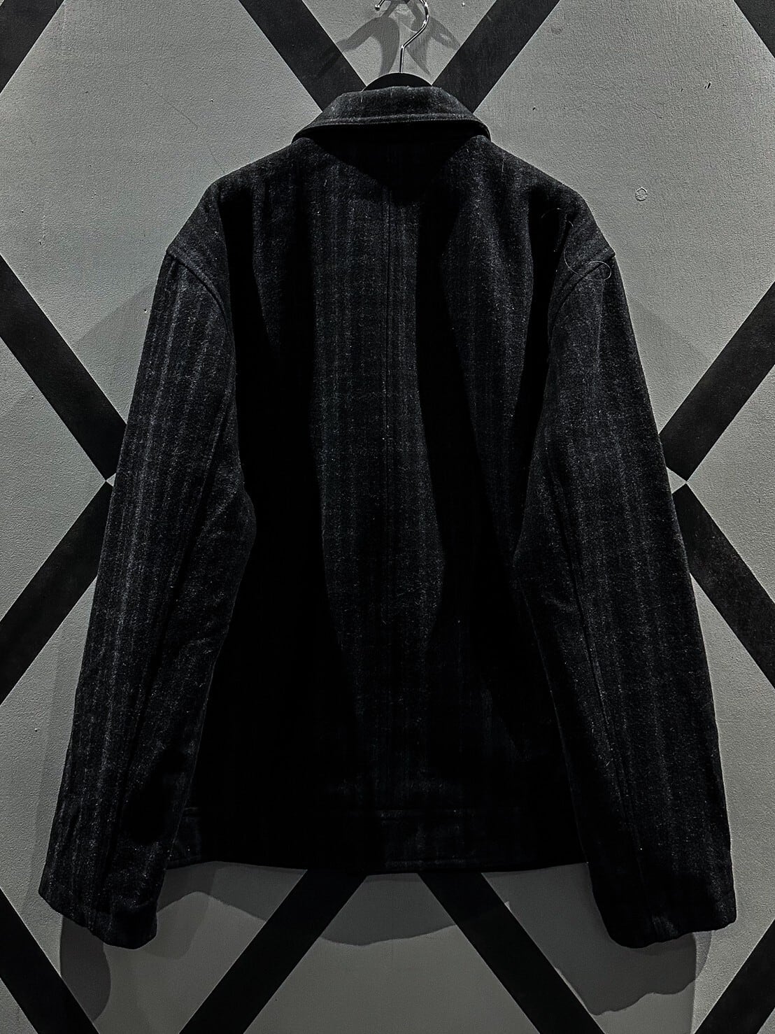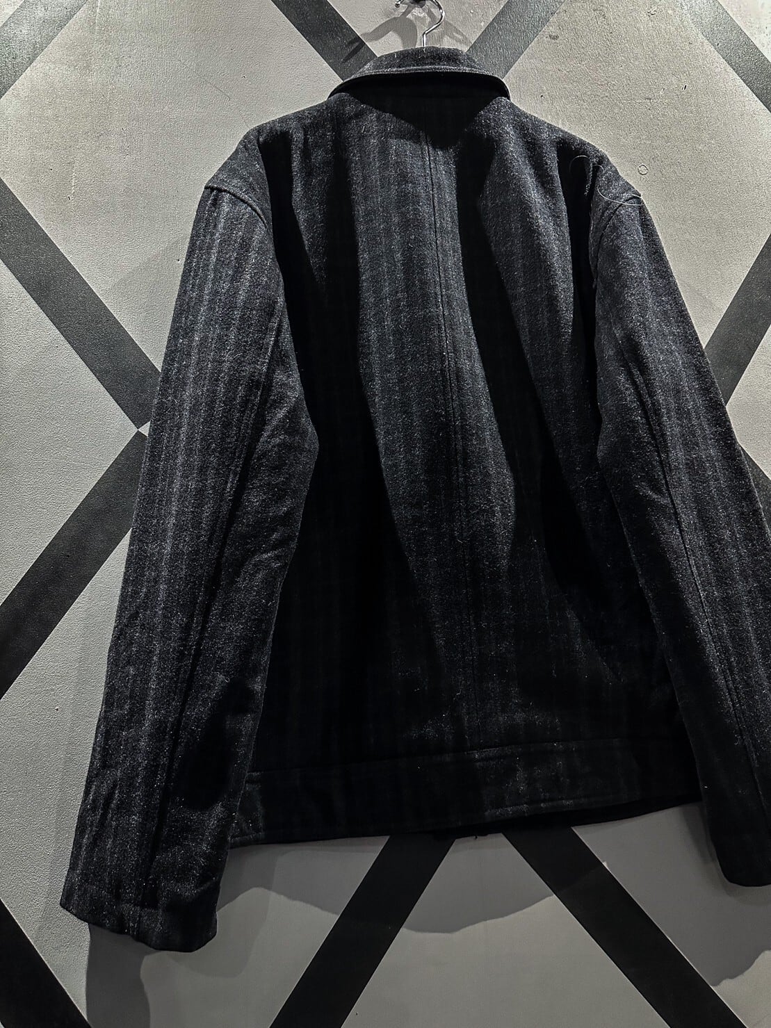 ギュッと目の詰まった上質なブラックのウール素材を用いたジップアップジャケット。柔らかな素材が体に馴染み着心地抜群です。