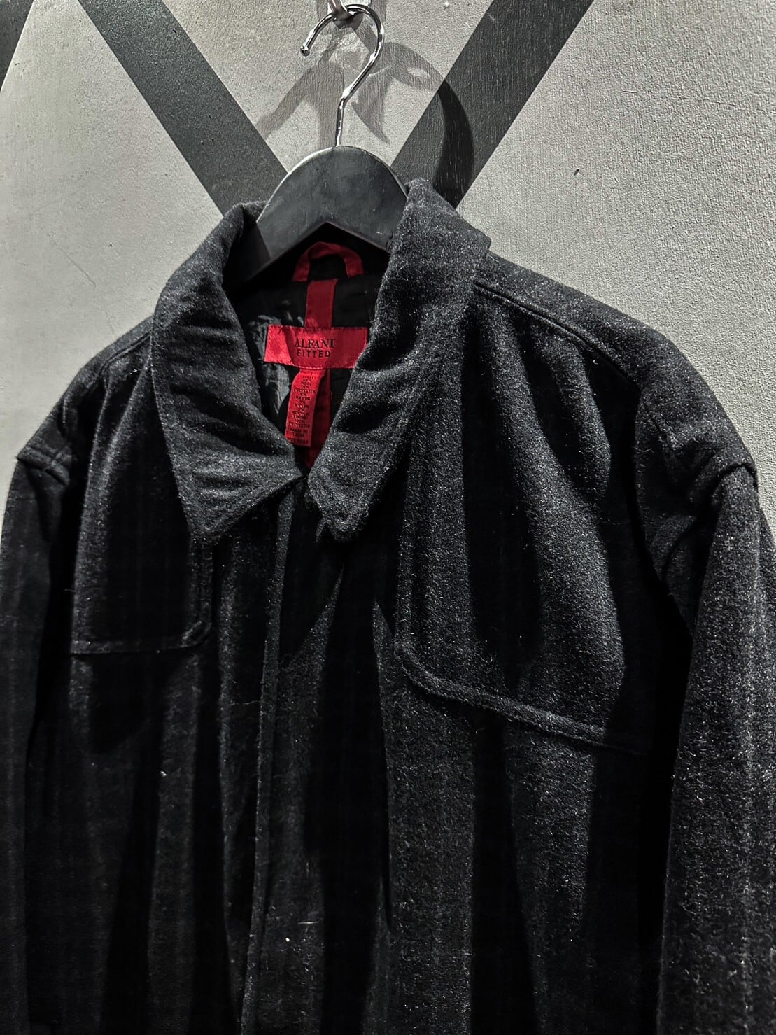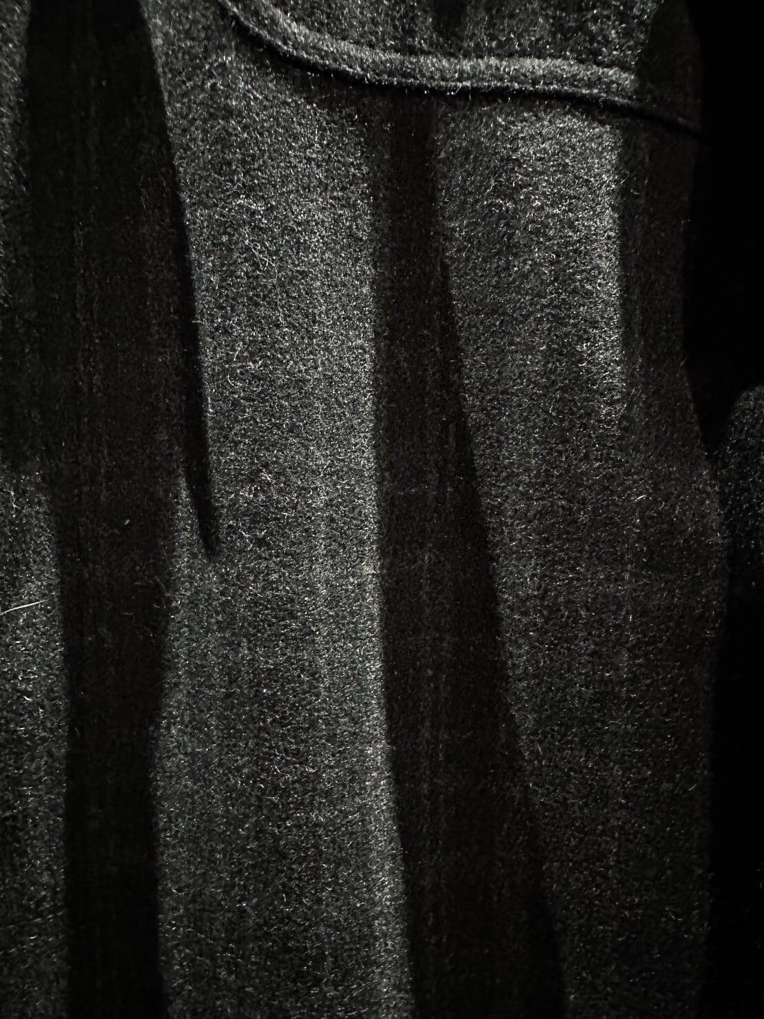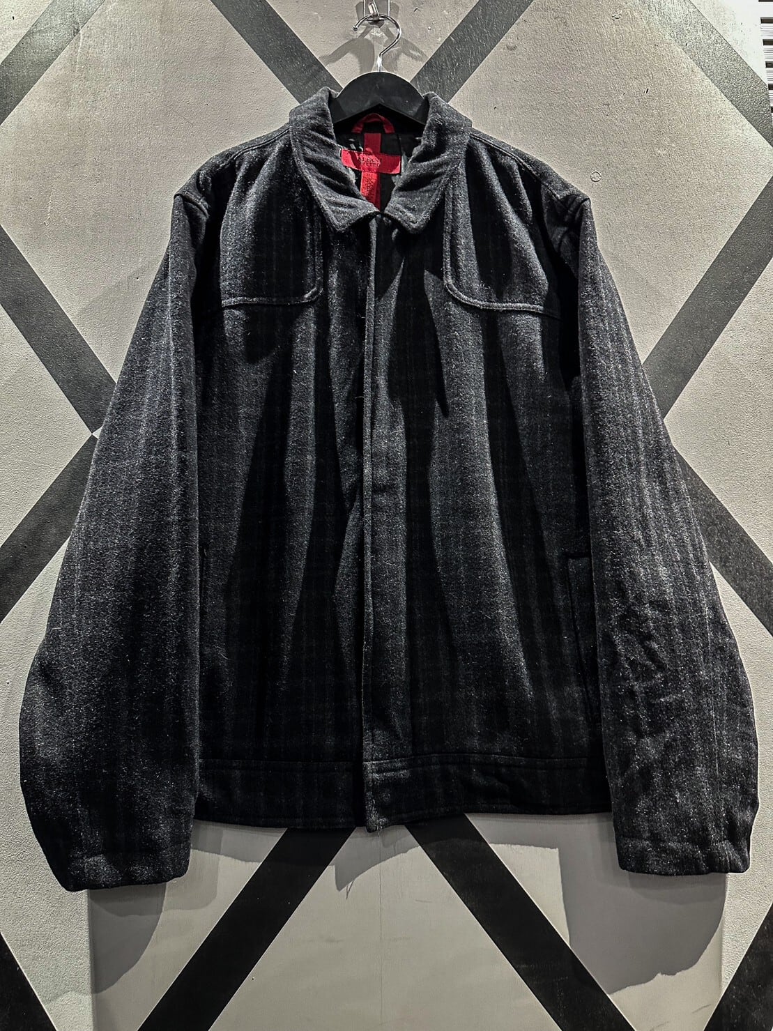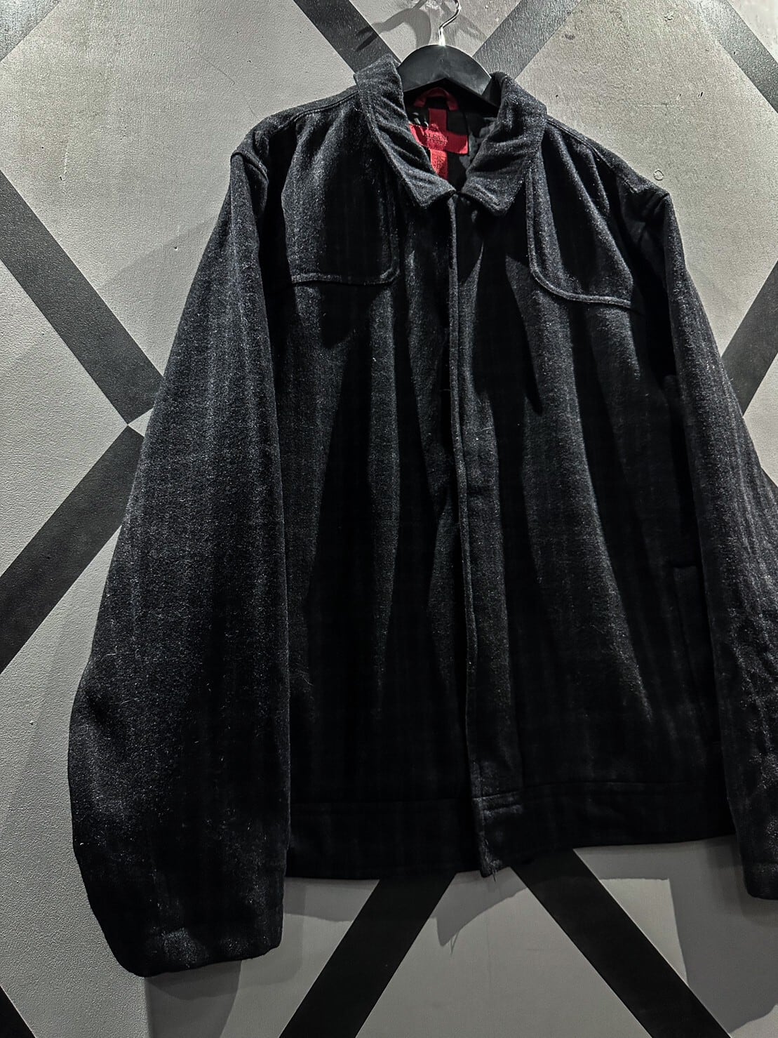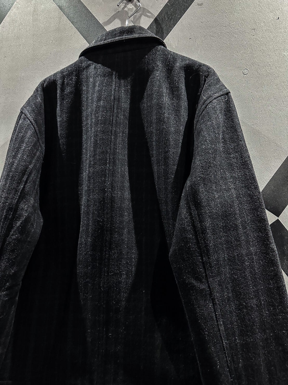 ギュッと目の詰まった上質なブラックのウール素材を用いたジップアップジャケット。柔らかな素材が体に馴染み着心地抜群です。