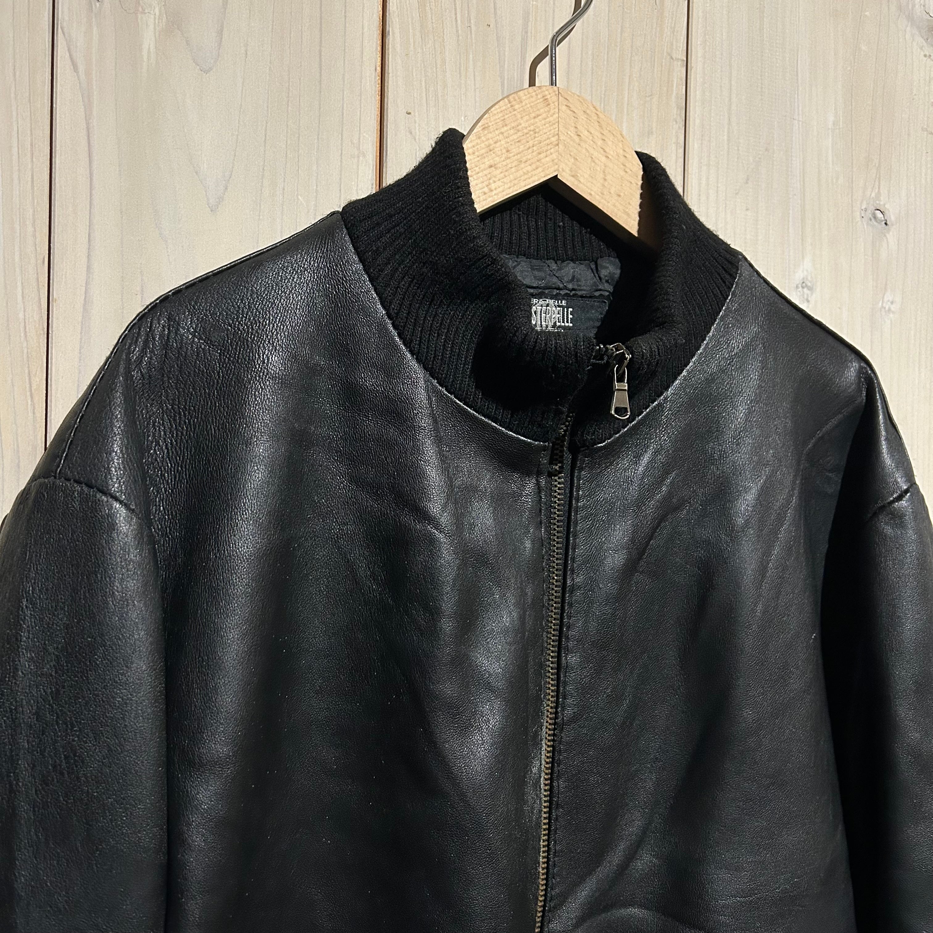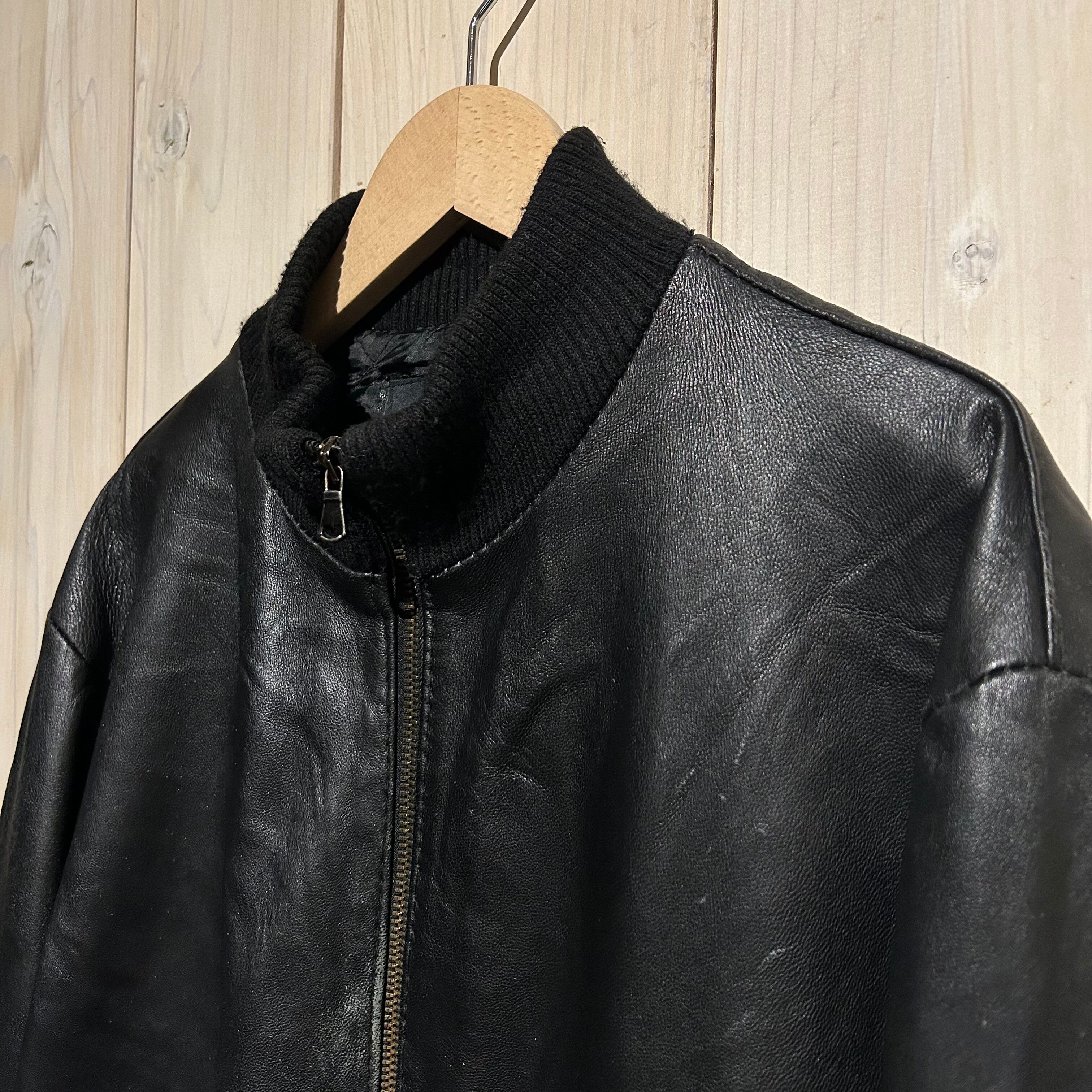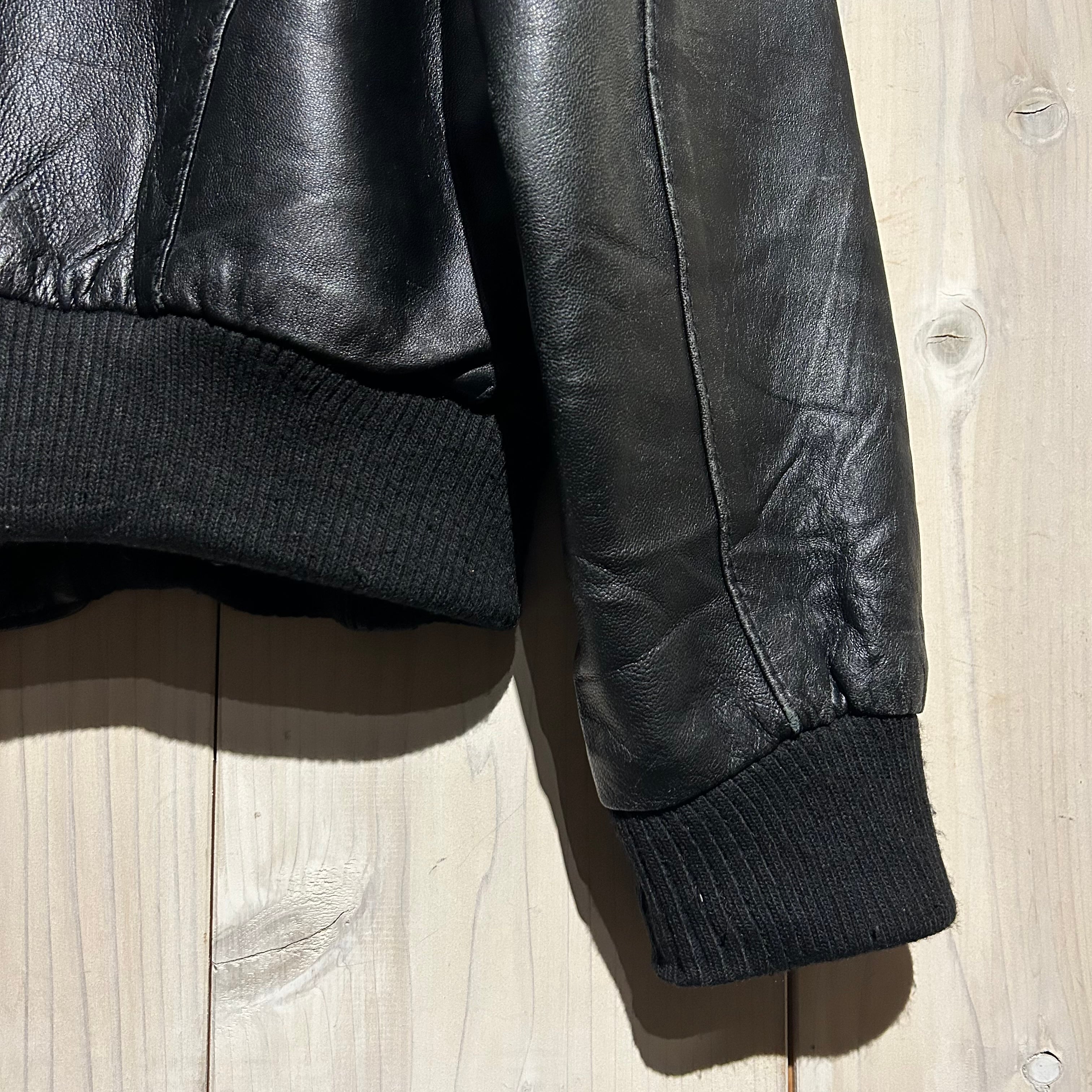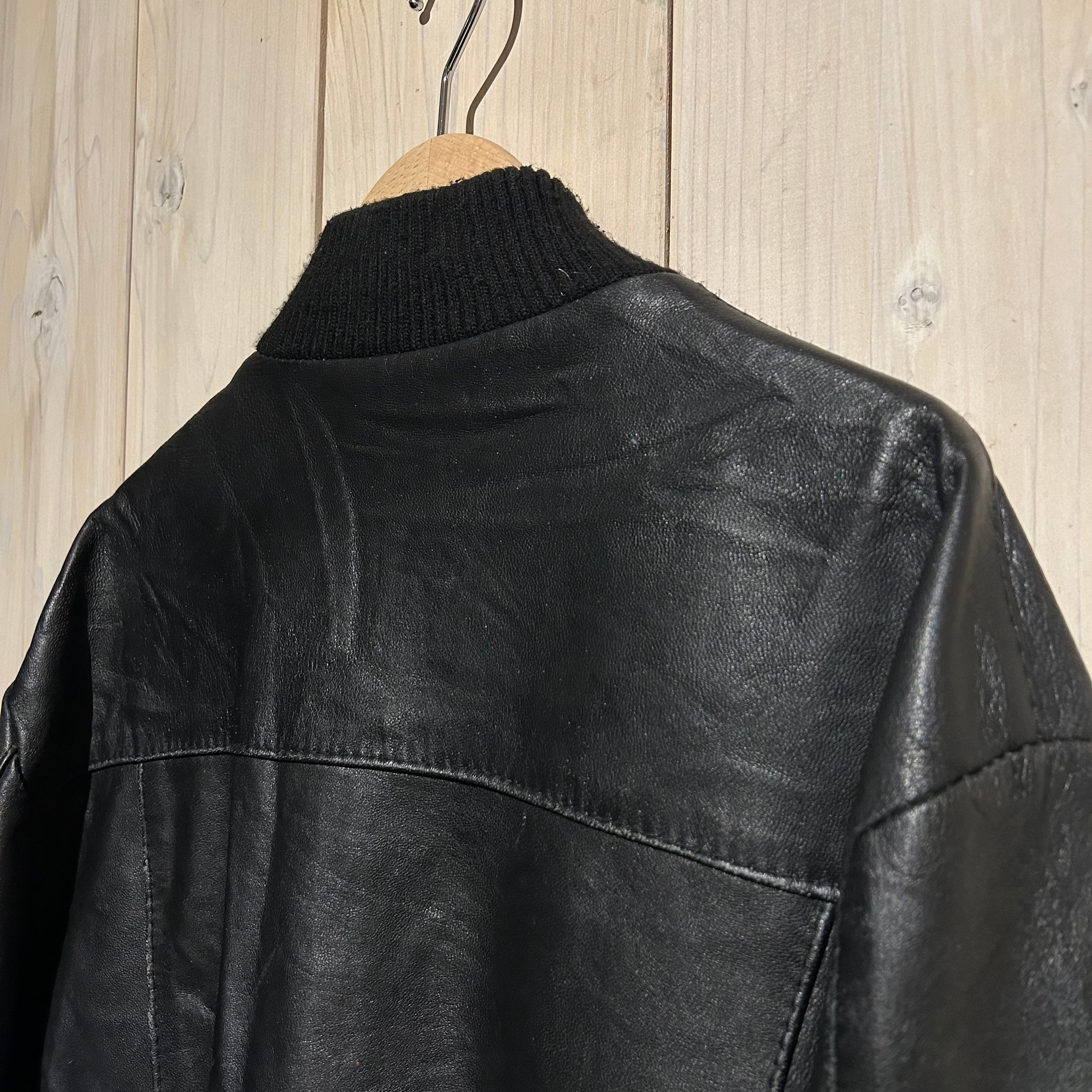 ハリ、コシを兼ね備えた上質なブラックレザーを用いた、ハイネックのヴィンテージレザージャケット。