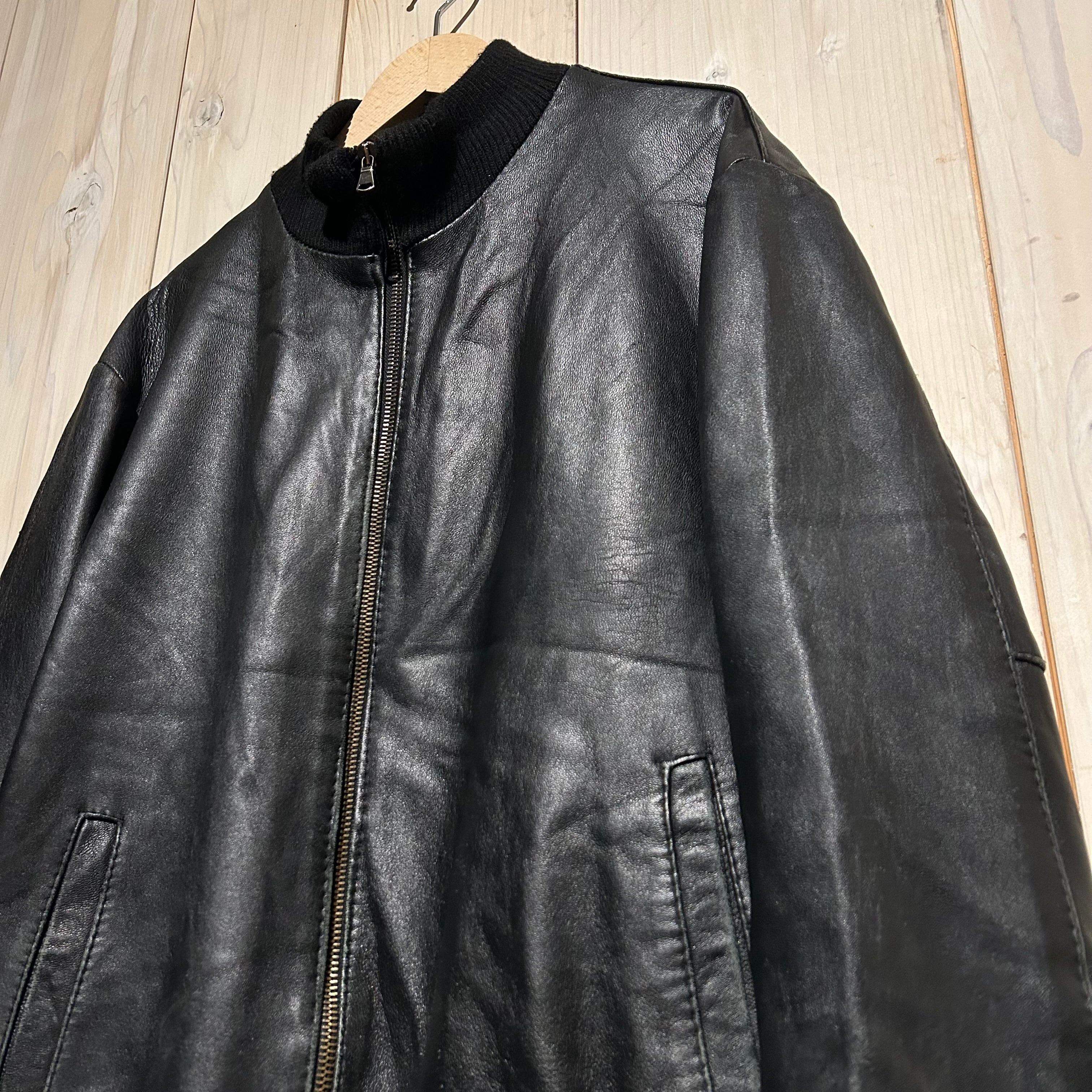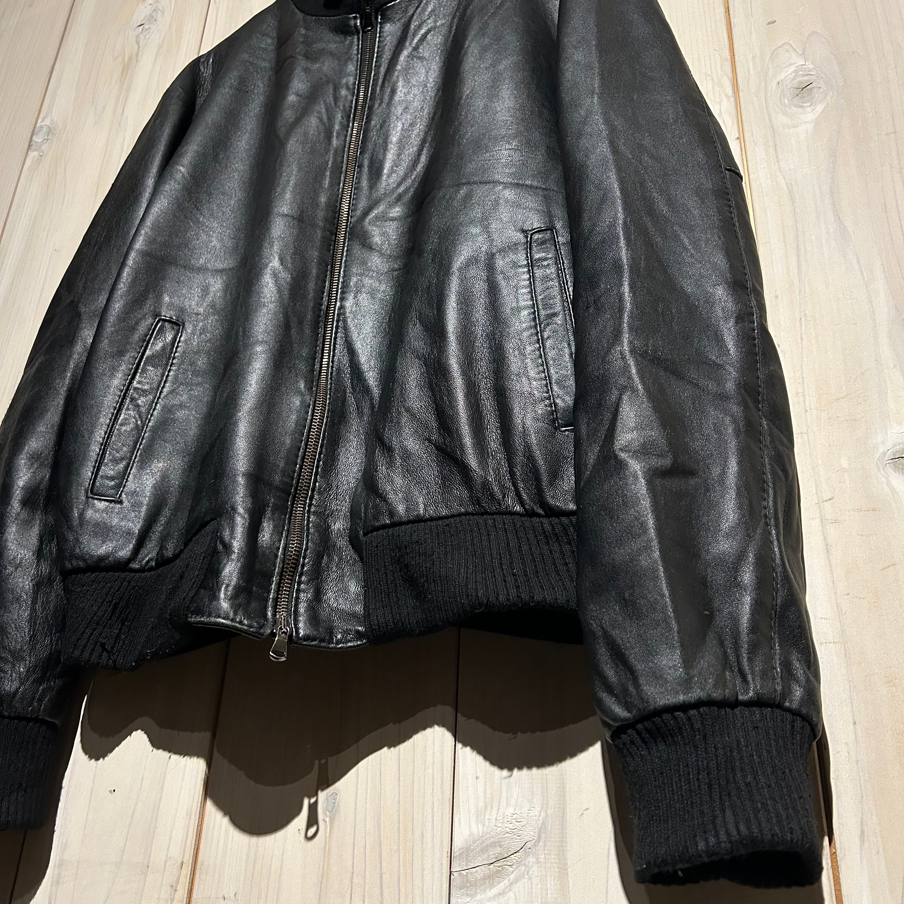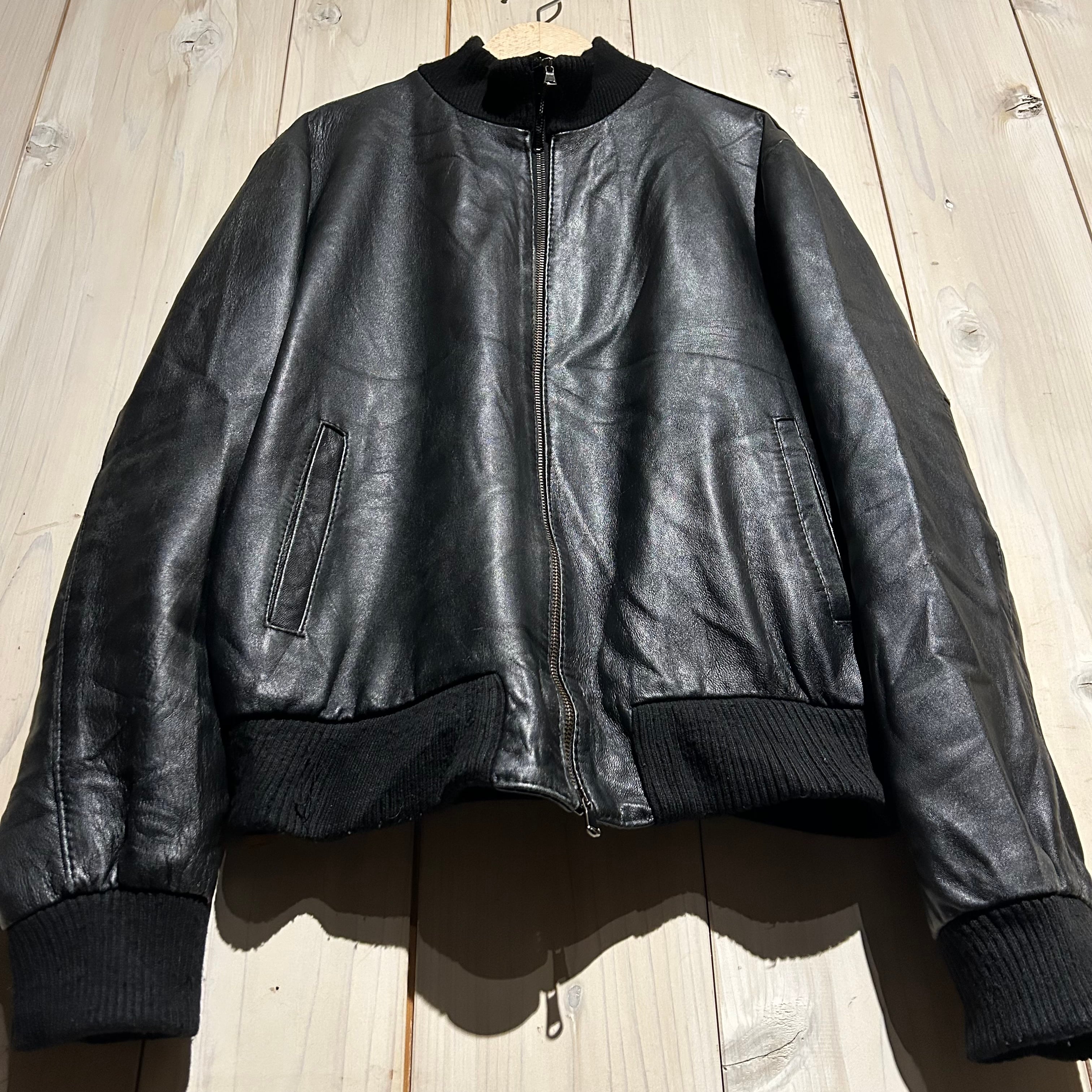 ハリ、コシを兼ね備えた上質なブラックレザーを用いた、ハイネックのヴィンテージレザージャケット。