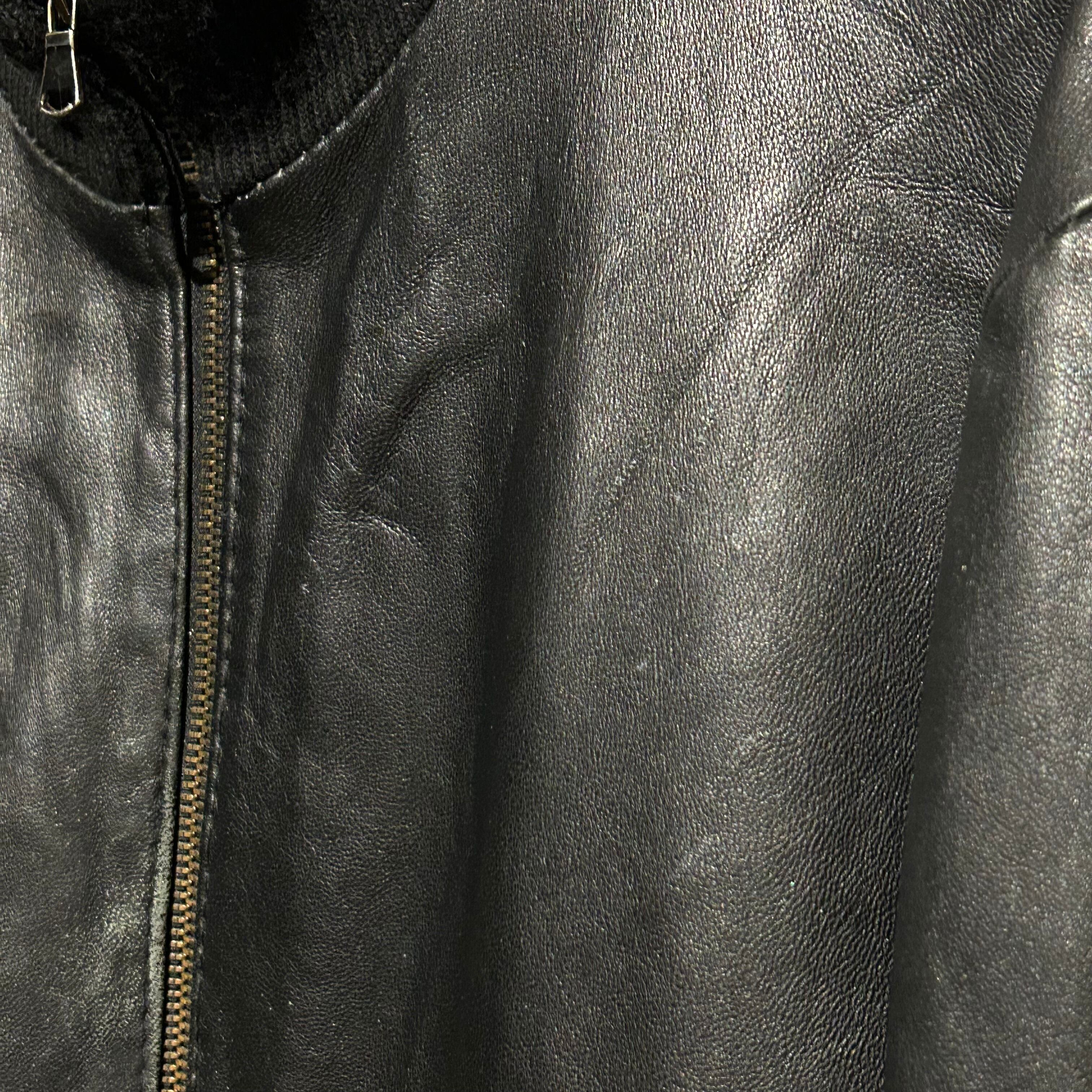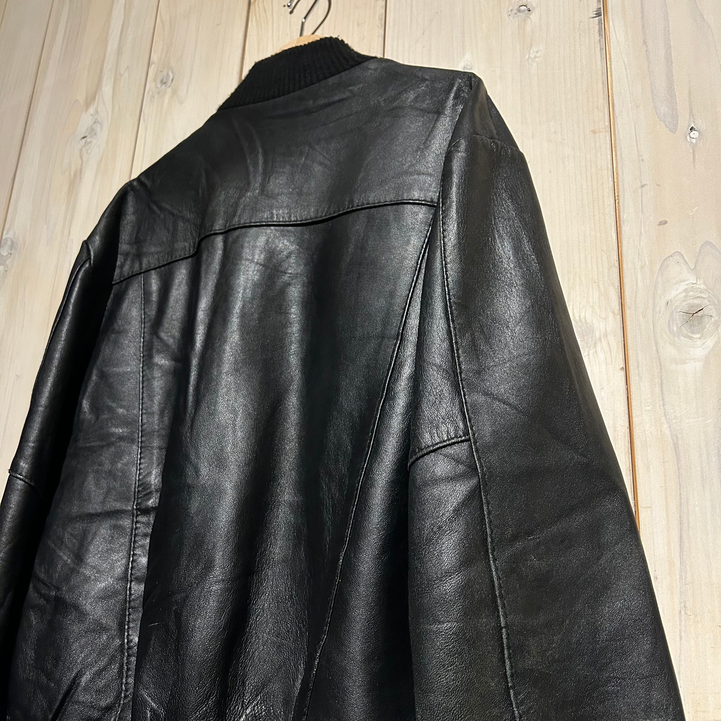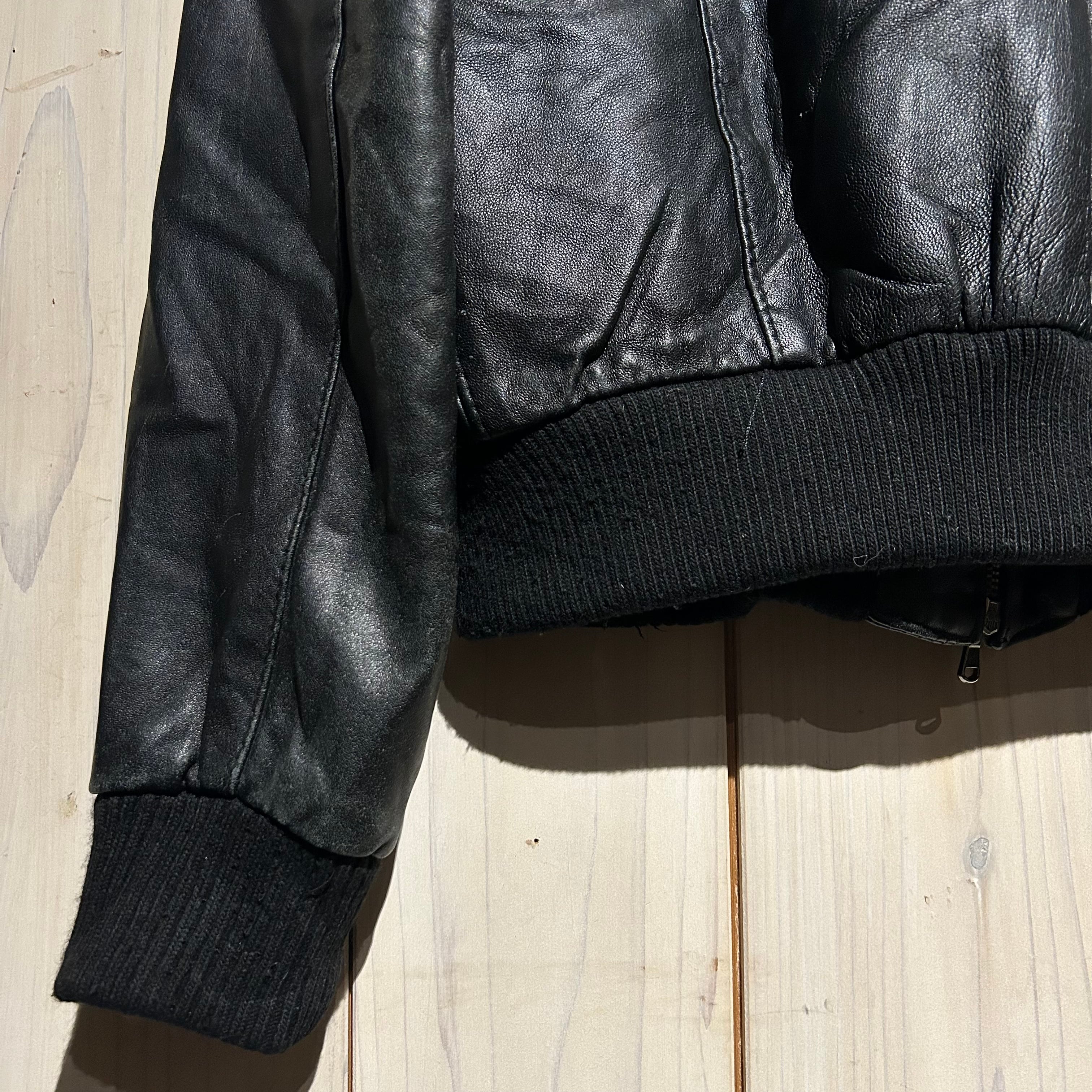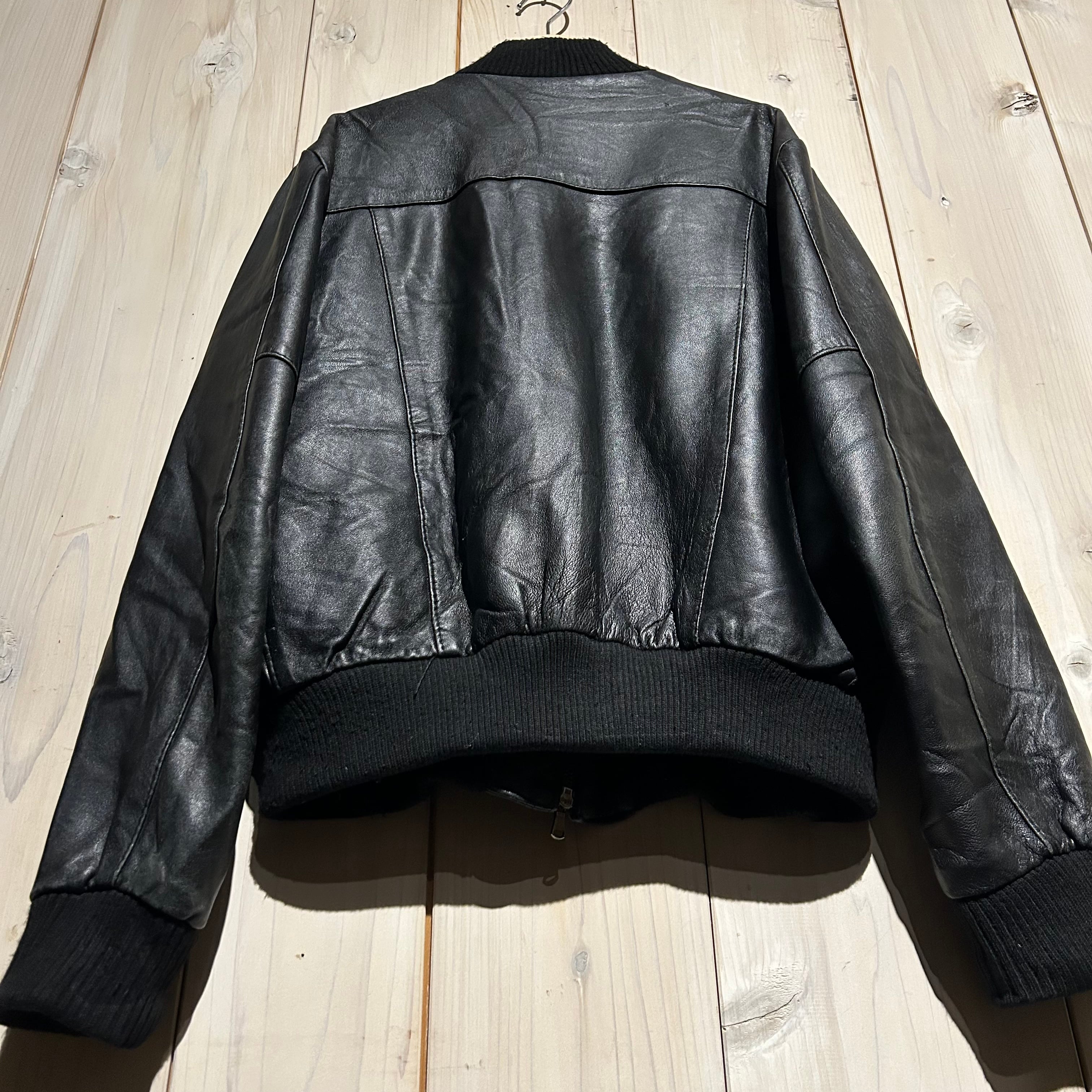 ハリ、コシを兼ね備えた上質なブラックレザーを用いた、ハイネックのヴィンテージレザージャケット。