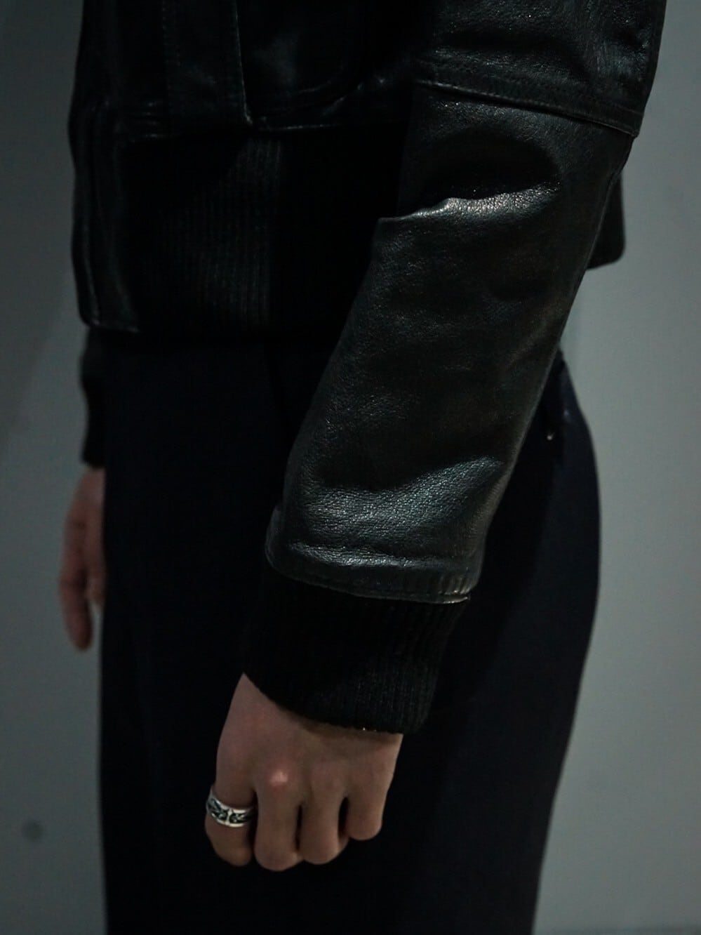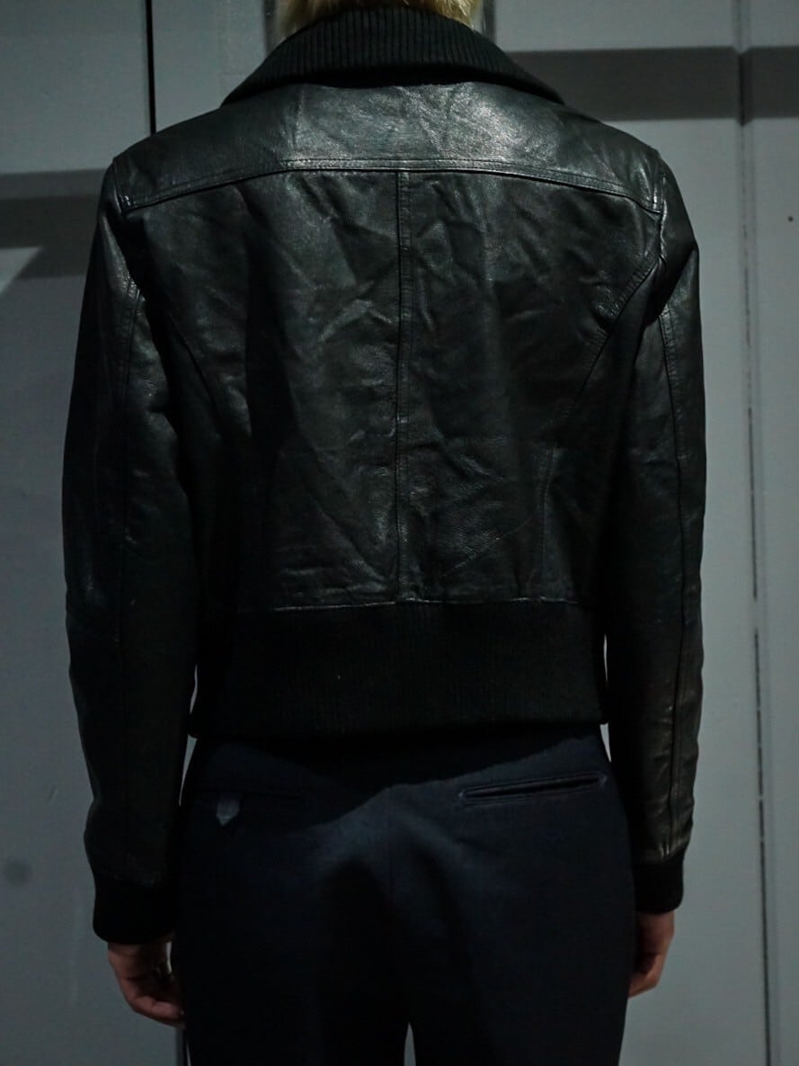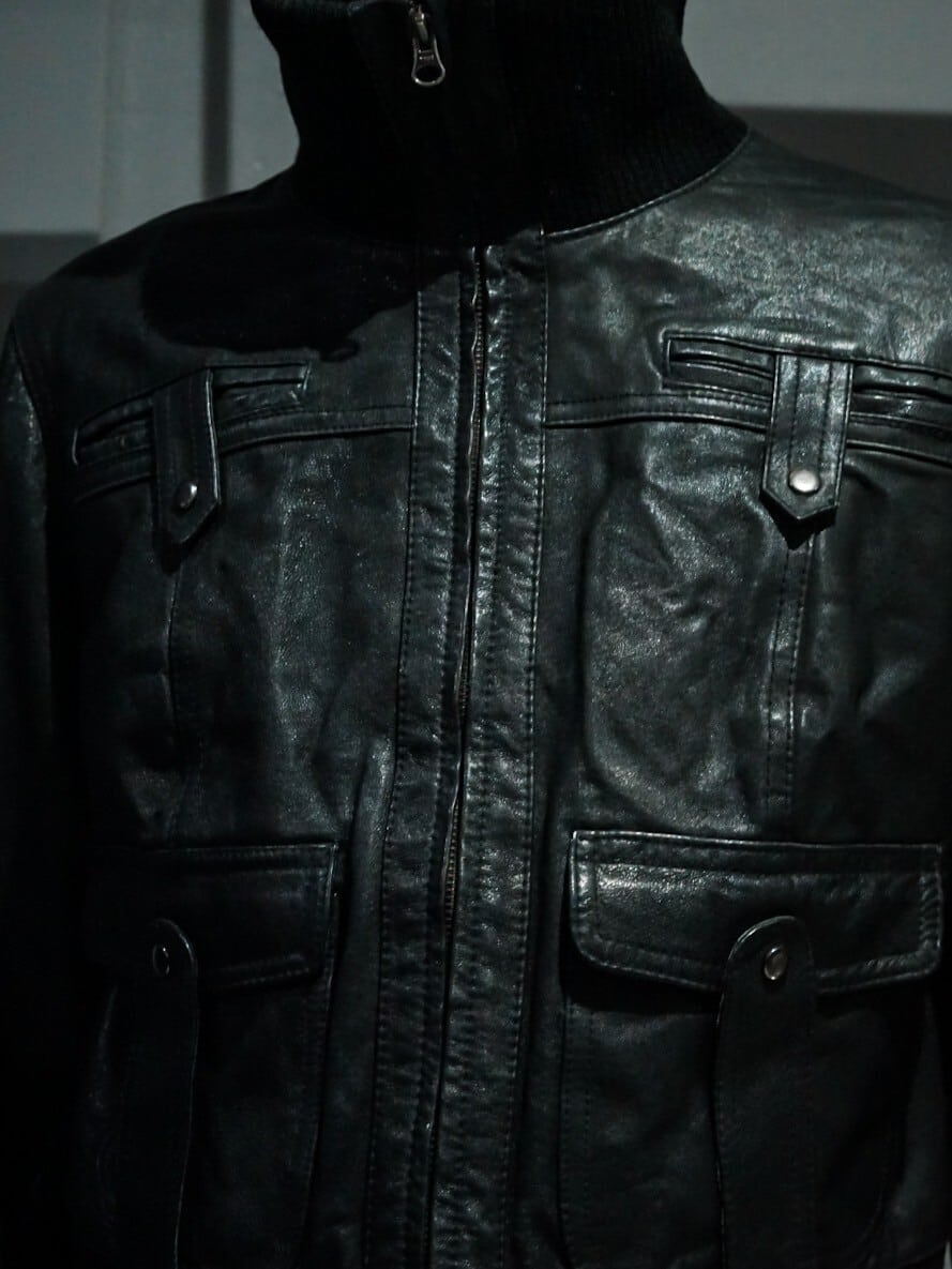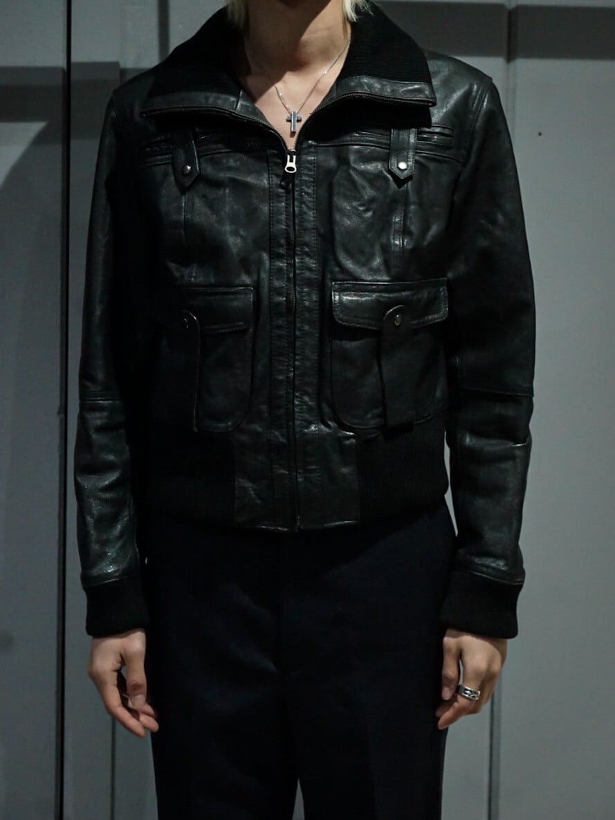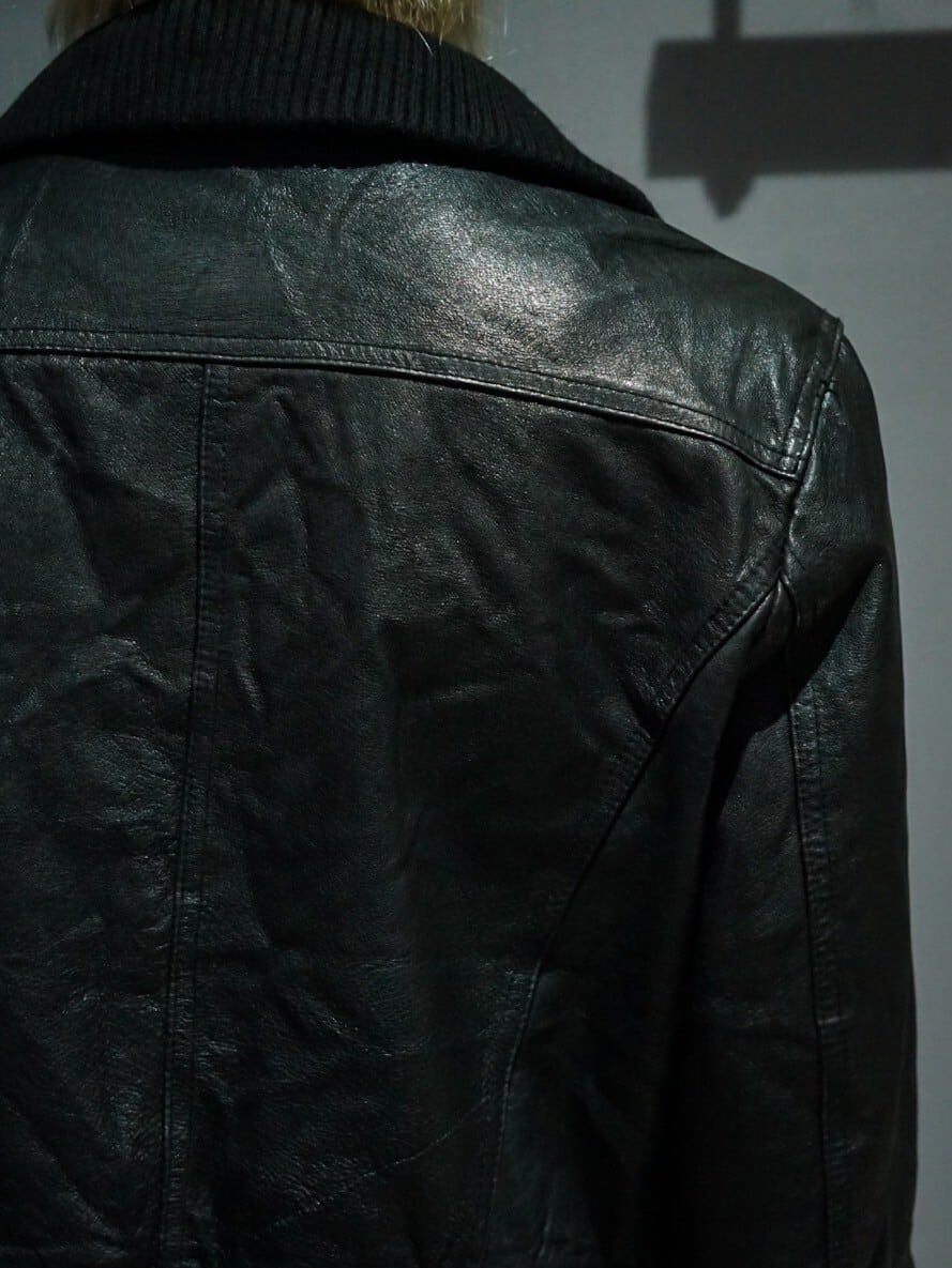 鈍い光沢を放つ上質なブラックレザーを使用し、至極シンプルなデザインに仕上げたジャケット。