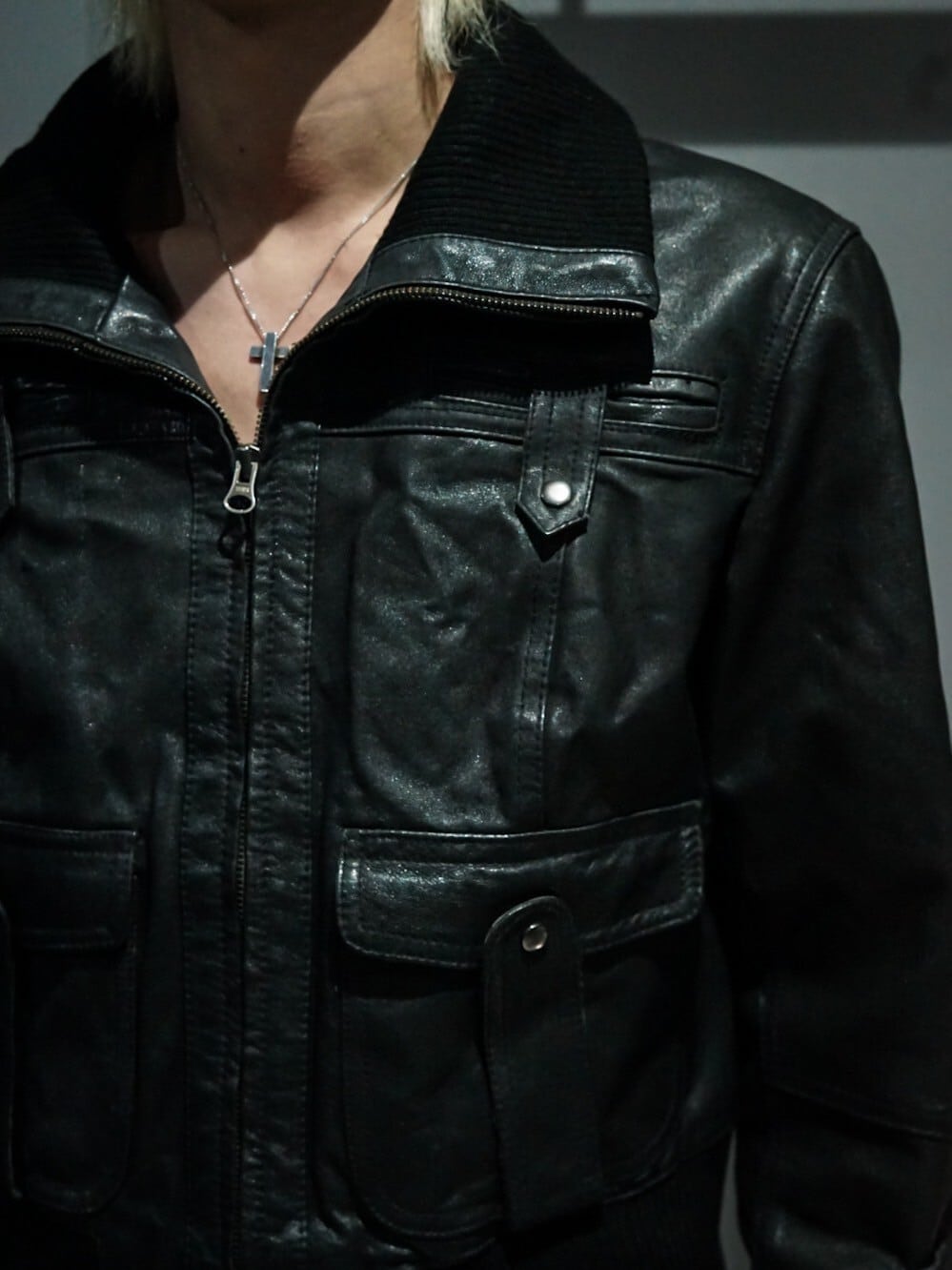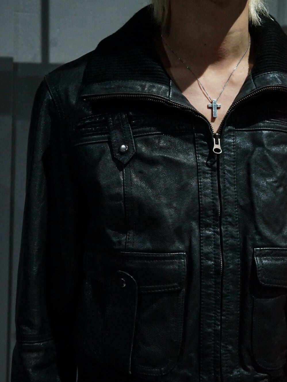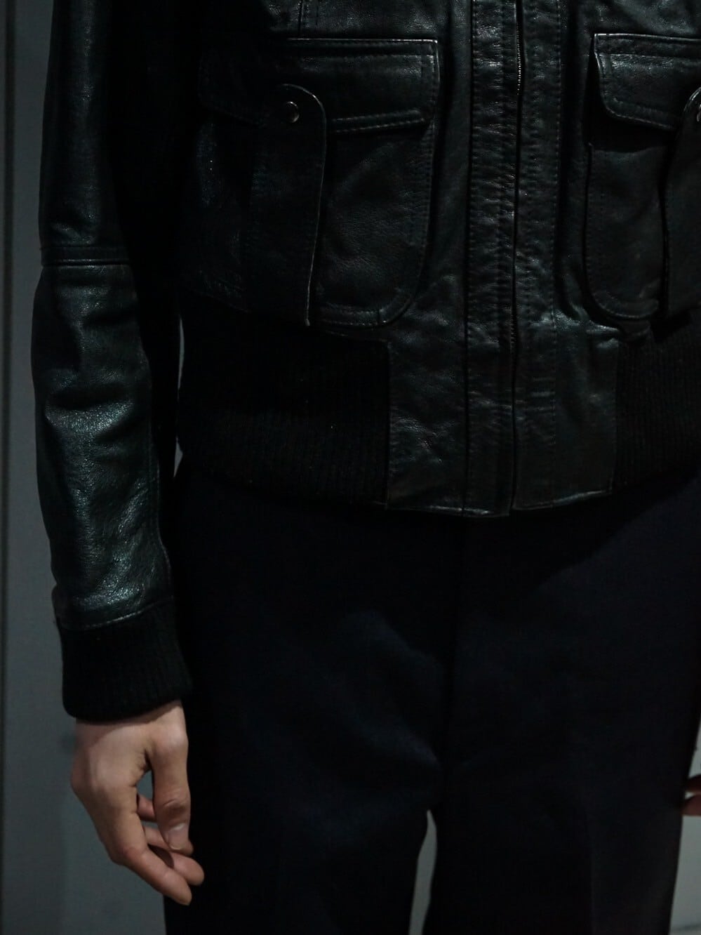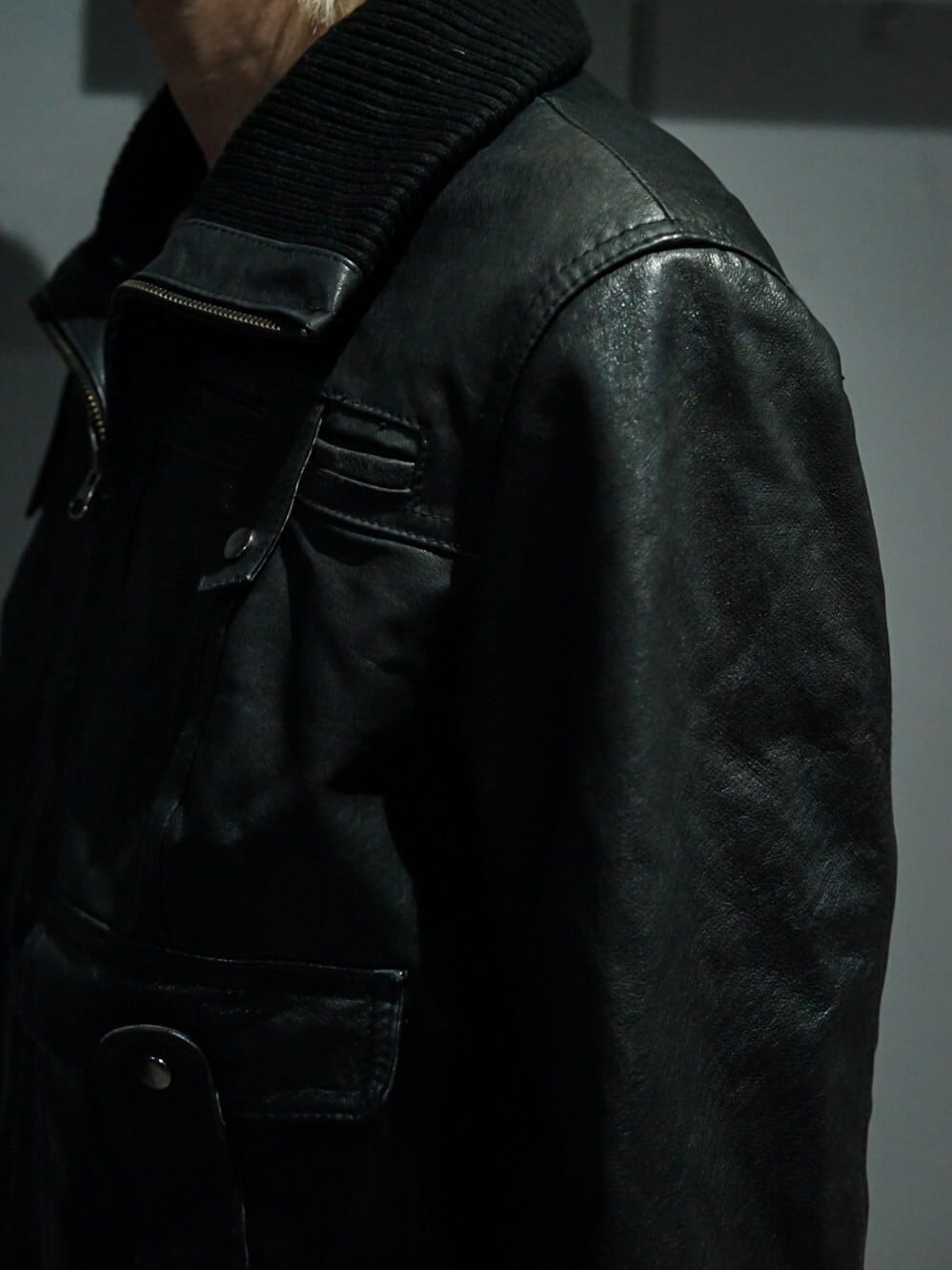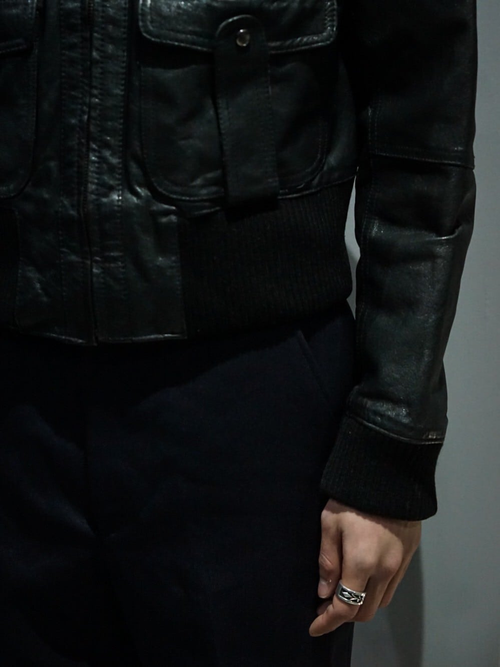 鈍い光沢を放つ上質なブラックレザーを使用し、至極シンプルなデザインに仕上げたジャケット。