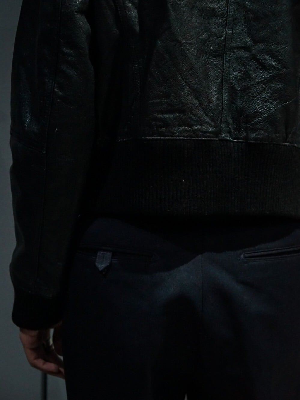 フロントにはスラッシュ×フラップポケットにベルトのギミックをON。ミニマムなデザインで、洗練された見映えに仕上がっております。