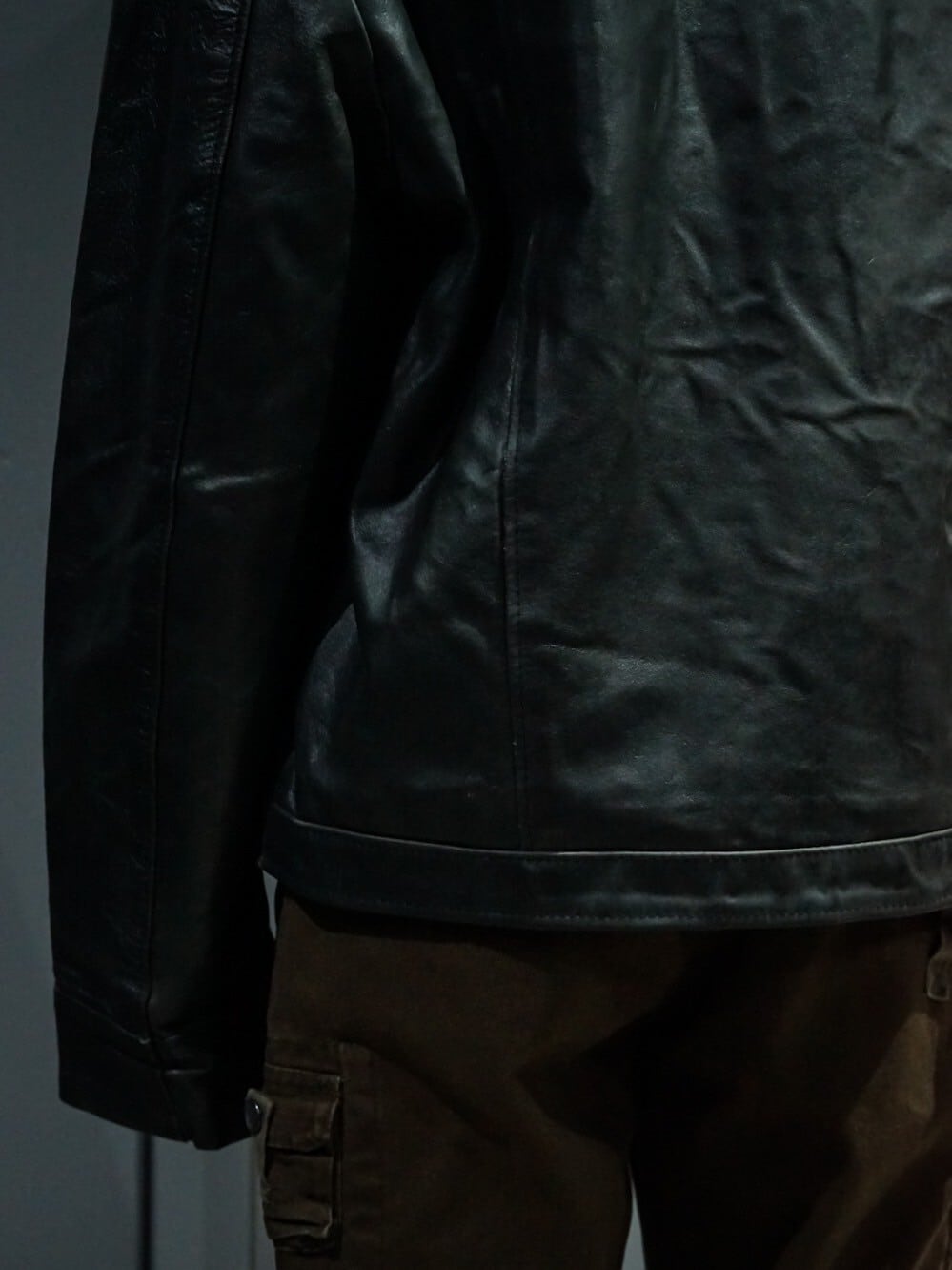 店頭に足繁く通っていただいているお客様をはじめとし、業界関係者の方々からもお墨付きをいただいている当店のレザーアイテムより、スペシャルな1着をご紹介致します。