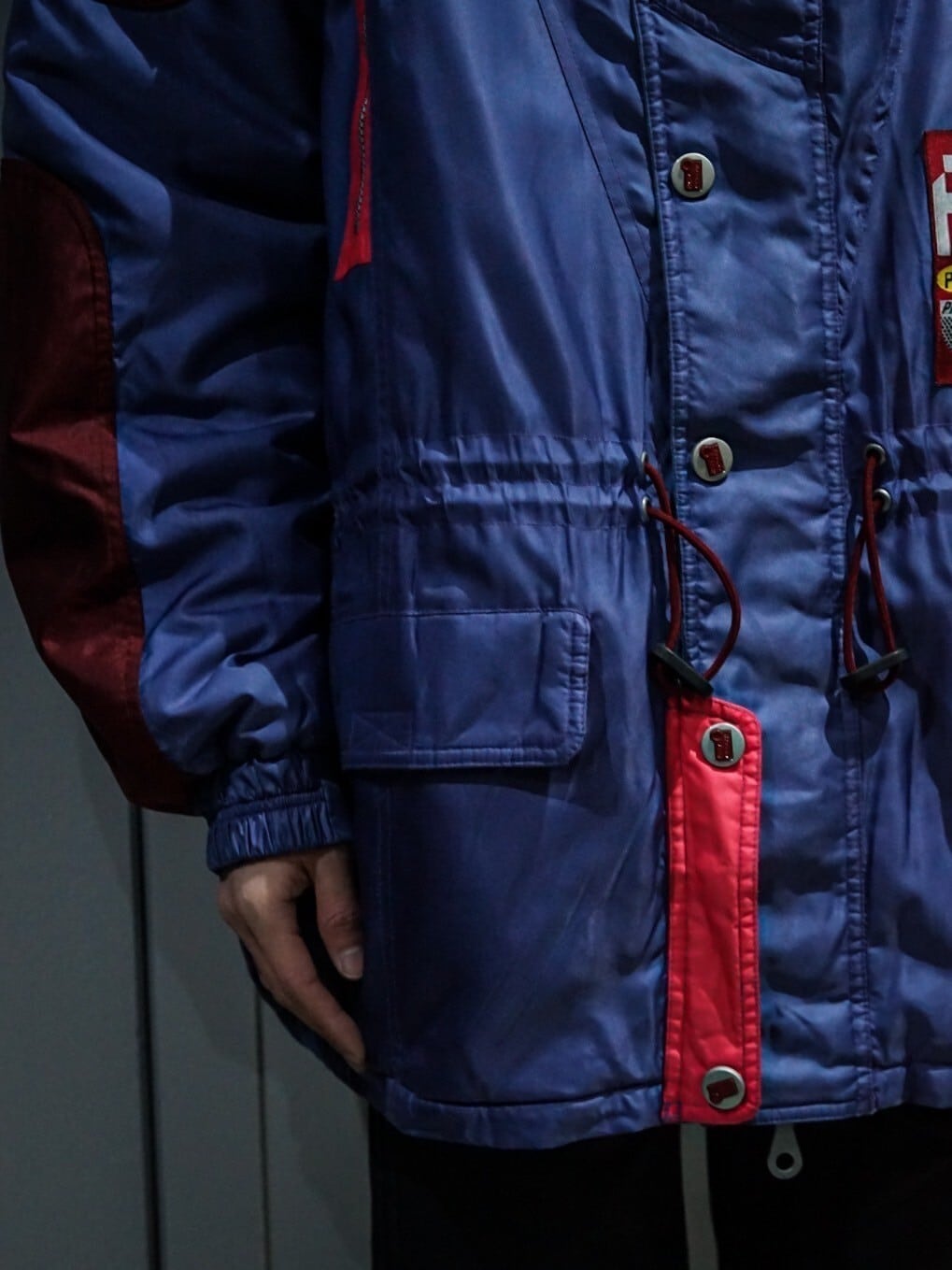 撥水性のあるナイロン素材を使用していながら、中綿が仕込れたパデッド仕様。幅広いシーズンで着用できます。