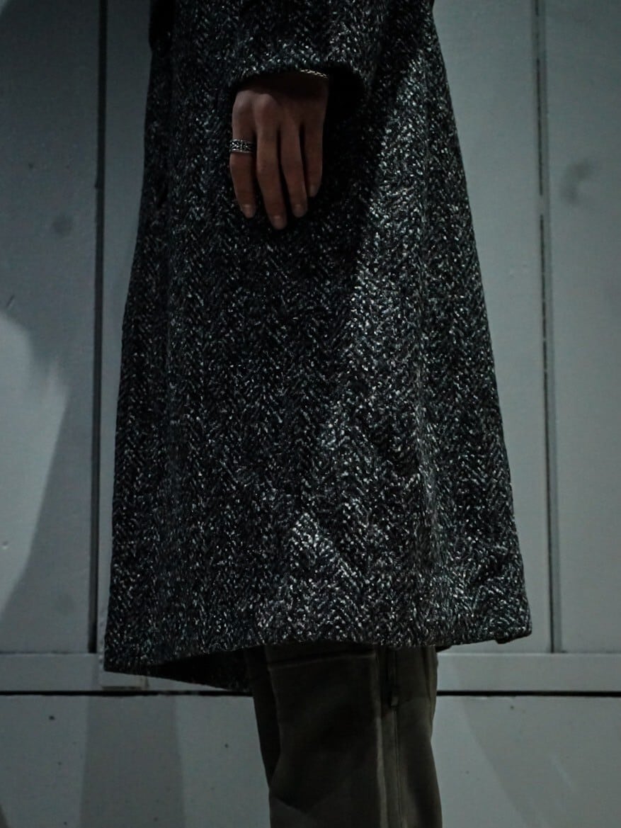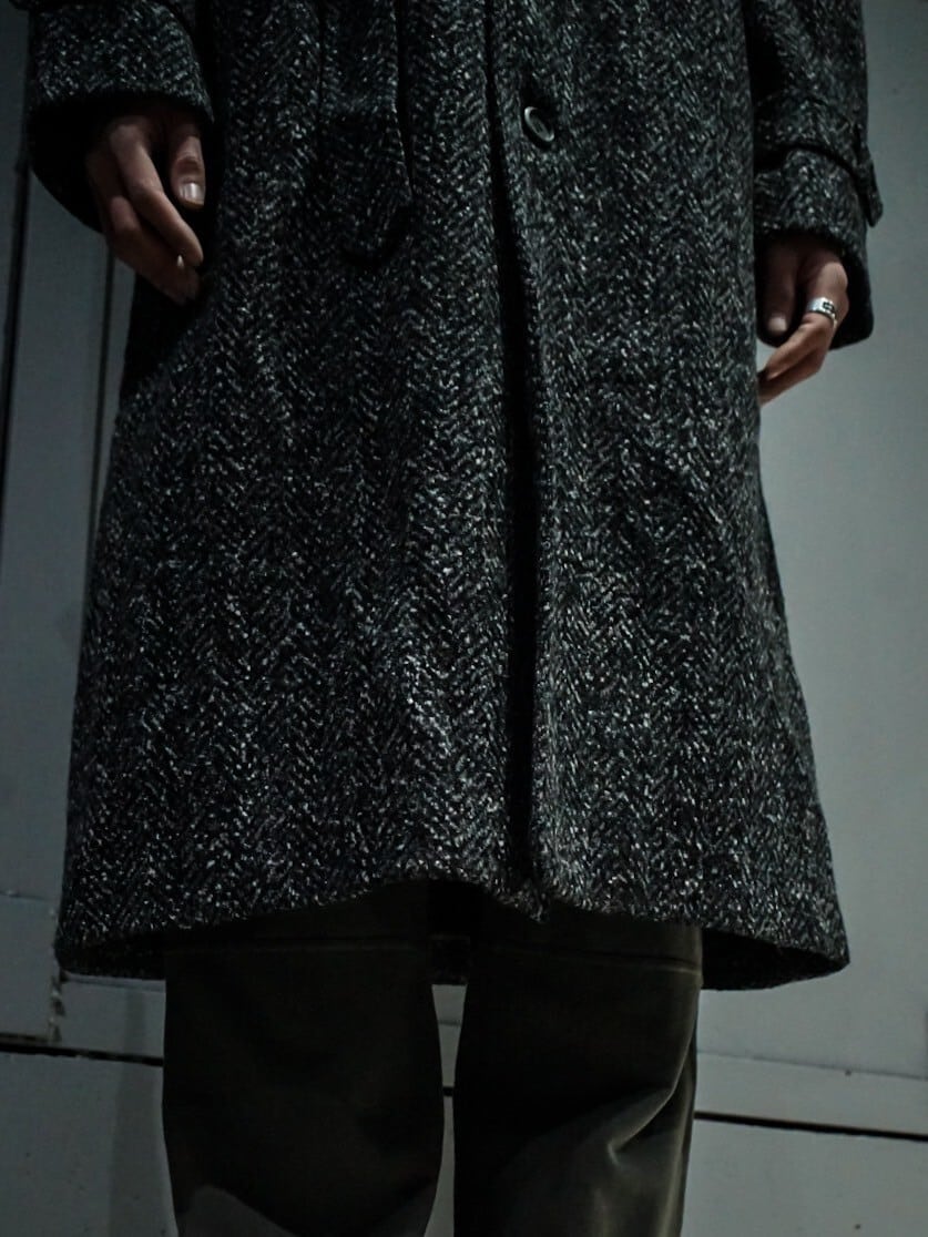 店頭でもジャンル幅広く大量展開中、及び大好評いただいているコート類より上質なツイード生地を使用した1着をご紹介致します。