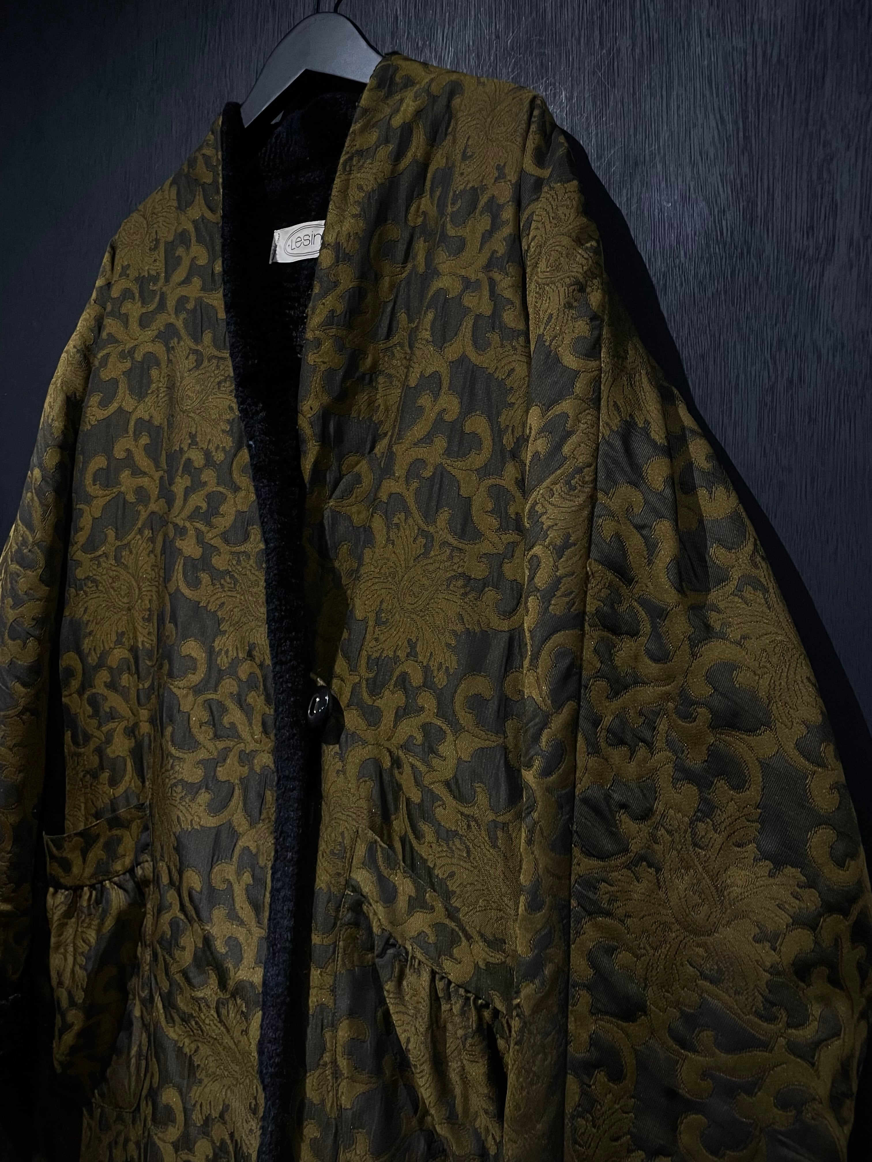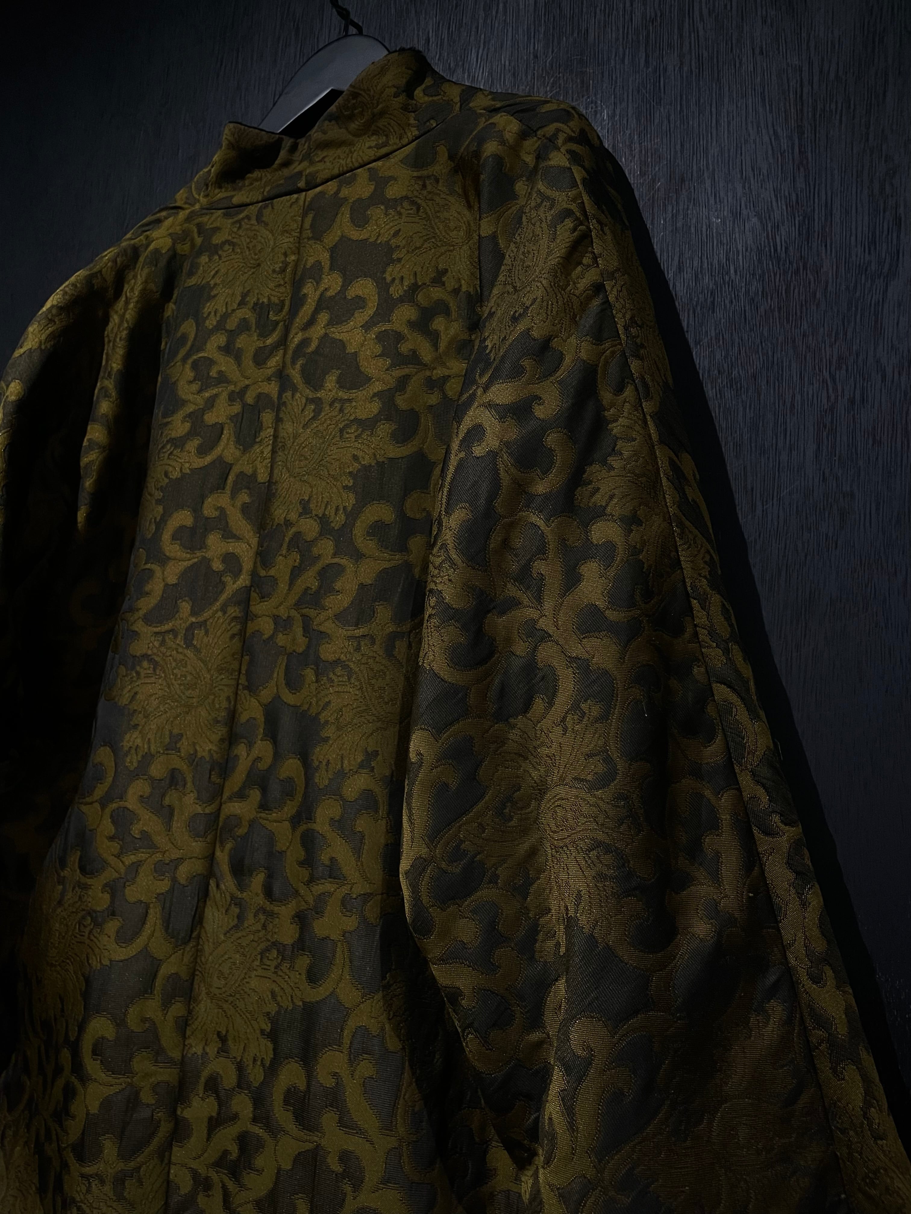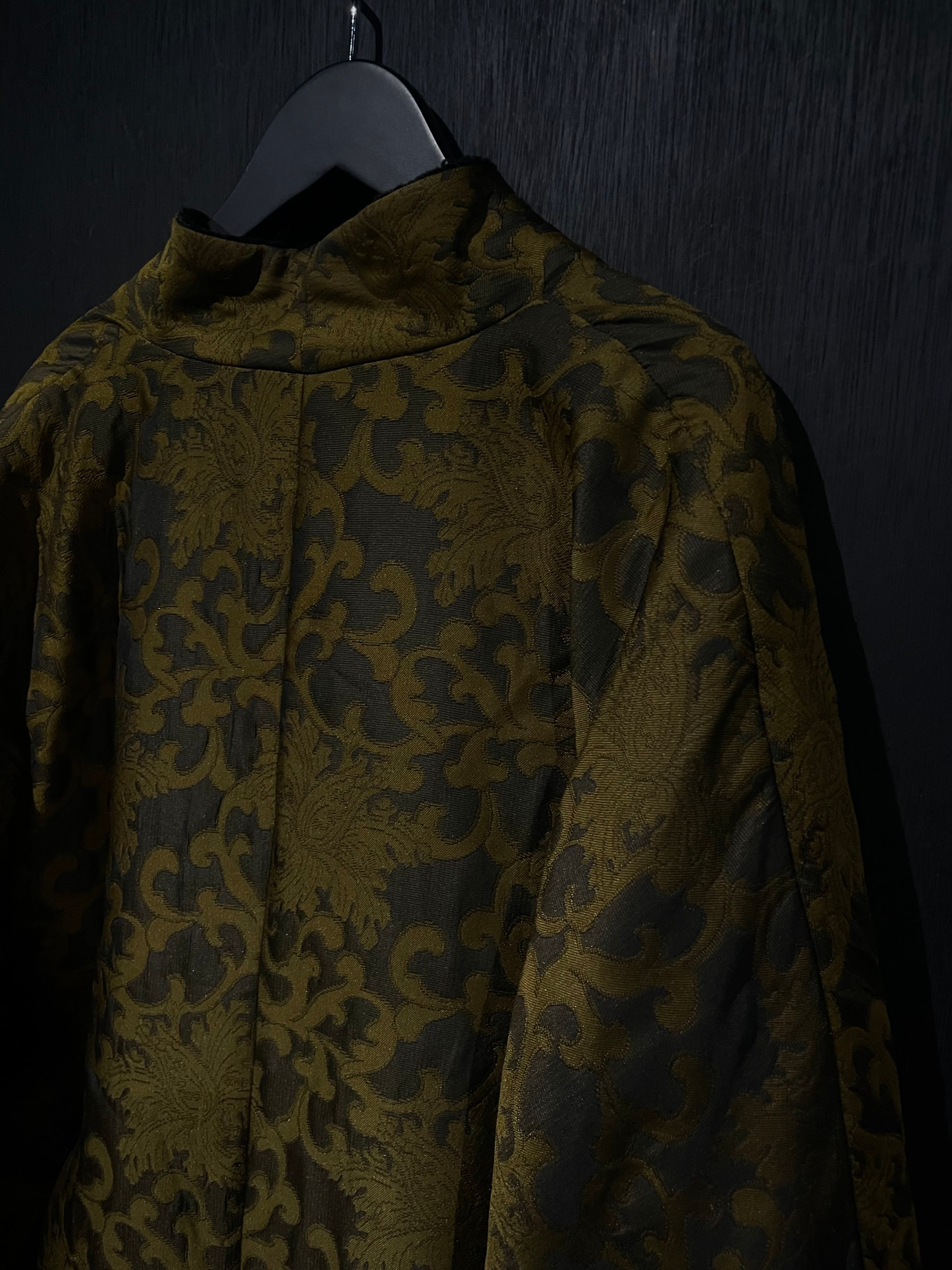 フワッと柔らかな素材をベースに、上質なジャガード織りで非常〜に緻密で繊細なダマスク柄を織り成したロングジャケット。