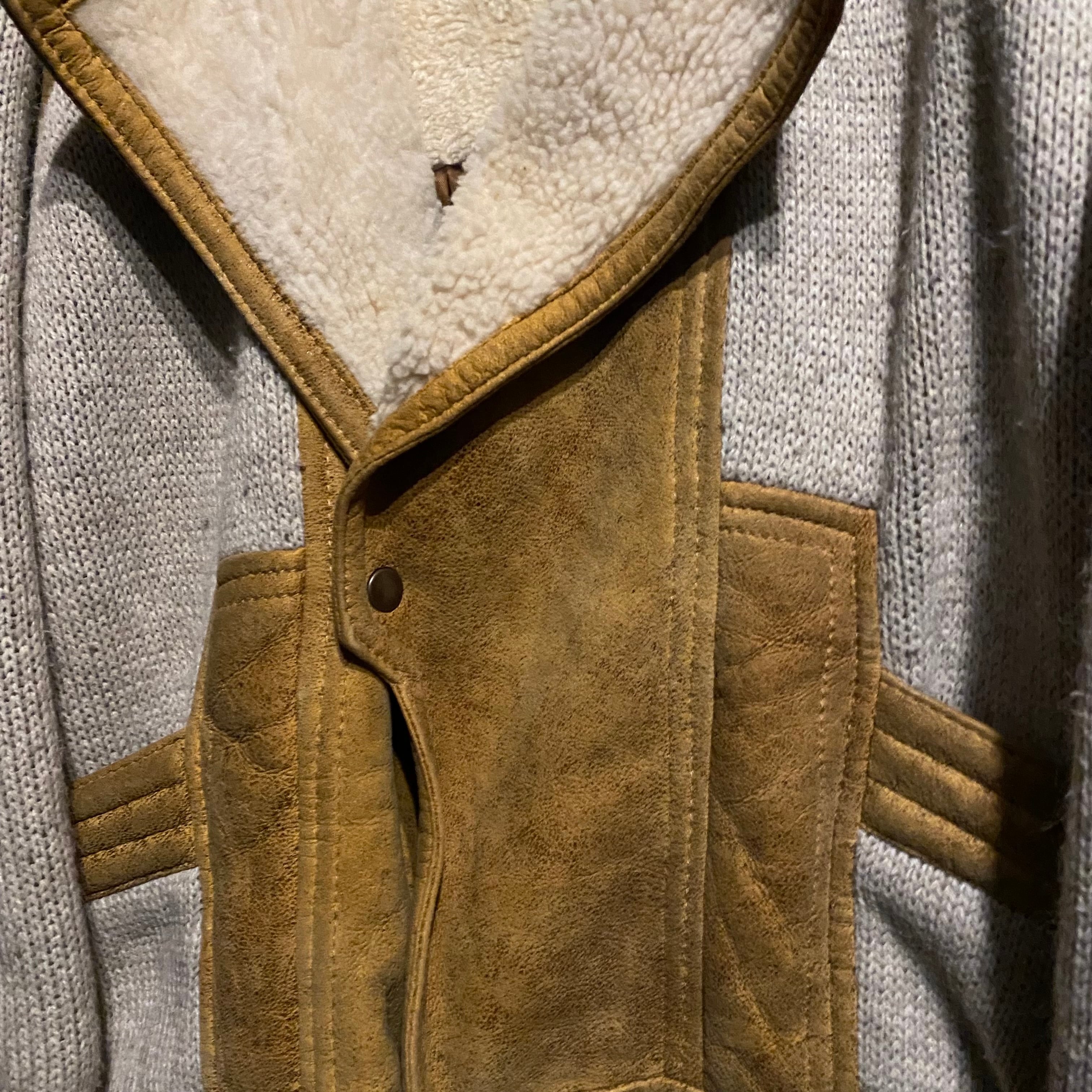 レザーならではの粗々しさを表現しながらも、ムートンらしいモフっとした弾力のあるシープスキンから滲み出るラグジュアリーの雰囲気とニットのカジュアルさが絶妙なデザインバランスを誇る1着です。