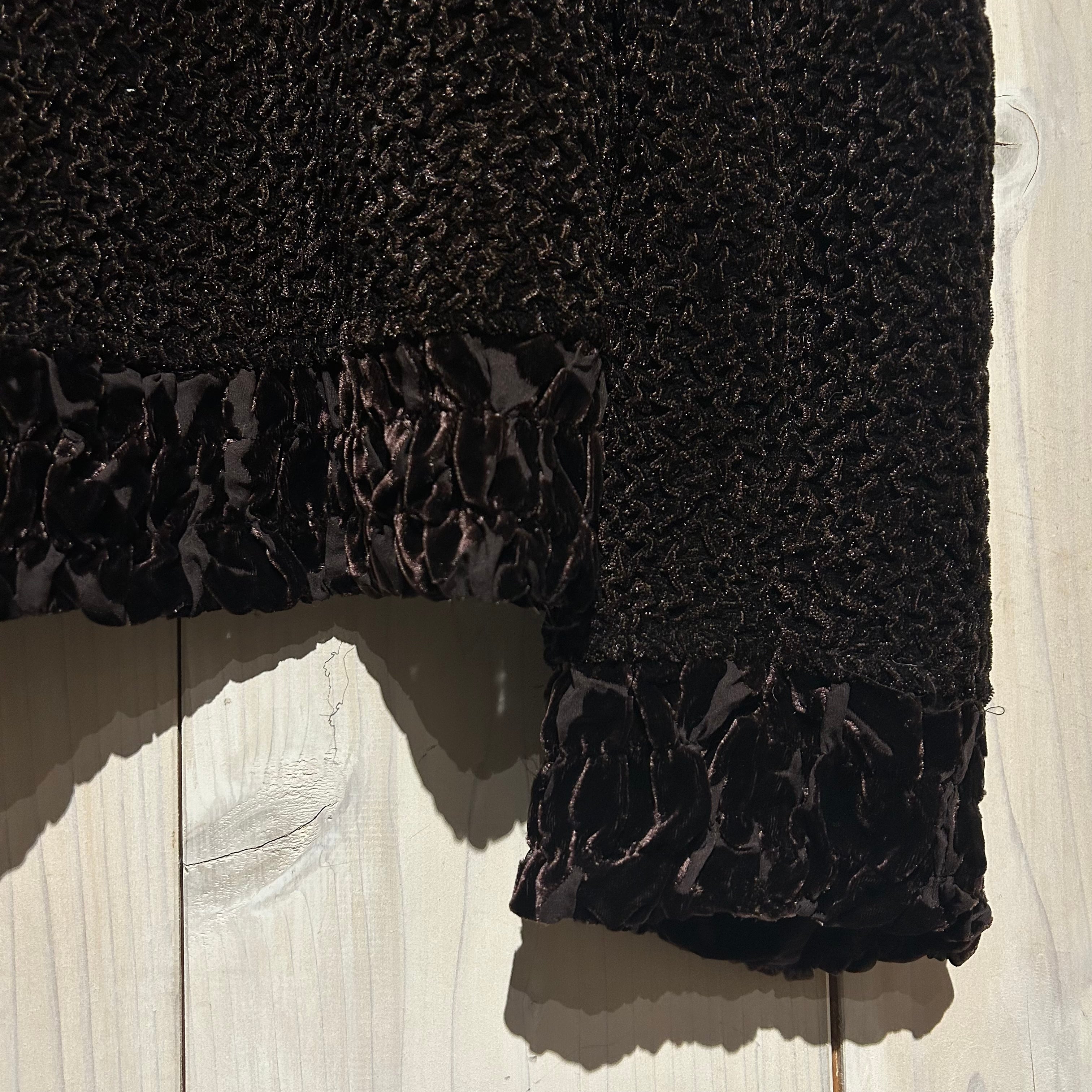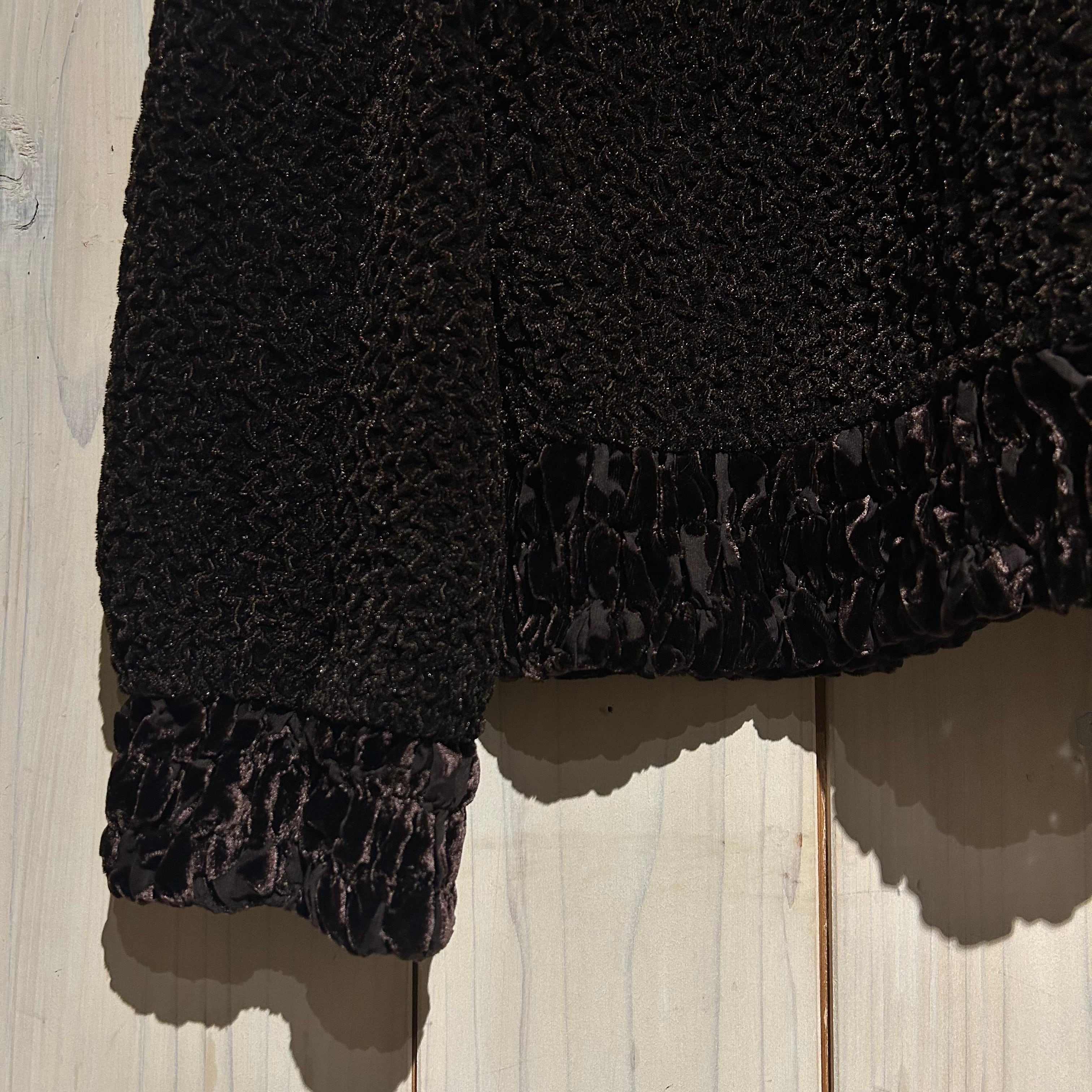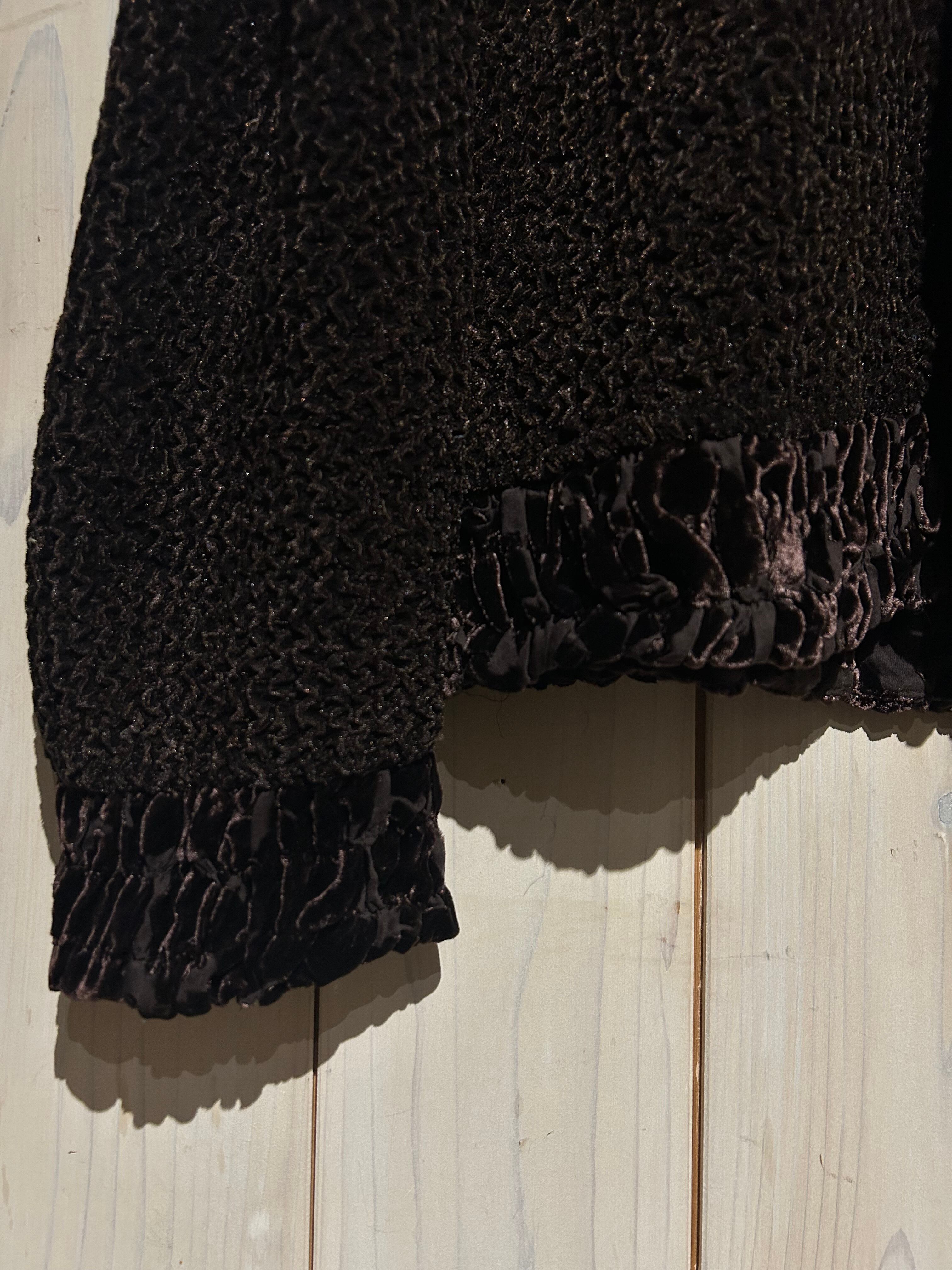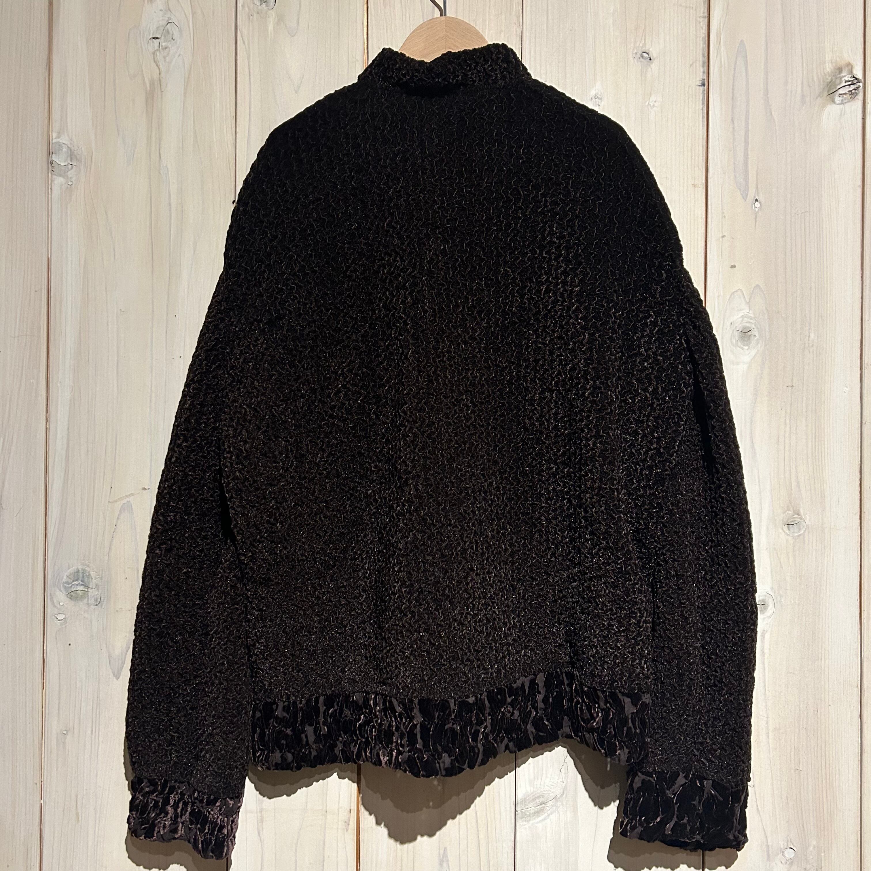 稀有なポップコーン素材というトレンド感のある素材に、上質なベロアを切り替えた稀有かつスペシャルな逸品です。