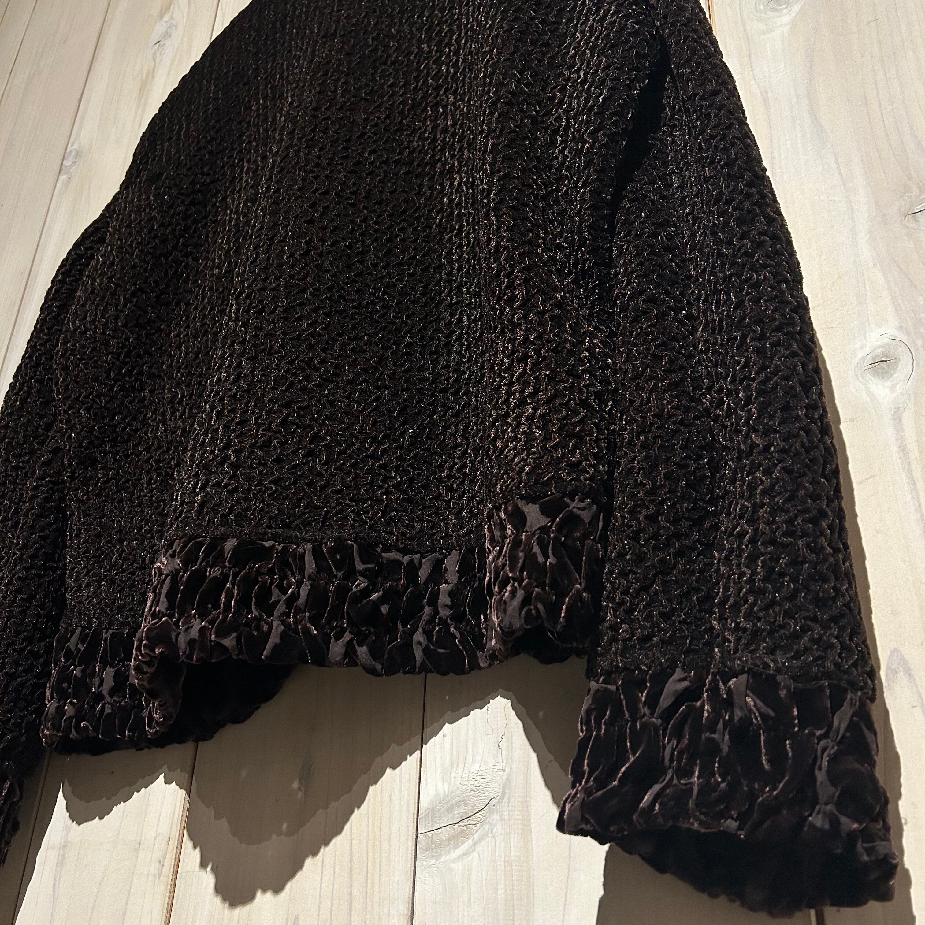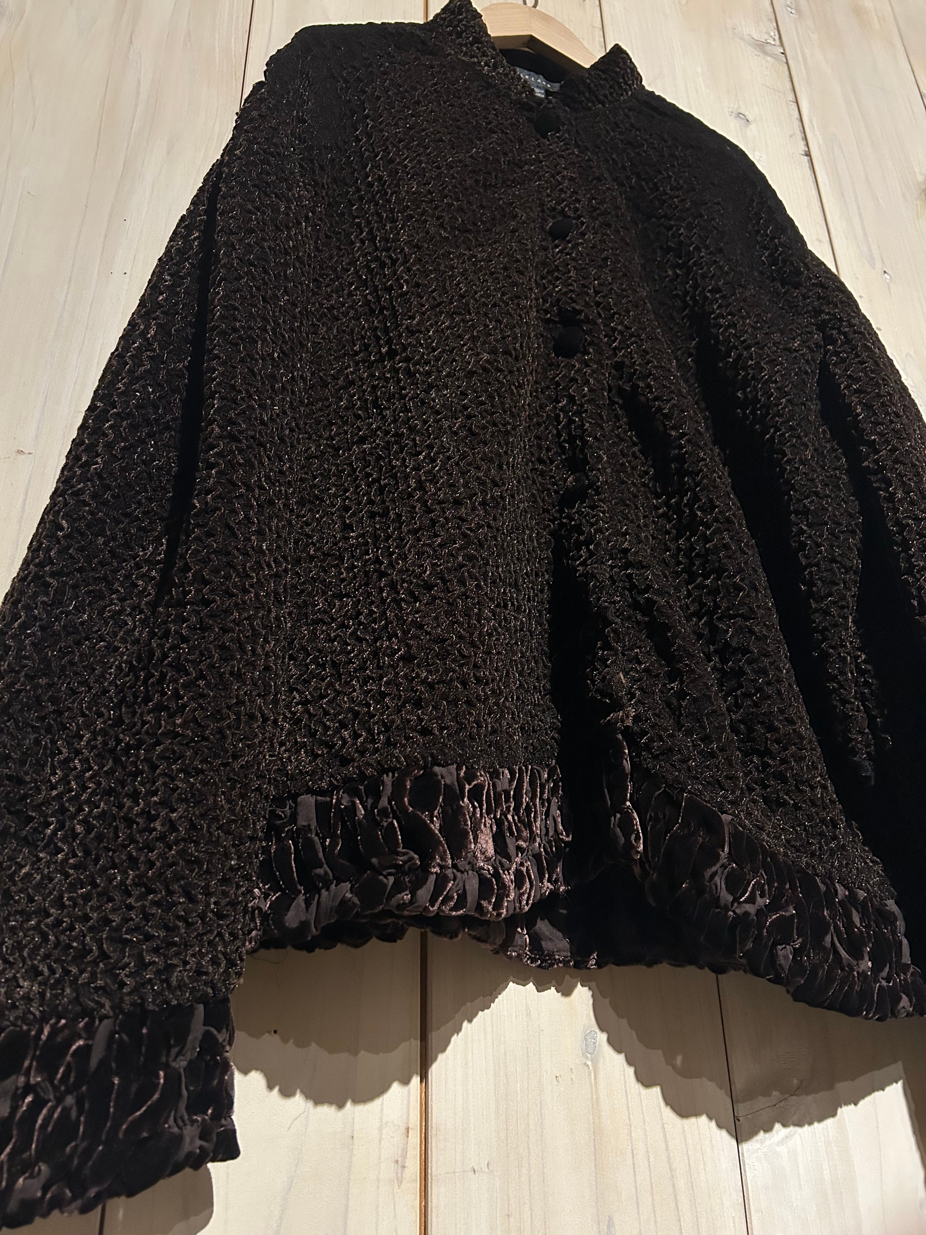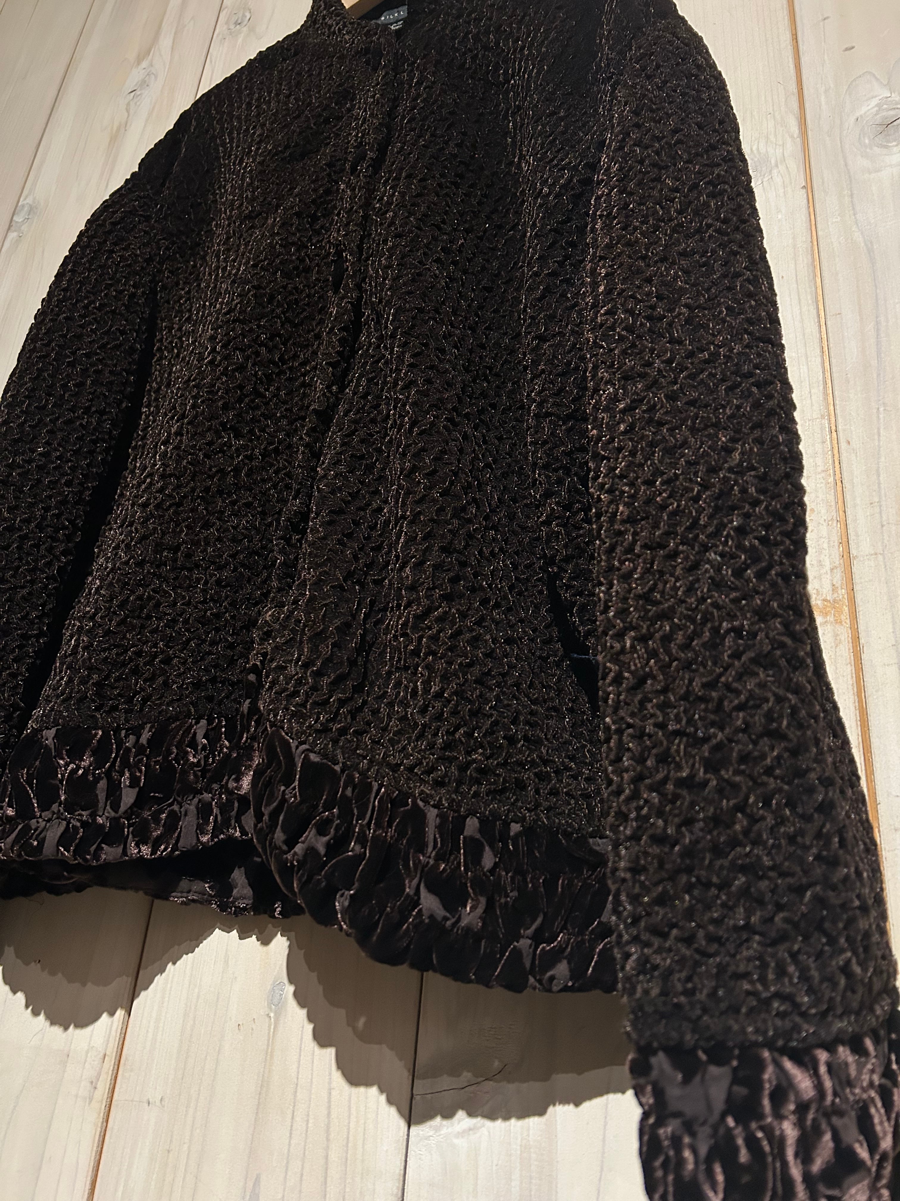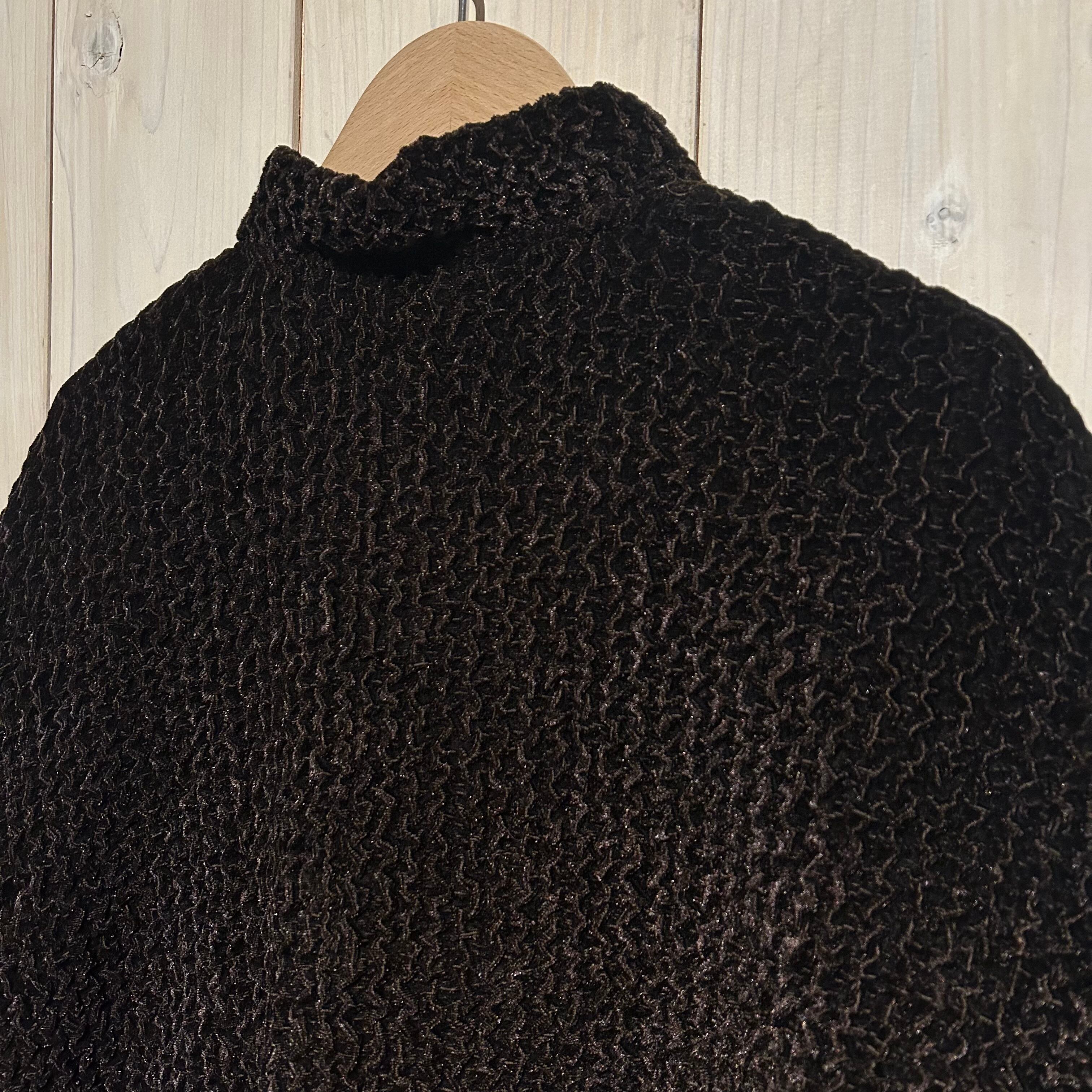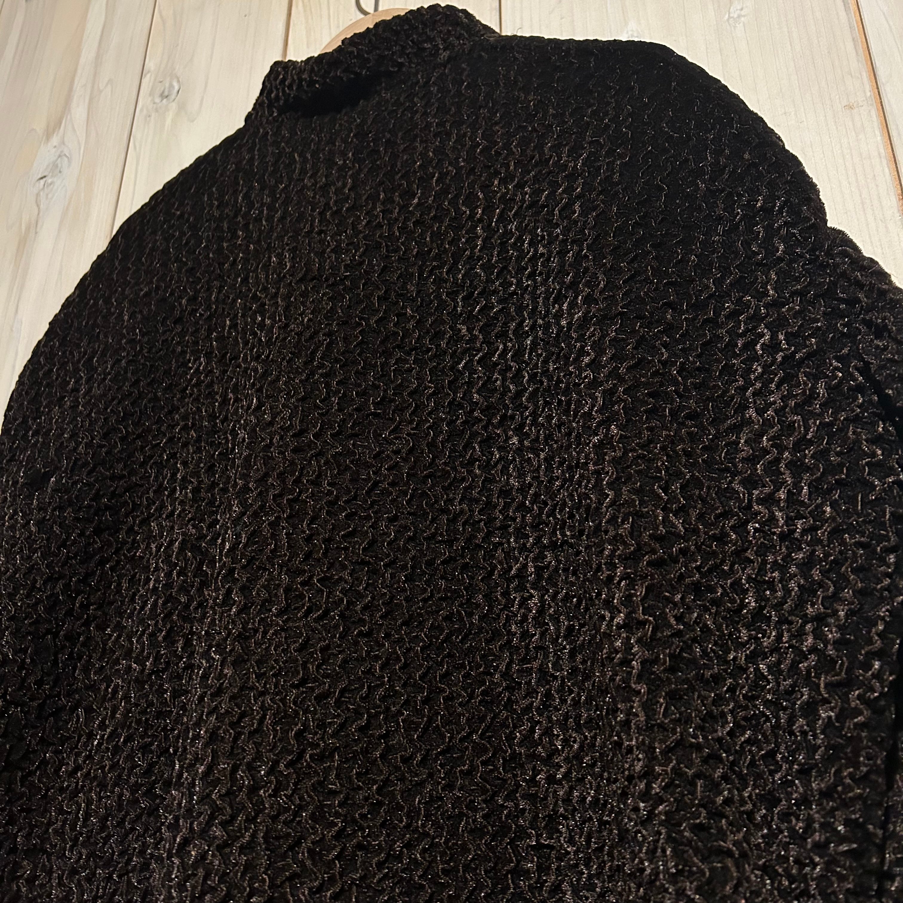 稀有なポップコーン素材というトレンド感のある素材に、上質なベロアを切り替えた稀有かつスペシャルな逸品です。