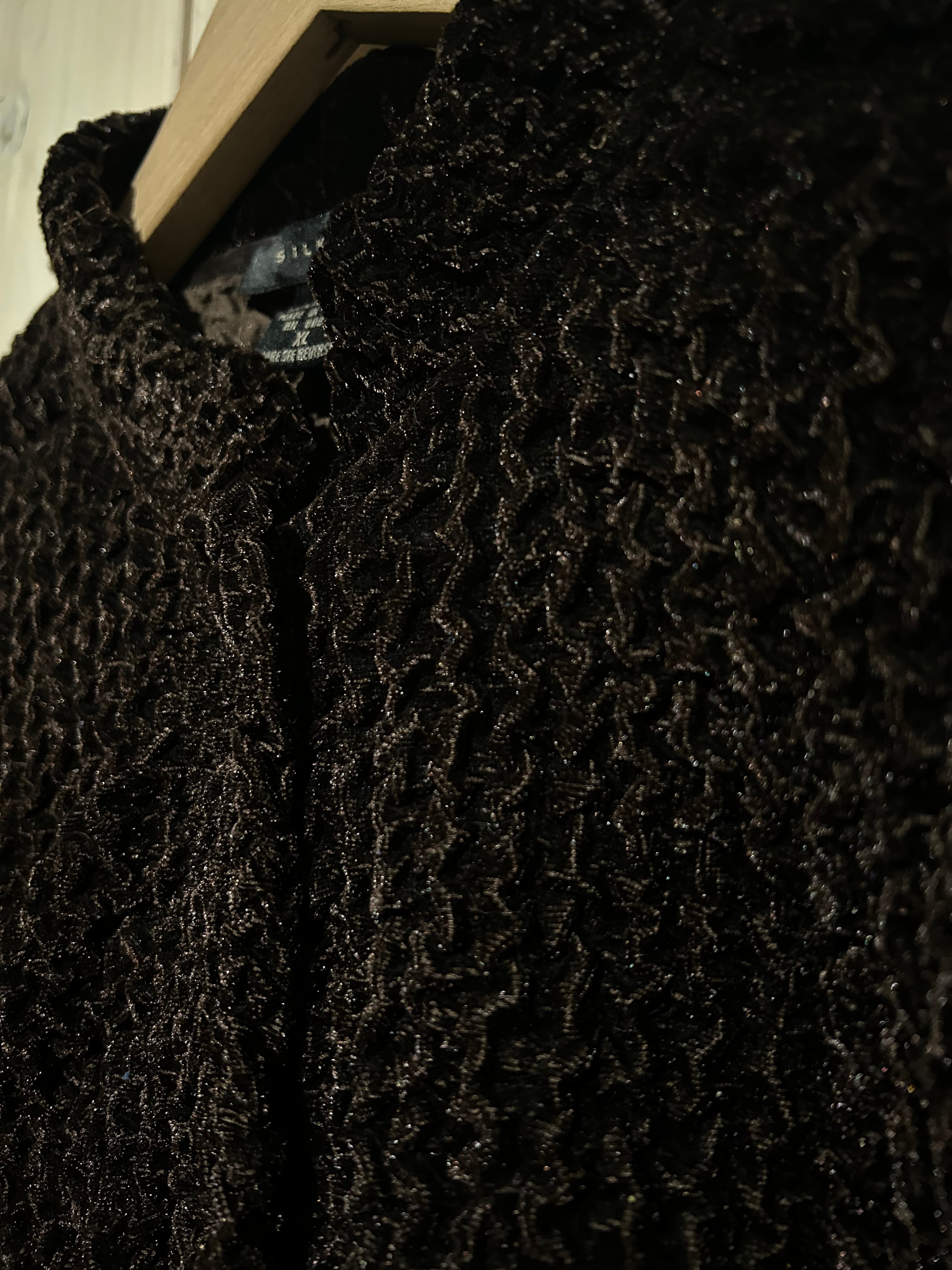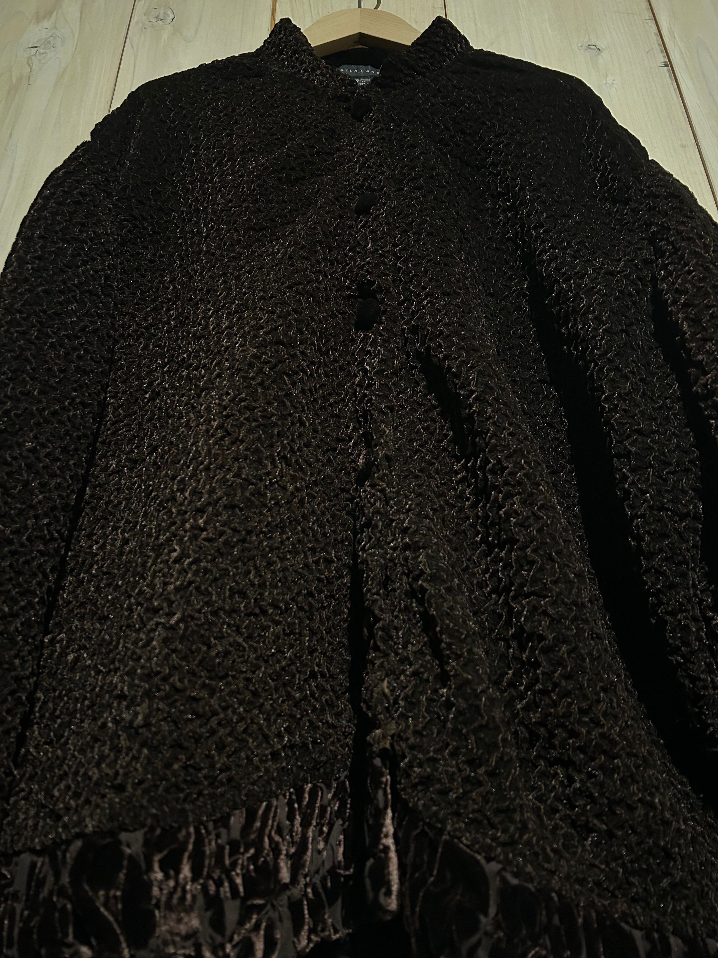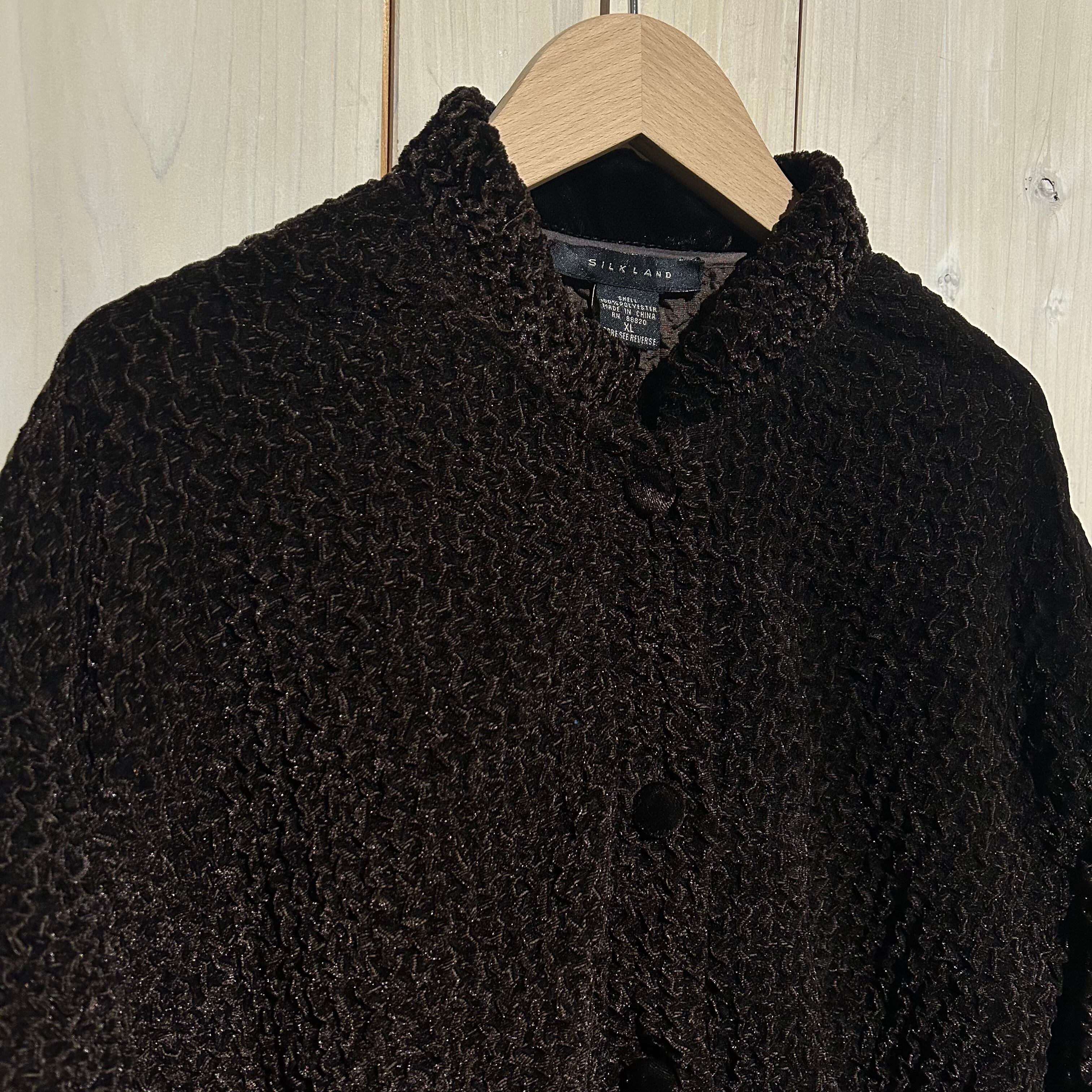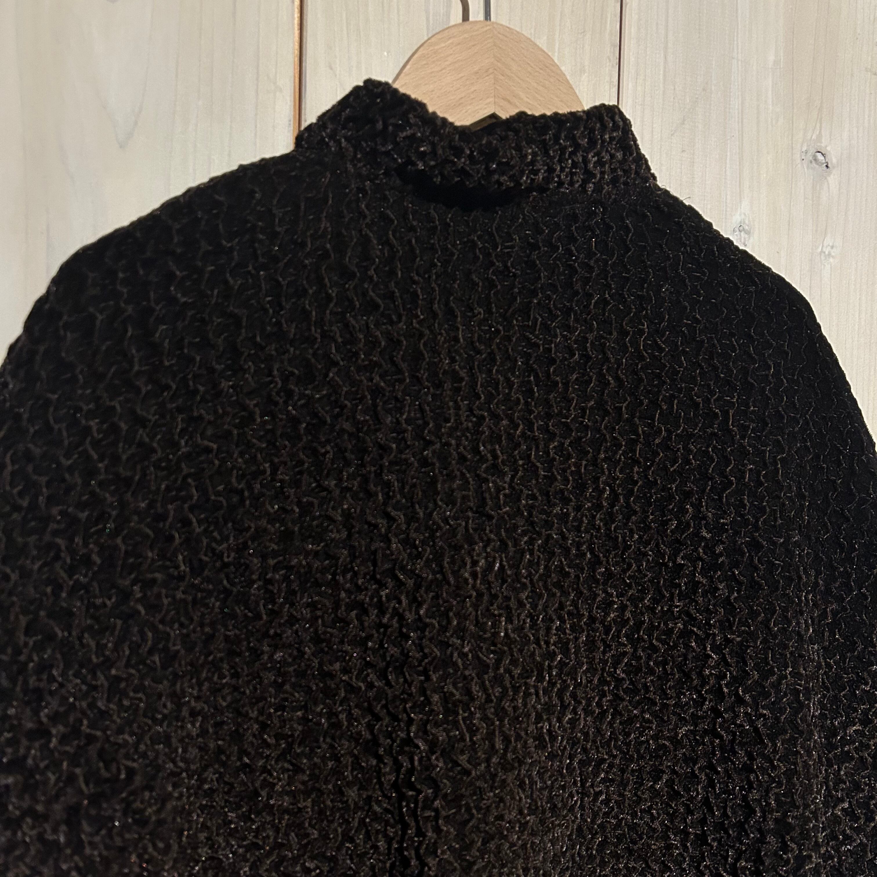 稀有なポップコーン素材というトレンド感のある素材に、上質なベロアを切り替えた稀有かつスペシャルな逸品です。