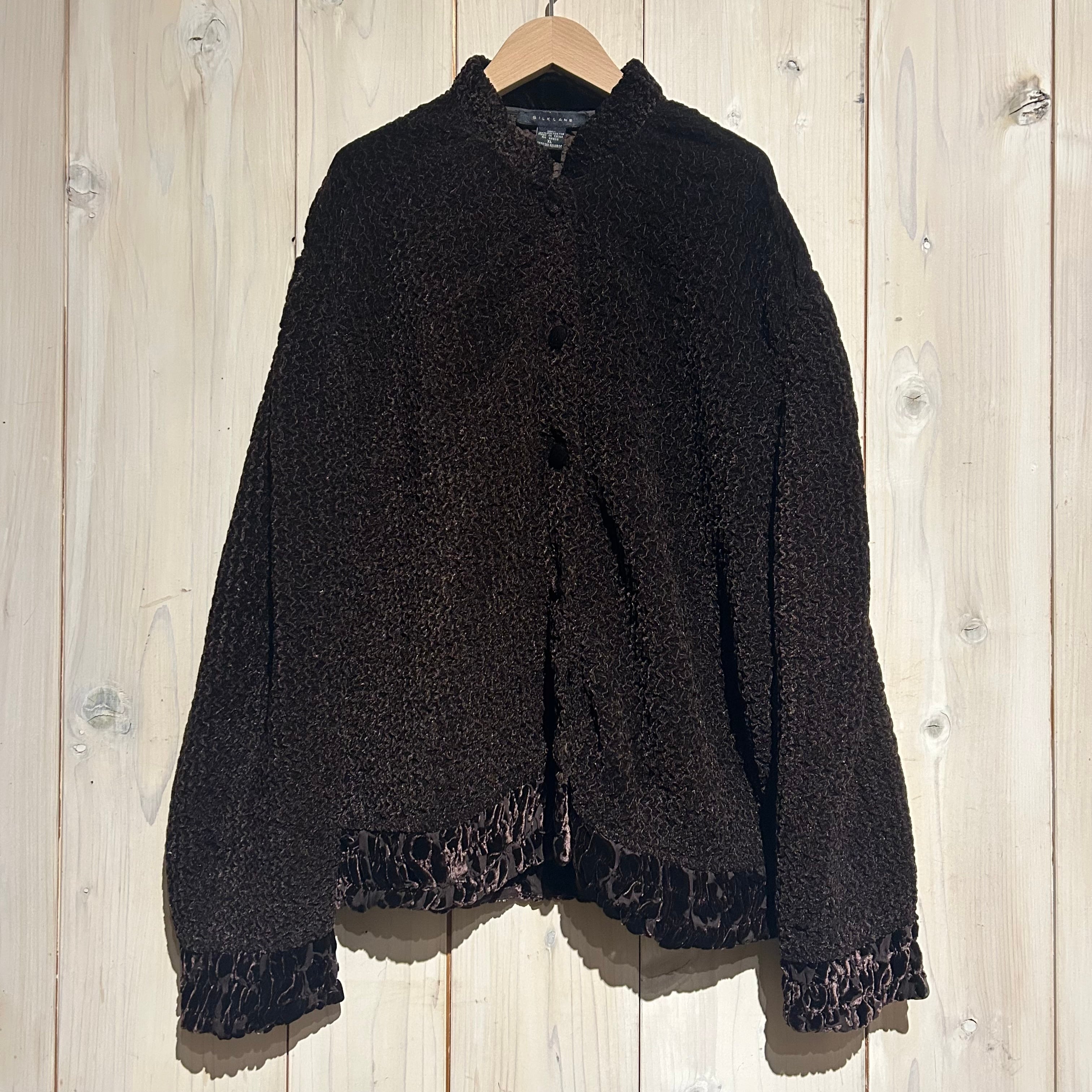 そんなポップコーン素材を用いたブラウンカラーのボディに、裾、袖元に鈍い光沢を放つベロア素材を切り替えたシャツジャケット。