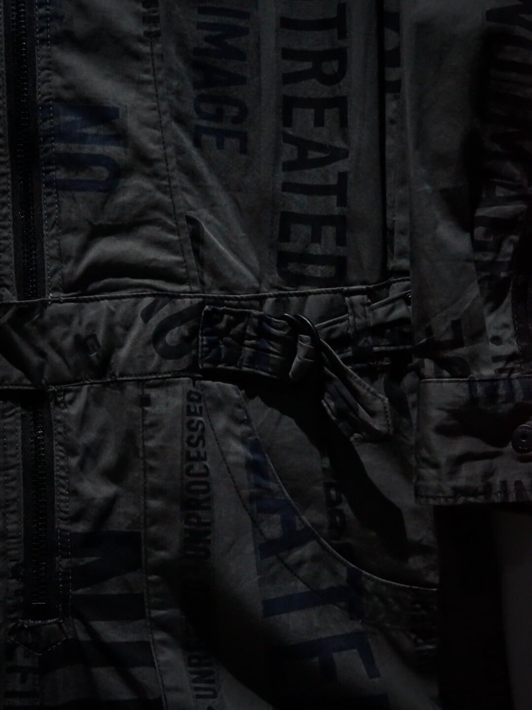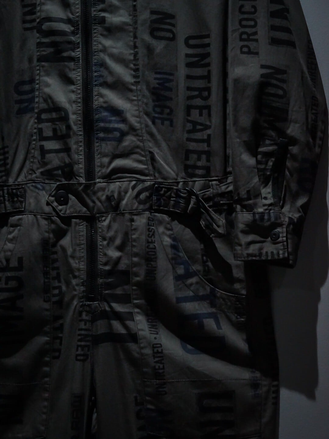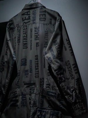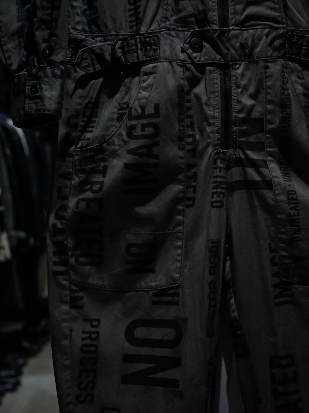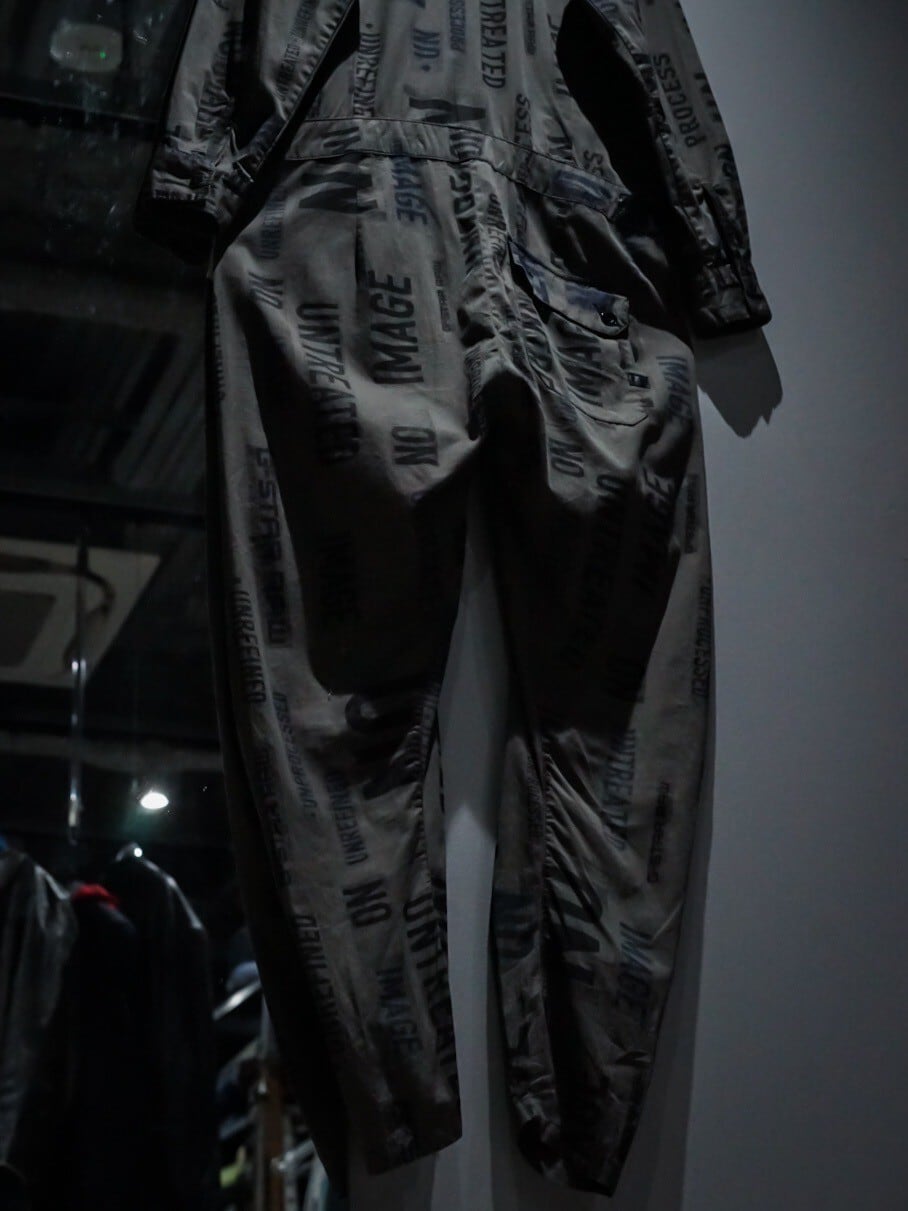 ハリ、コシのあるツイル織りの素材を用いて、ブランドロゴなどが載せられたレタリングのデザインが施されたジャンプスーツ。ヴィンテージにおいてジャンプスーツ自体が稀少ですが、ブランドかつデザイン性の高いモノとなると中々お目にかかれません。