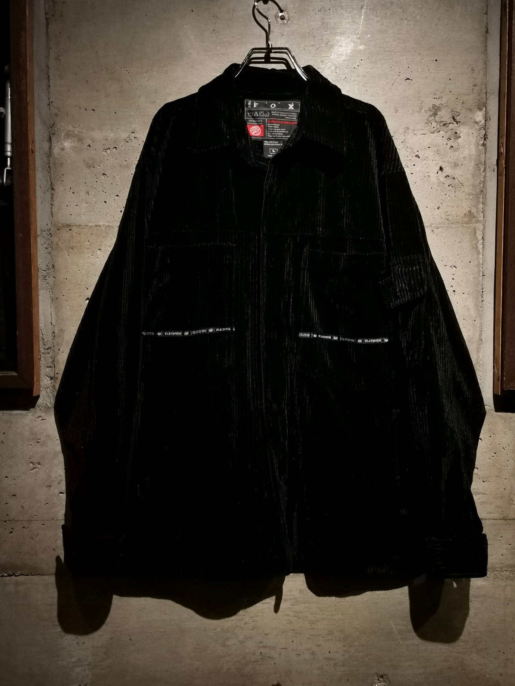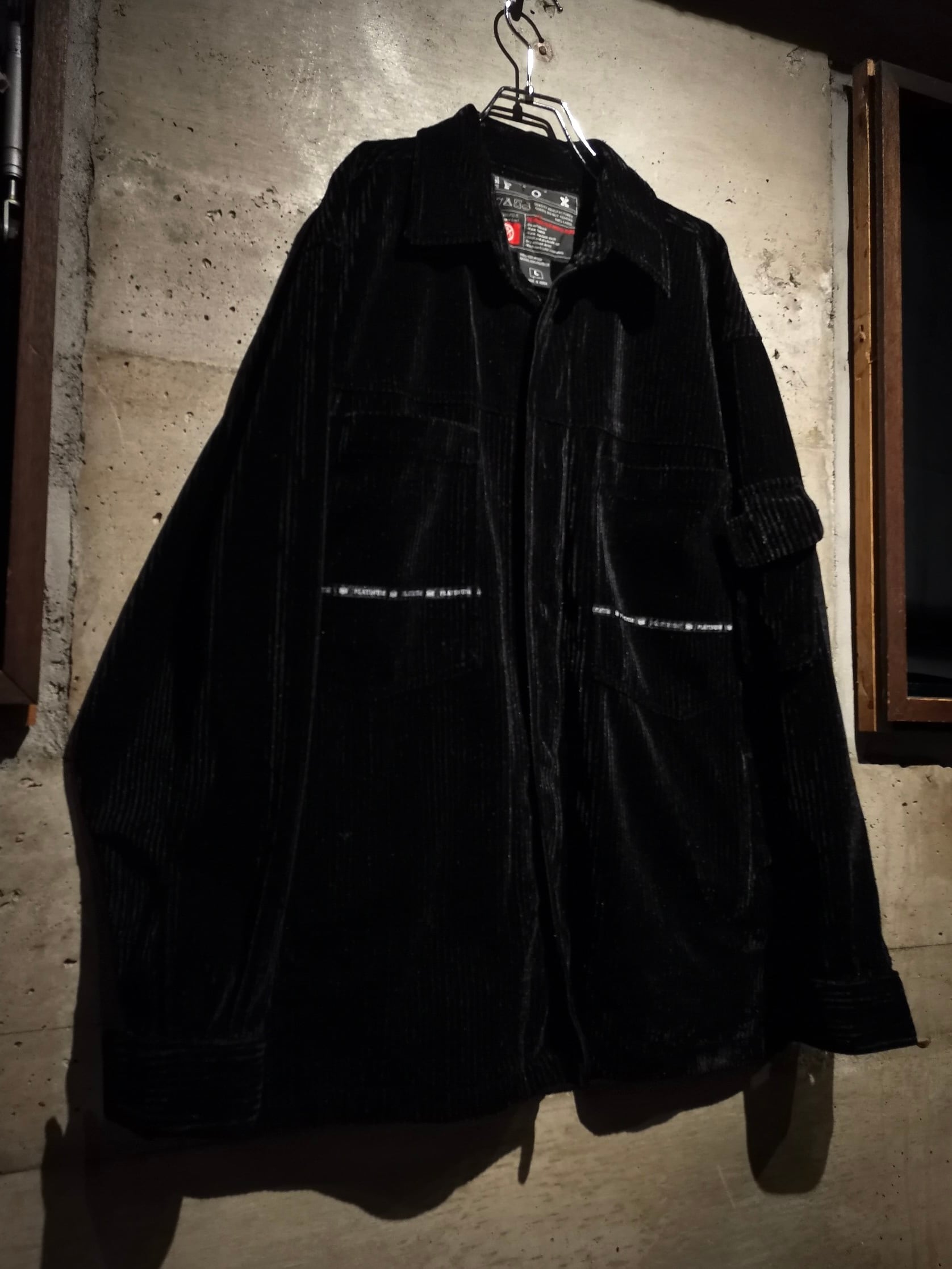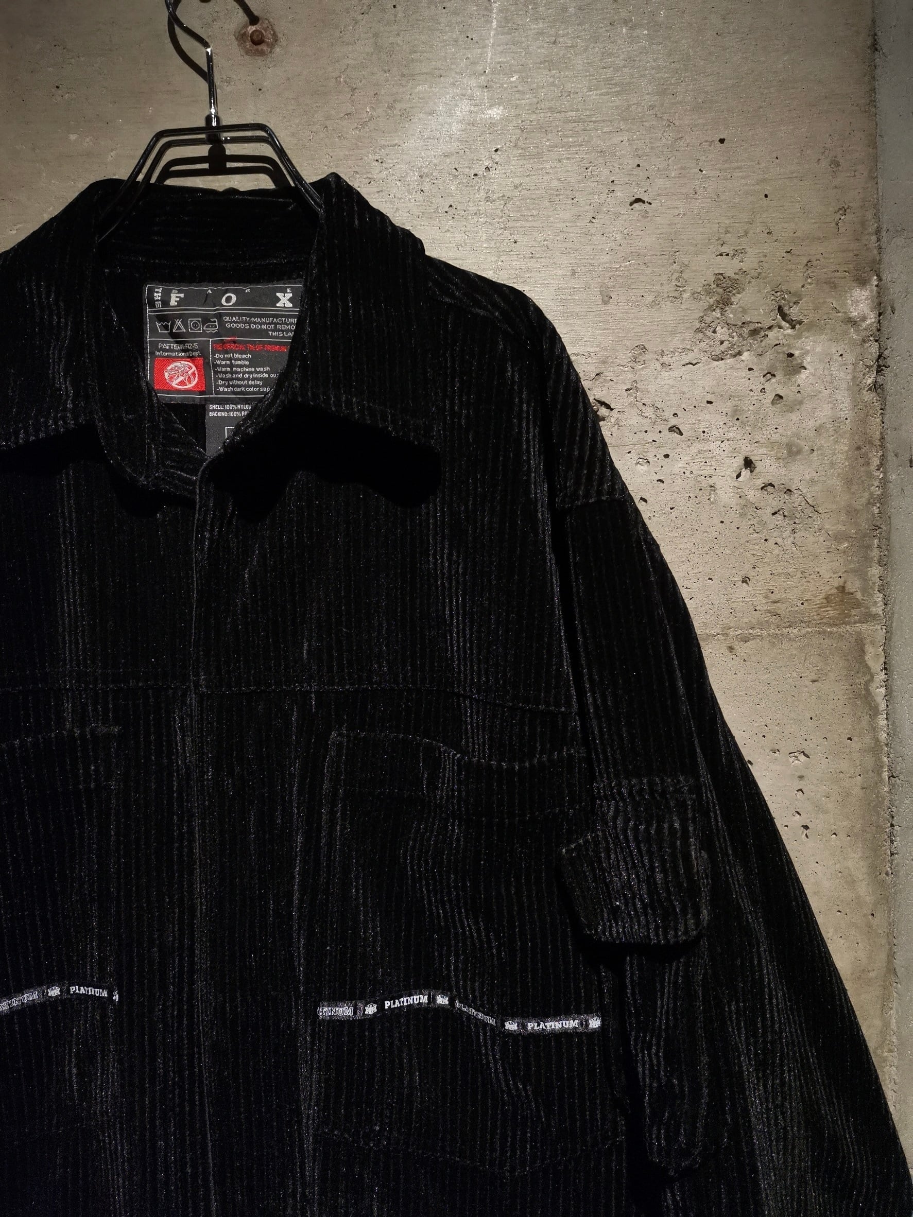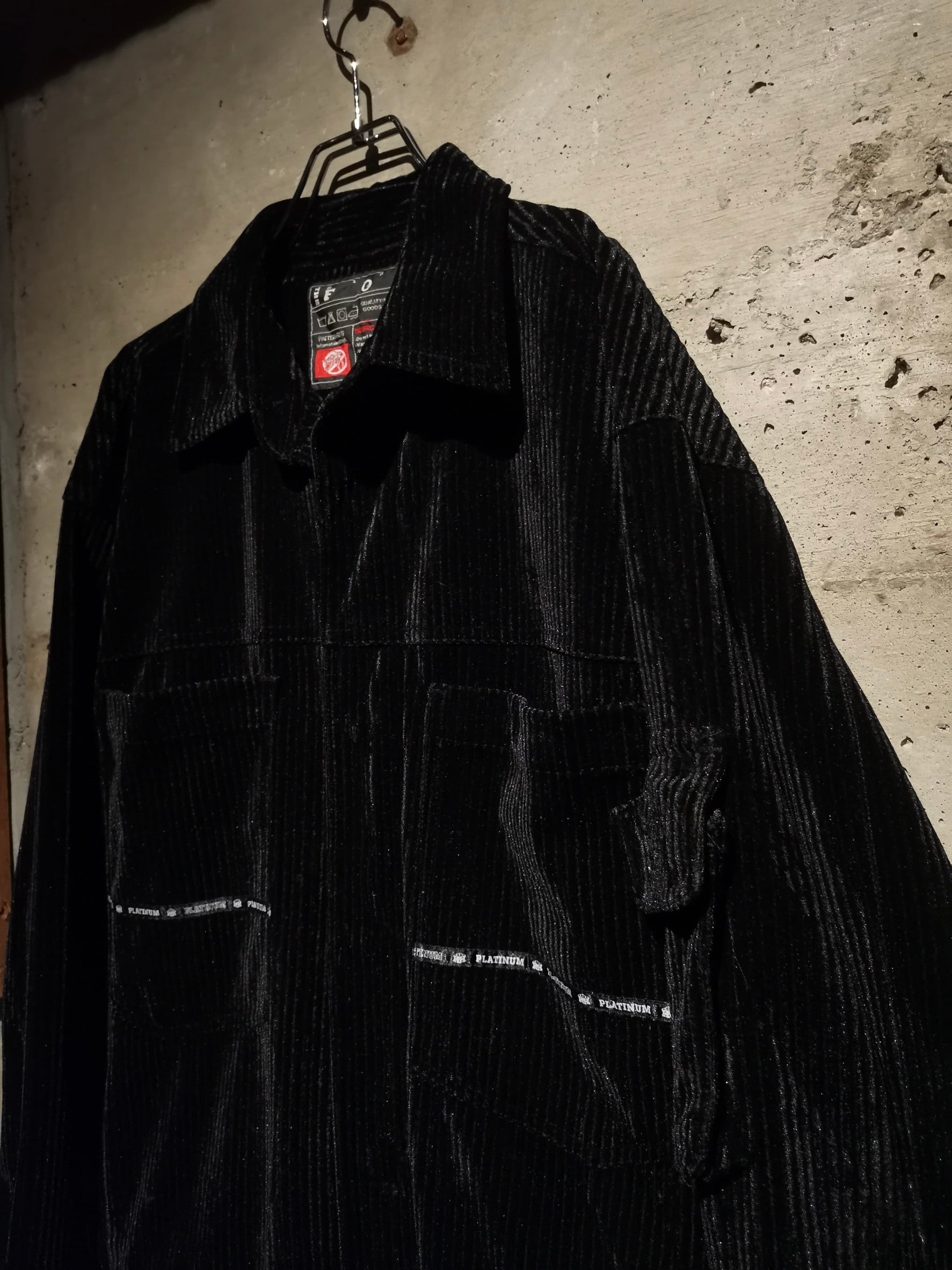 美しい光沢を帯びたベロア調のコーデュロイ素材をボディに用いた、当時のストリートな雰囲気を感じさせるゴージャスなデザインに仕上げられたセットアップ。