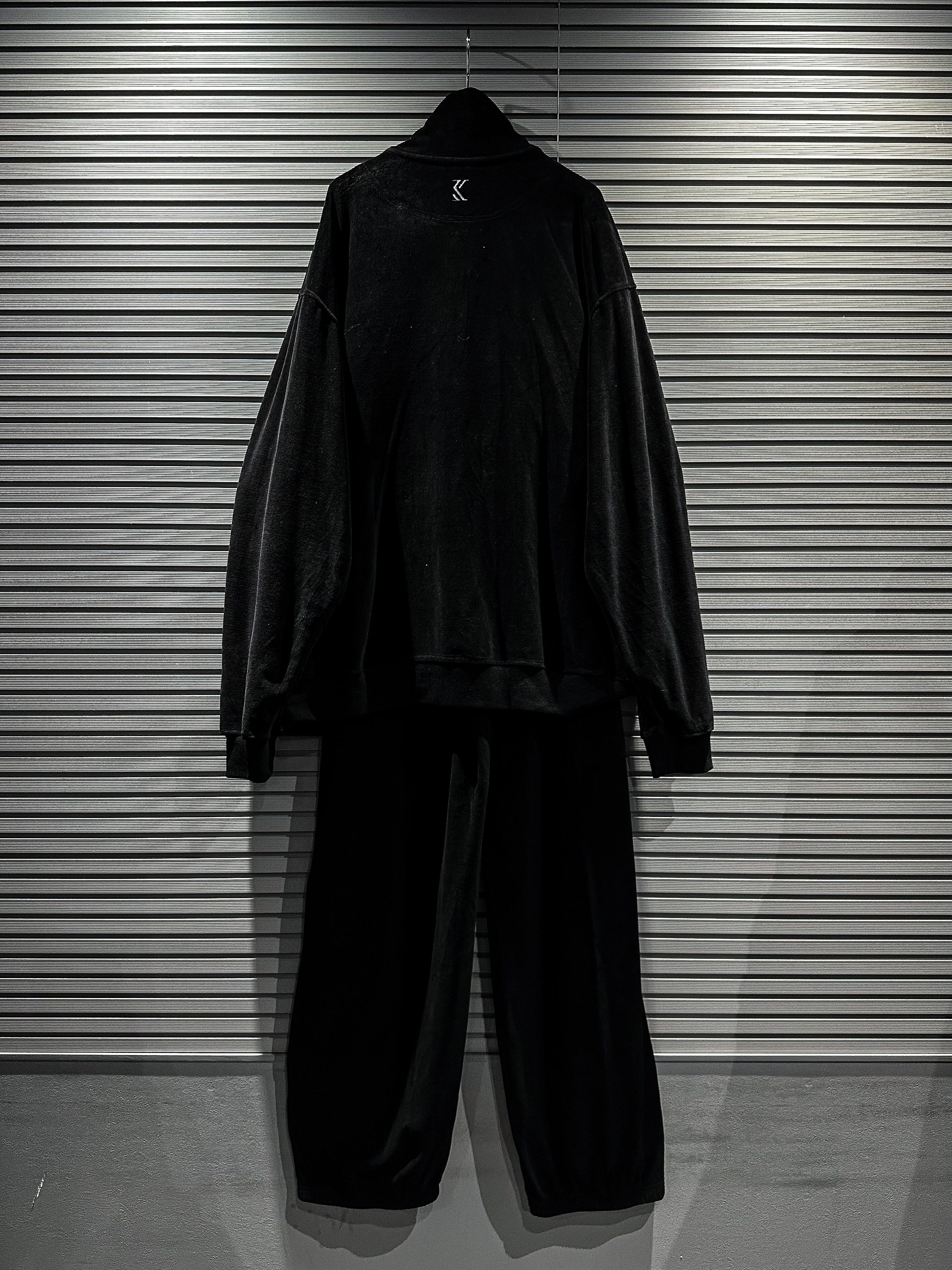 こちらの1着は鈍く光沢を放つブラックベロアを用いたセットアップで、非常に稀少性の高いスペシャルピースです。