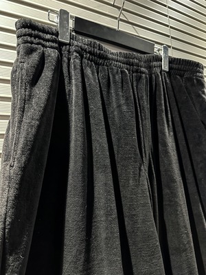 パンツはウエストから太腿にかけてゆとりのあるリラックスしたサイジングで、裾にかけてズドンと落ちるワイドなシルエット。裾にはジップが施され、シルエットに変化を加えることができます。