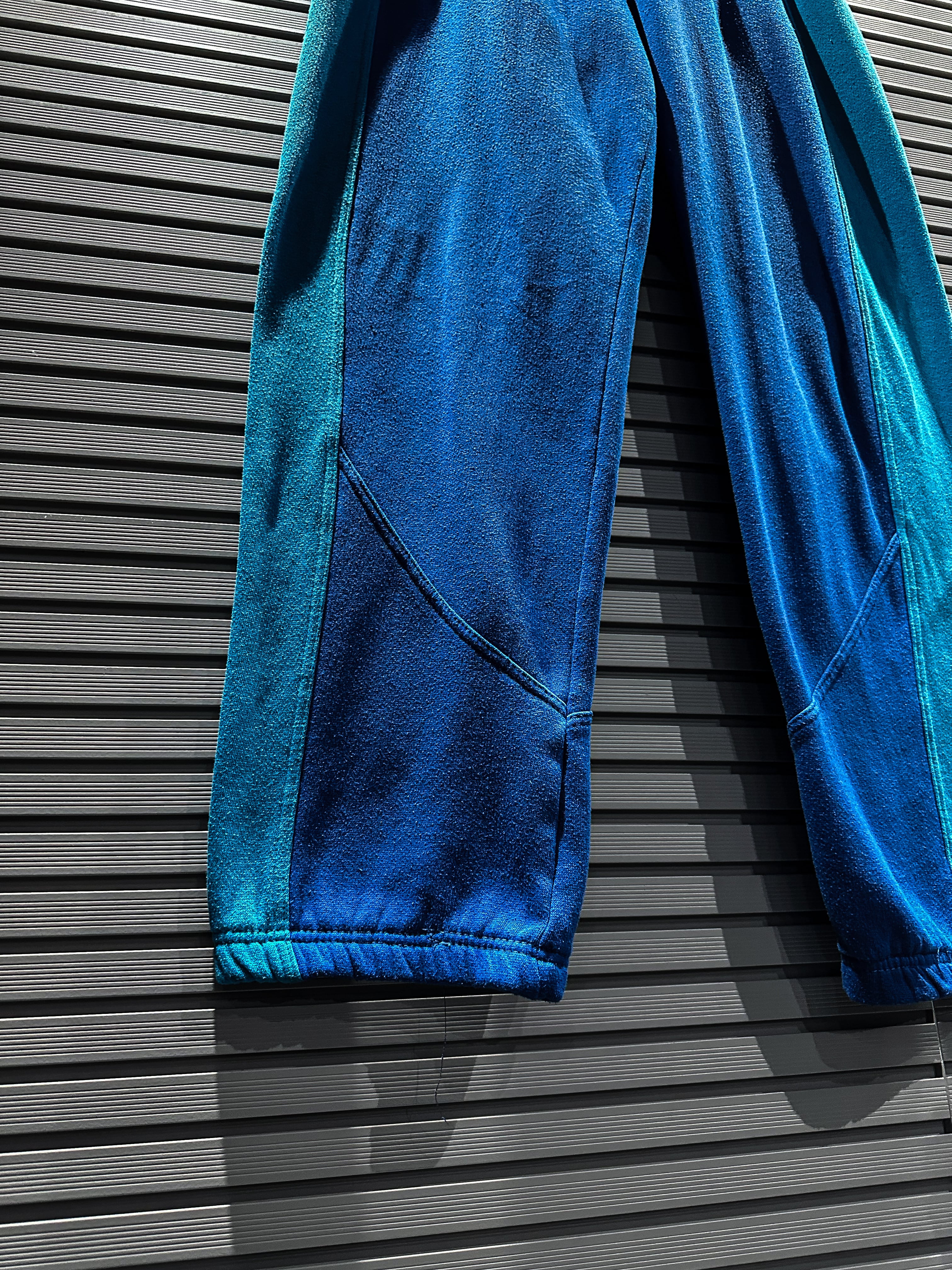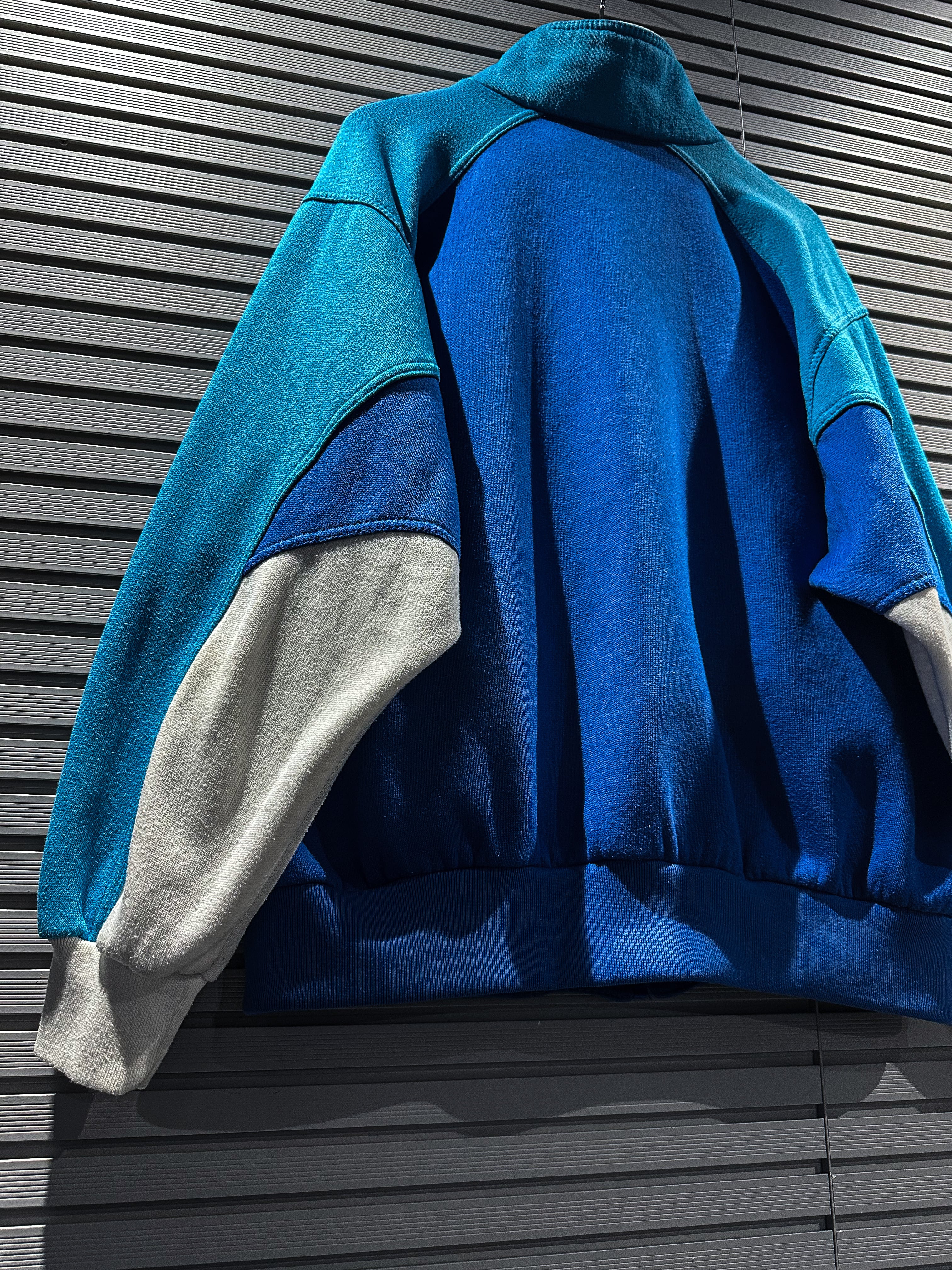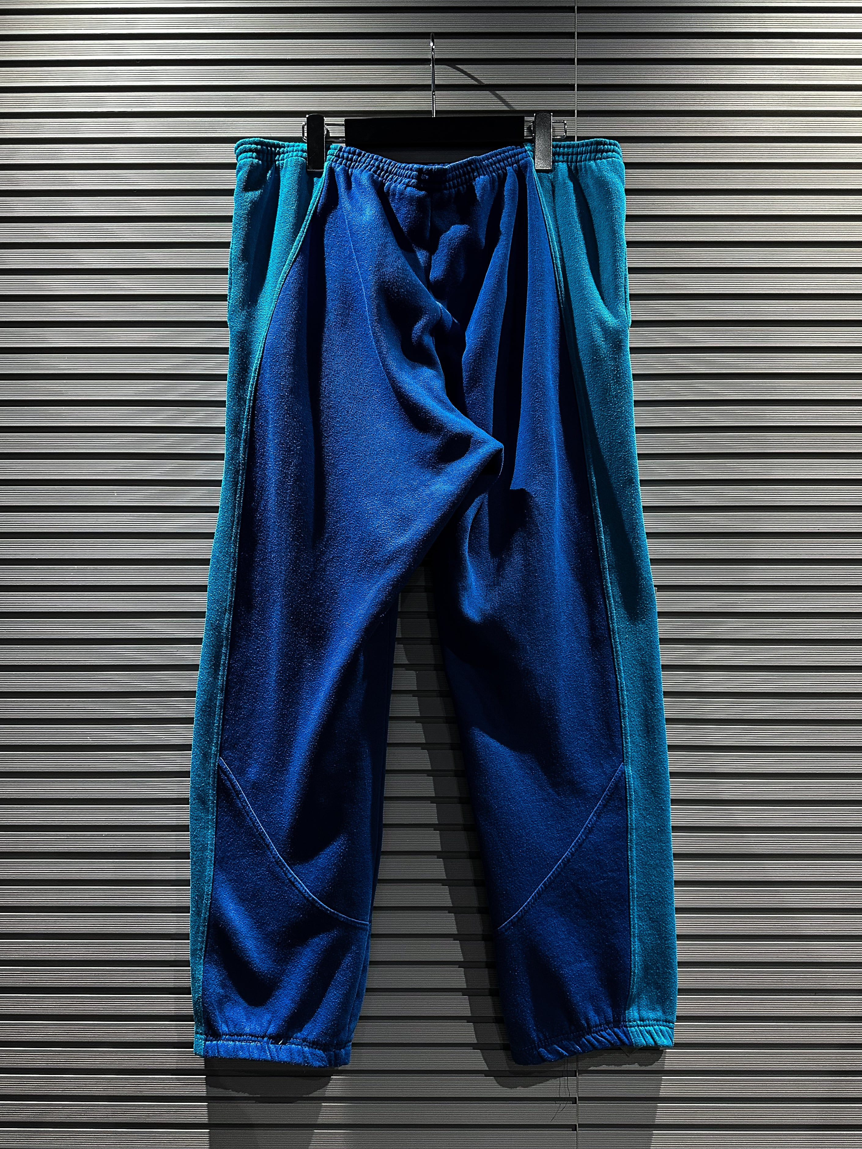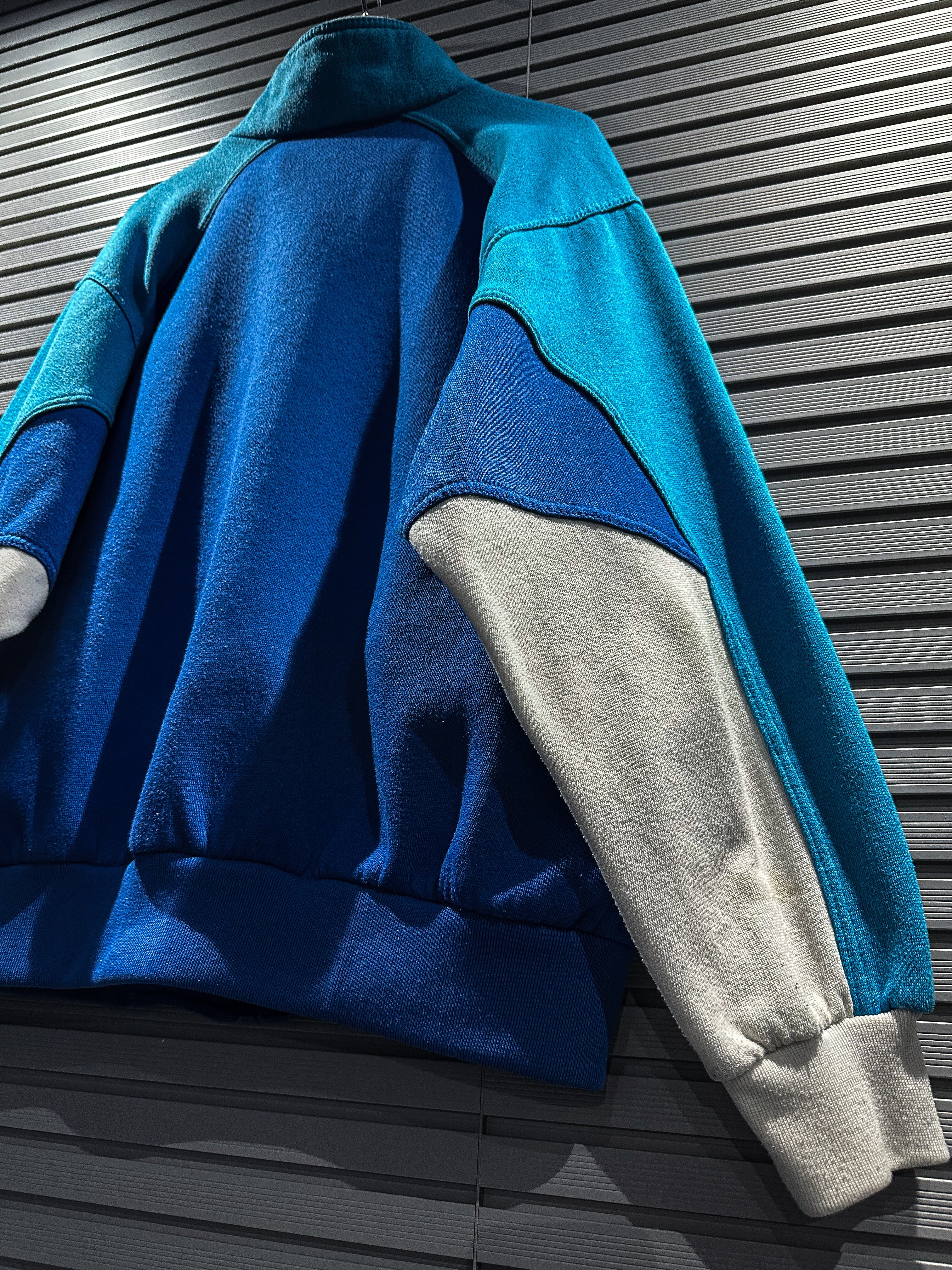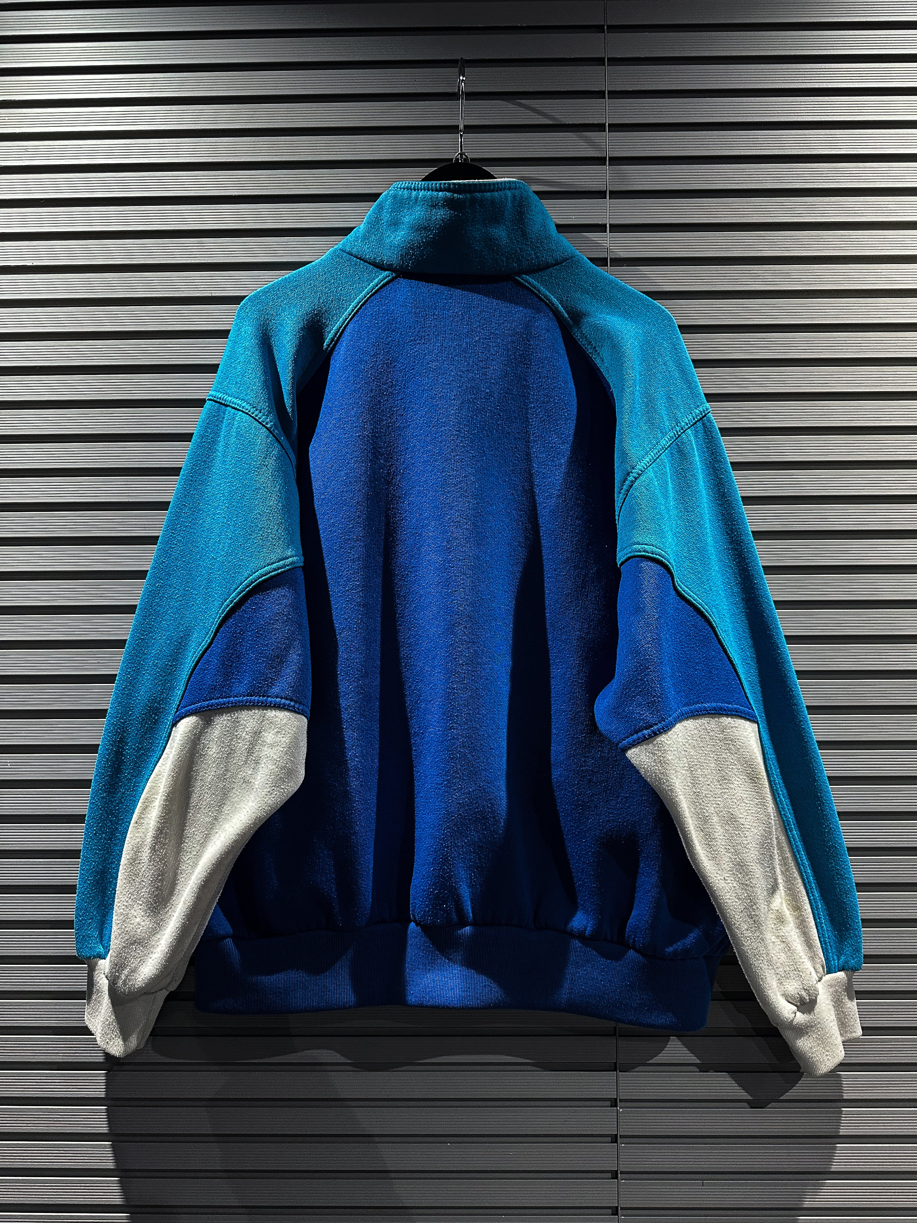 肉厚なスウェット生地をベースに、ブルー×ライトブルー×ホワイトでカラーを切り替えたトラックジャケットのセットアップ。