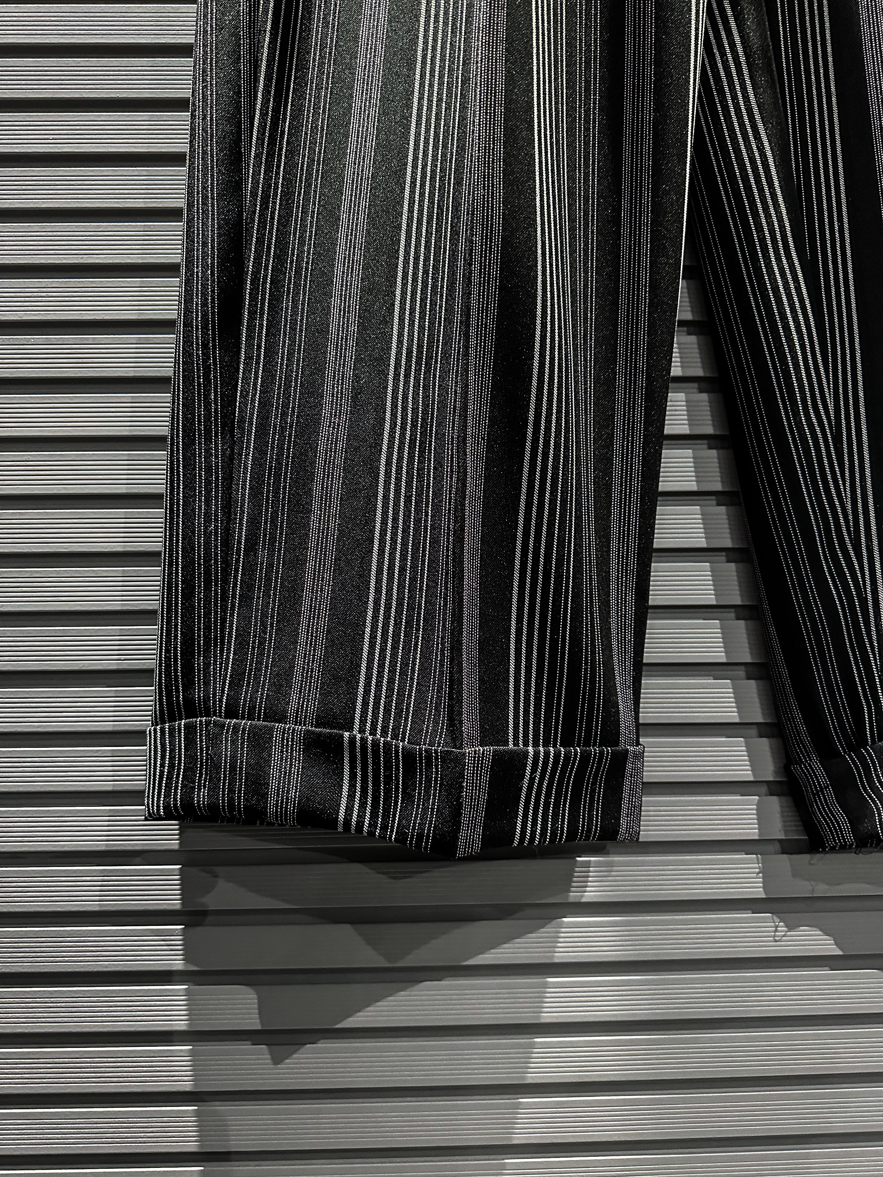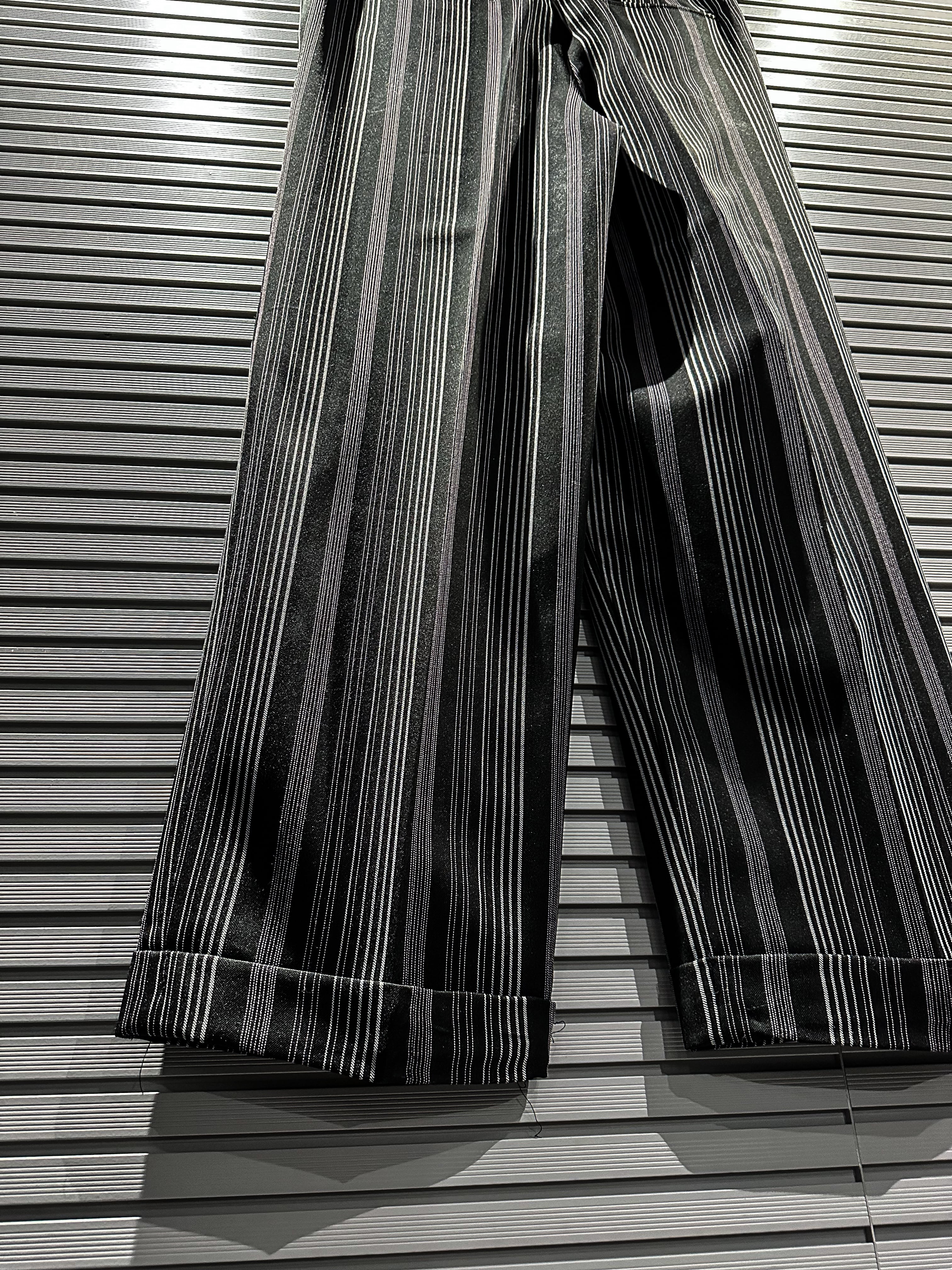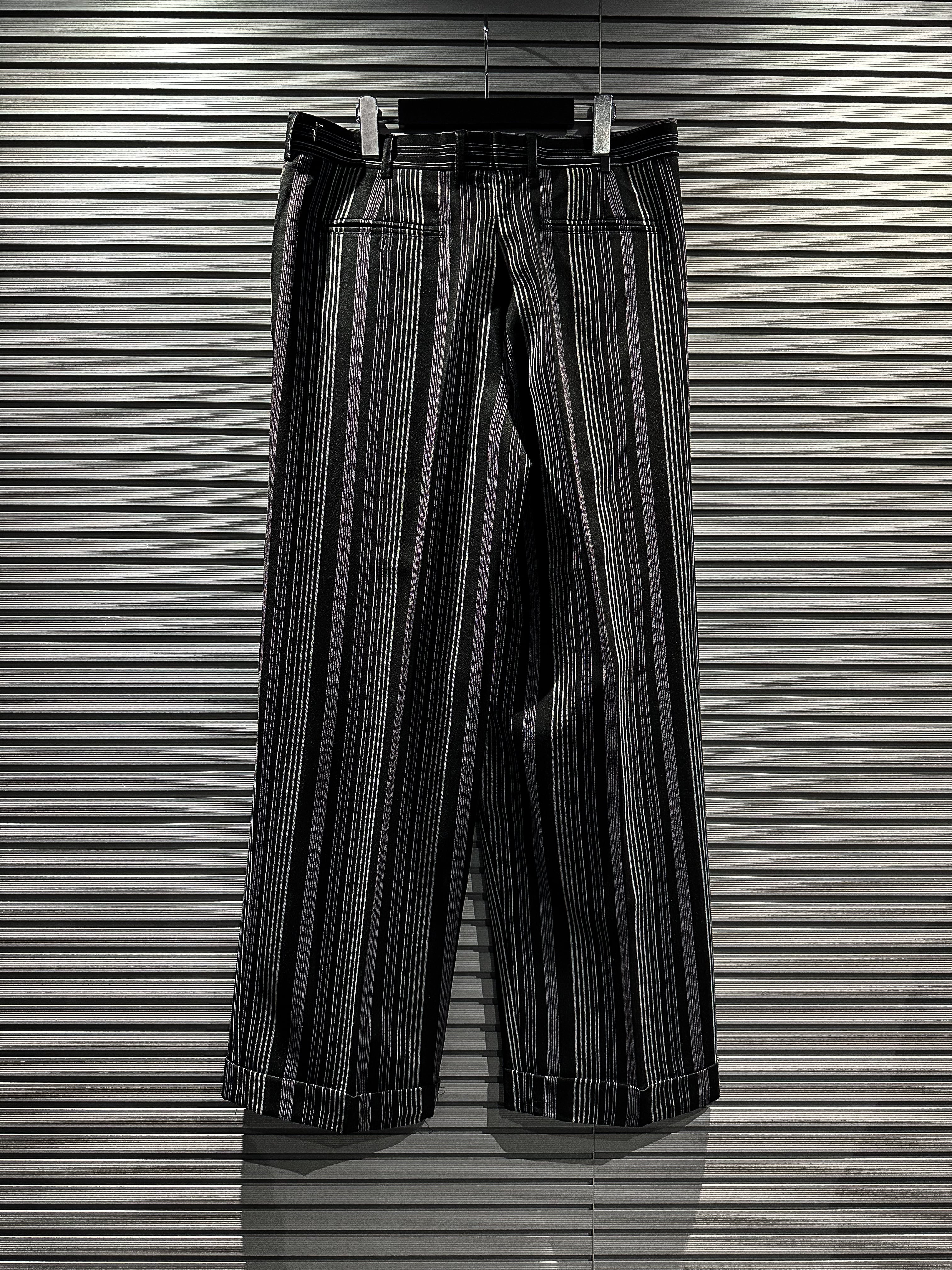 パンツは内ひだが入ったズドン下まで落ち感の素晴らしいワイドなスラックス。着用時のシルエットが非常に美しく、太めのスラックスって今まさに気分ですよね。